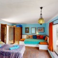 • Are you looking for an oasis in harmony with nature? A place of peace and relaxation, where time runs a little slower? Yes?! Then we would like to show you this fantastic villa, in the mountains of Torrox. It offers an imposing, grand main house, a separate, small guest house and a pool, as well as 5,569 m2 of land, which is predominantly flat and thus offers countless possibilities. The layout of the property makes it possible to use the main house as two independent living units, with separate entrances. This fabulous property is perfect as a multi-family home, B&B or as an investment opportunity for a yoga center, event location, dance school or meditation temple.... An almost completely paved driveway leads you to a concrete parking area, which is partially covered. On this level is the charming guest cottage with its own covered terrace. It is equipped with a cozy, open living/dining area with a bed, a kitchen and a bathroom. The fireplace provides comfortable warmth in the cooler months. A driveway, as well as stairs, lead to the lower level. Another heavy wooden door with an iron horse door knocker grants entry into the spacious, imposing living area with fireplace, of the first part of the house. To the right is a guest toilet. Next to this is a room which is currently used as an office/library. It can also be heated to a comfortable temperature in the cooler seasons with the fireplace. We have adjacent a small, glazed room from which you can enjoy the view of the surrounding countryside. The large terrace at the front of the house offers breathtaking views of the famous white village of Frigiliana and the Sierra de Tejada in the background. Thanks to the hillside location, the hollow space under this terrace can still be closed and create more living space, if needed. From the living room, also with access to the terrace, one enters the spacious open kitchen with dining area. The interplay of traditional and modern has been perfectly achieved here. A glass patio door leads to the beautiful u-shaped and typical Andalusian courtyard with a fountain. On the second floor of the house there are three bedrooms and two bathrooms. The master bedroom has a large, modern bathroom with its own sauna, as well as a bathtub and shower. From two of the bedrooms there is access to an enchanted u-shaped balcony with views down into the Andalusian courtyard. Its wooden beams and plantings make it feel like you've stepped into another era. A corridor leads from this balcony to the second part of the house. On the second floor there is a bedroom with another fireplace, called the Sunroom because of its wall color. A staircase leads down to a huge open space with a large flat skylight that lets in natural light. The space can be used for a wide variety of possibilities. As a dance studio, atelier, or conference room. A feel-good temperature can also be created here with a great fireplace. On this level we also have a large heavy wooden door, the separate entrance to this part of the house. Right next to the entrance area there is a fully equipped bathroom. Through an open arch you enter a living area with a small, charming kitchen. Through almost floor-to-ceiling windows, you look out onto an idyllic pond and out into the countryside. There is another bathroom and two bedrooms, both with access to the outdoor area. The outdoor area includes a pool, many terraces with seating, a small vegetable garden and some olive trees. The bodega, or wine cellar, adds the finishing touches to the mansion and guarantees the right temperature for your wine. We are pleased to be able to present this dream property to you soon, either personally or via virtual viewing. Because this world, it is unique - just like our Axarquía. In Andalusia. On the Costa del Sol. Here, on the sunny side of life...