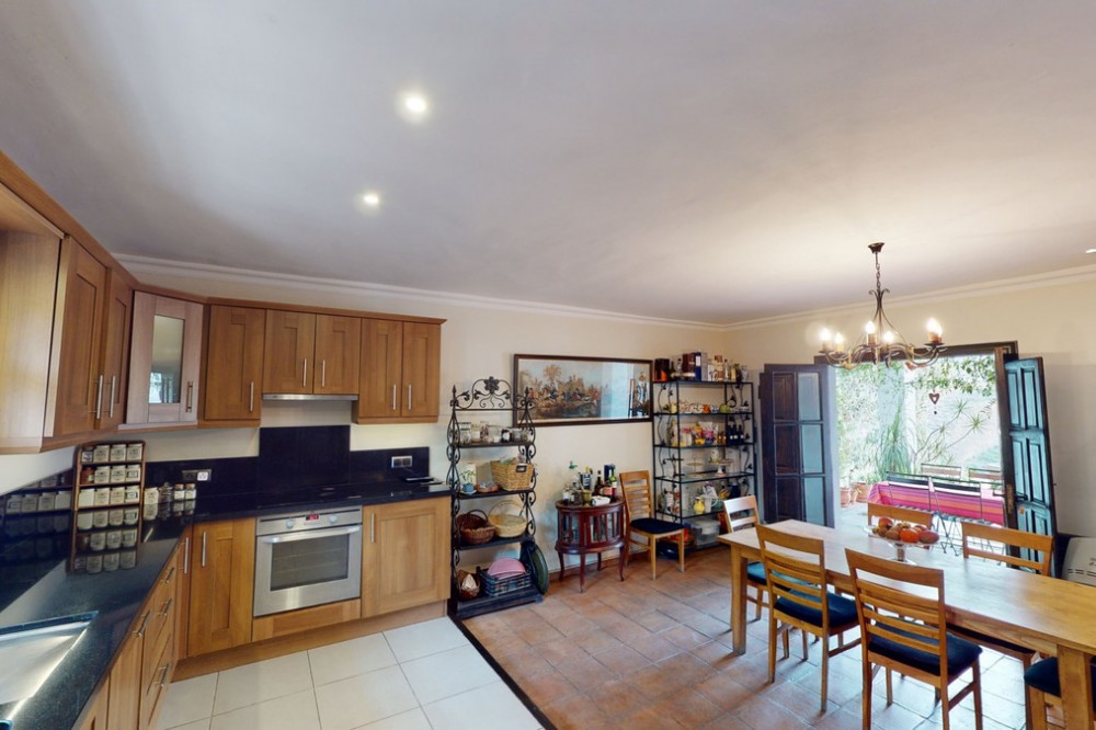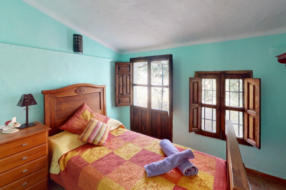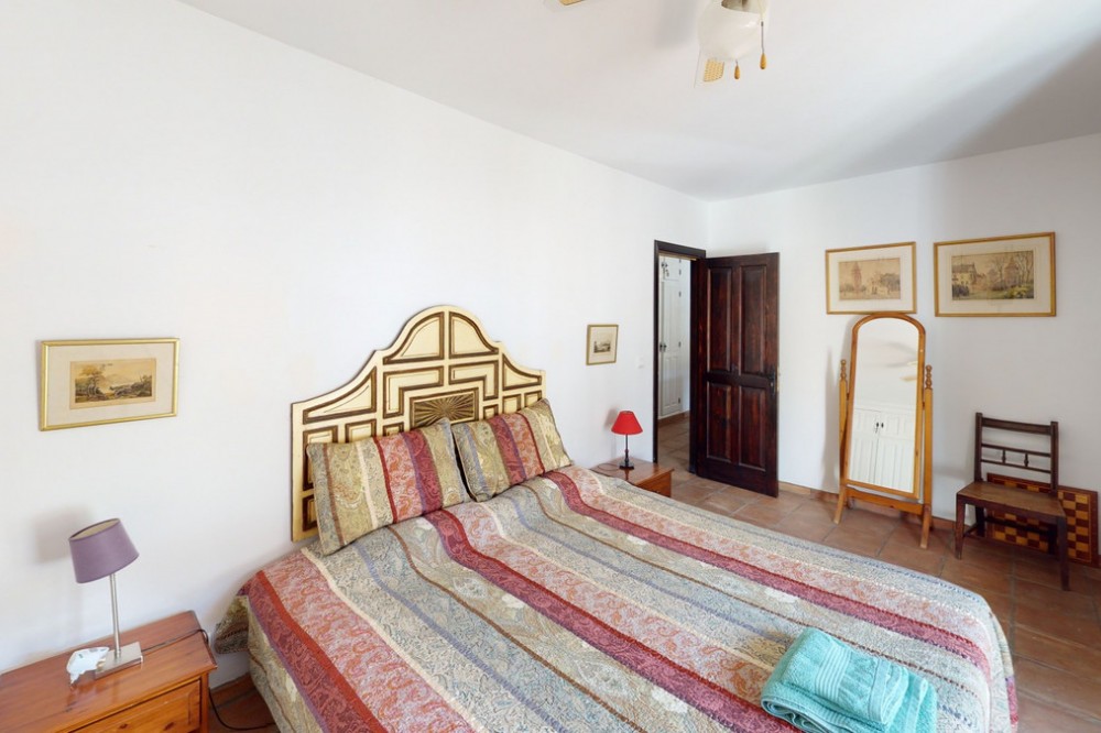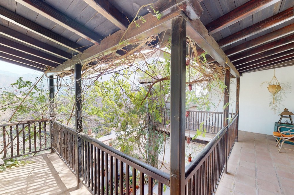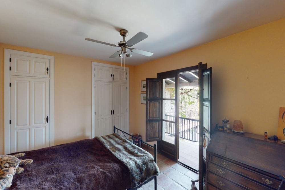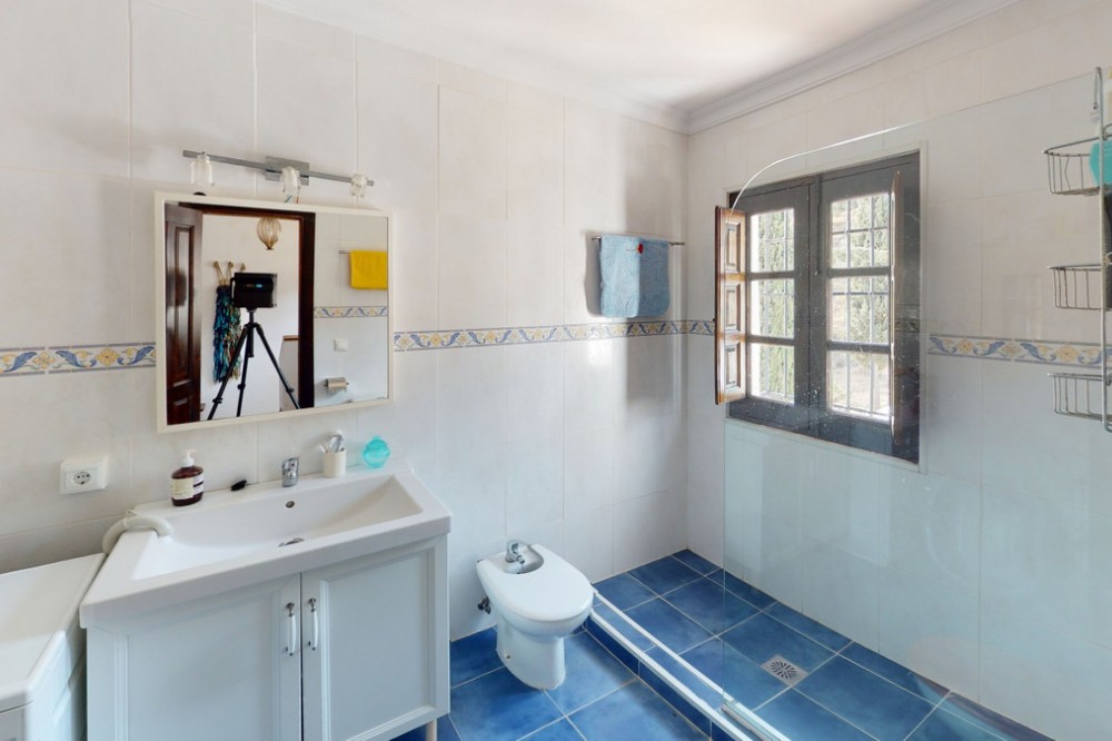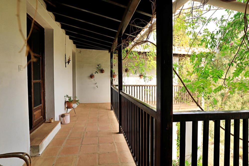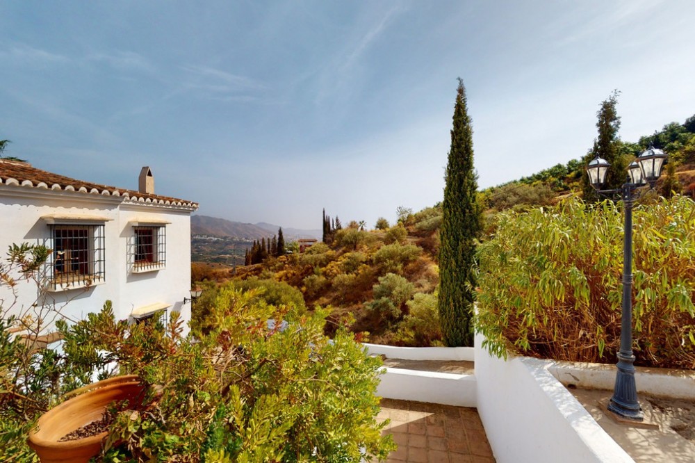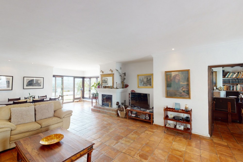 • Are you looking for an oasis in harmony with nature? A place of peace and relaxation, where time runs a little slower? Yes?! Then we would like to show you this fantastic villa, in the mountains of Torrox. It offers an imposing, grand main house, a separate, small guest house and a pool, as well as 5,569 m2 of land, which is predominantly flat and thus offers countless possibilities. The layout of the property makes it possible to use the main house as two independent living units, with separate entrances. This fabulous property is perfect as a multi-family home, B&B or as an investment opportunity for a yoga center, event location, dance school or meditation temple.... An almost completely paved driveway leads you to a concrete parking area, which is partially covered. On this level is the charming guest cottage with its own covered terrace. It is equipped with a cozy, open living/dining area with a bed, a kitchen and a bathroom. The fireplace provides comfortable warmth in the cooler months. A driveway, as well as stairs, lead to the lower level. Another heavy wooden door with an iron horse door knocker grants entry into the spacious, imposing living area with fireplace, of the first part of the house. To the right is a guest toilet. Next to this is a room which is currently used as an office/library. It can also be heated to a comfortable temperature in the cooler seasons with the fireplace. We have adjacent a small, glazed room from which you can enjoy the view of the surrounding countryside. The large terrace at the front of the house offers breathtaking views of the famous white village of Frigiliana and the Sierra de Tejada in the background. Thanks to the hillside location, the hollow space under this terrace can still be closed and create more living space, if needed. From the living room, also with access to the terrace, one enters the spacious open kitchen with dining area. The interplay of traditional and modern has been perfectly achieved here. A glass patio door leads to the beautiful u-shaped and typical Andalusian courtyard with a fountain. On the second floor of the house there are three bedrooms and two bathrooms. The master bedroom has a large, modern bathroom with its own sauna, as well as a bathtub and shower. From two of the bedrooms there is access to an enchanted u-shaped balcony with views down into the Andalusian courtyard. Its wooden beams and plantings make it feel like you've stepped into another era. A corridor leads from this balcony to the second part of the house. On the second floor there is a bedroom with another fireplace, called the Sunroom because of its wall color. A staircase leads down to a huge open space with a large flat skylight that lets in natural light. The space can be used for a wide variety of possibilities. As a dance studio, atelier, or conference room. A feel-good temperature can also be created here with a great fireplace. On this level we also have a large heavy wooden door, the separate entrance to this part of the house. Right next to the entrance area there is a fully equipped bathroom. Through an open arch you enter a living area with a small, charming kitchen. Through almost floor-to-ceiling windows, you look out onto an idyllic pond and out into the countryside. There is another bathroom and two bedrooms, both with access to the outdoor area. The outdoor area includes a pool, many terraces with seating, a small vegetable garden and some olive trees. The bodega, or wine cellar, adds the finishing touches to the mansion and guarantees the right temperature for your wine. We are pleased to be able to present this dream property to you soon, either personally or via virtual viewing. Because this world, it is unique - just like our Axarquía. In Andalusia. On the Costa del Sol. Here, on the sunny side of life...