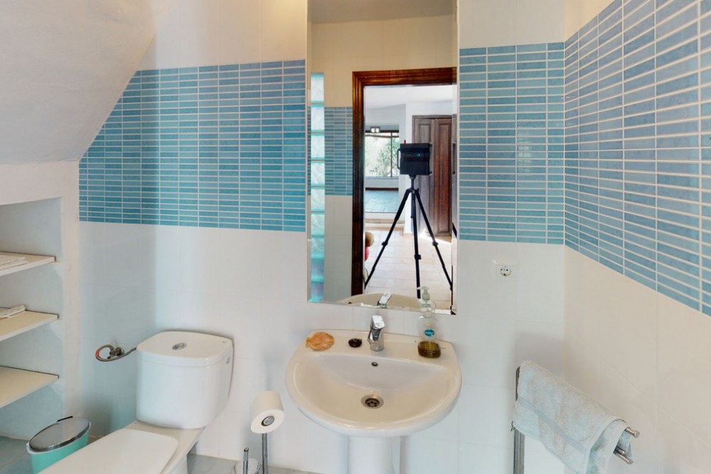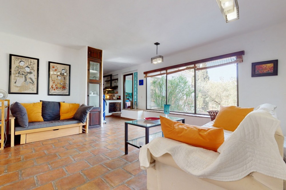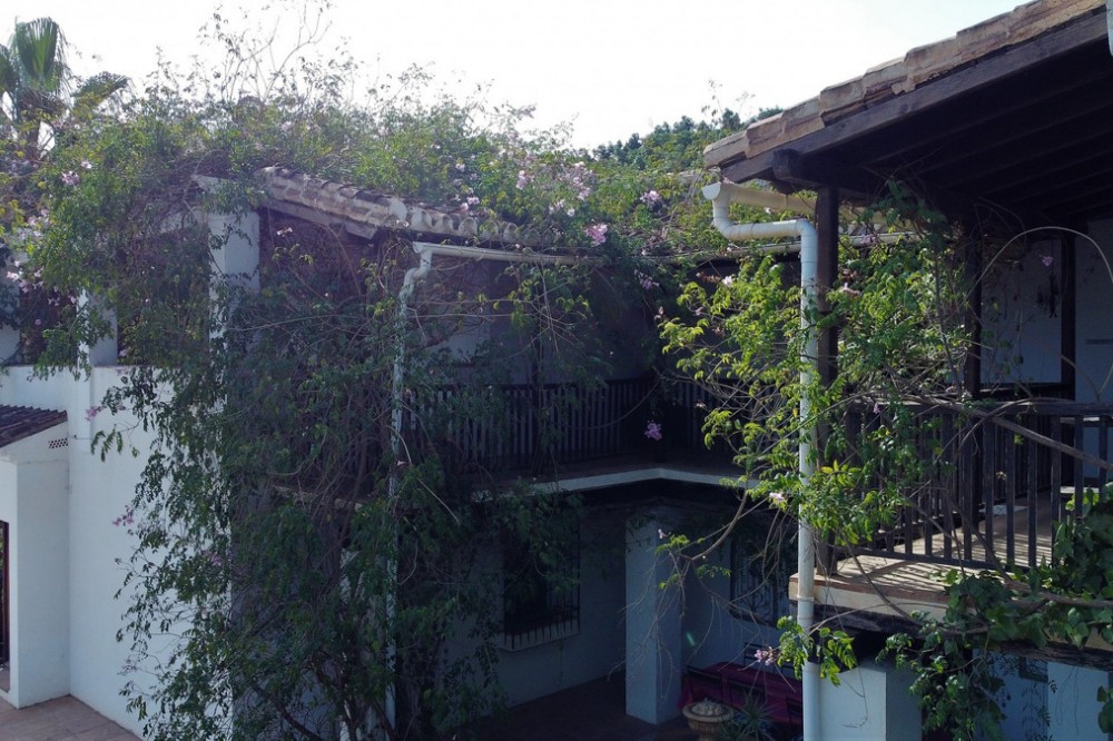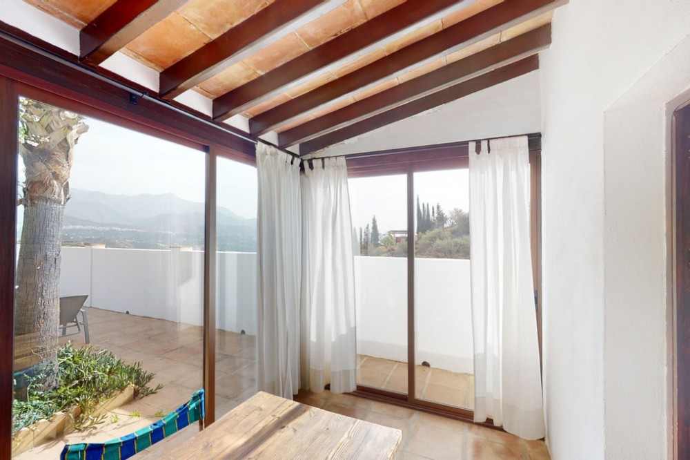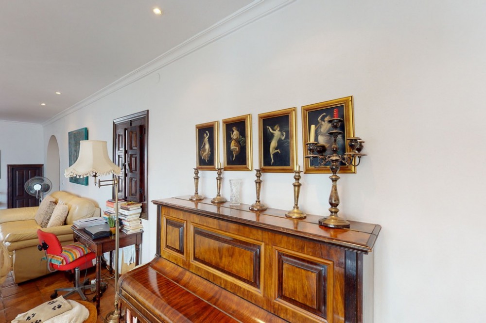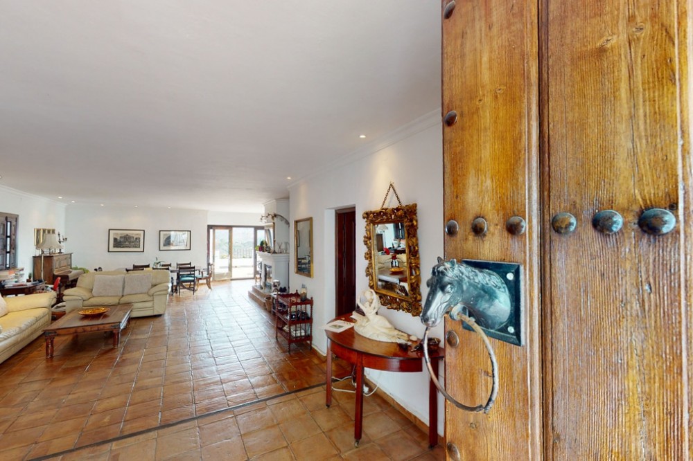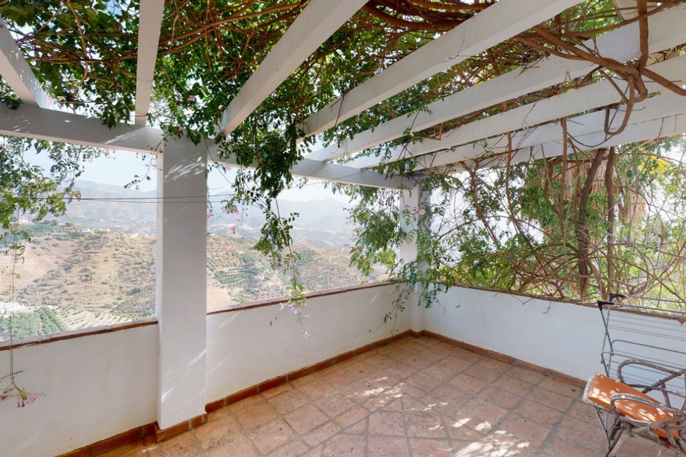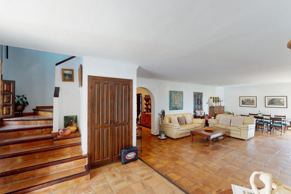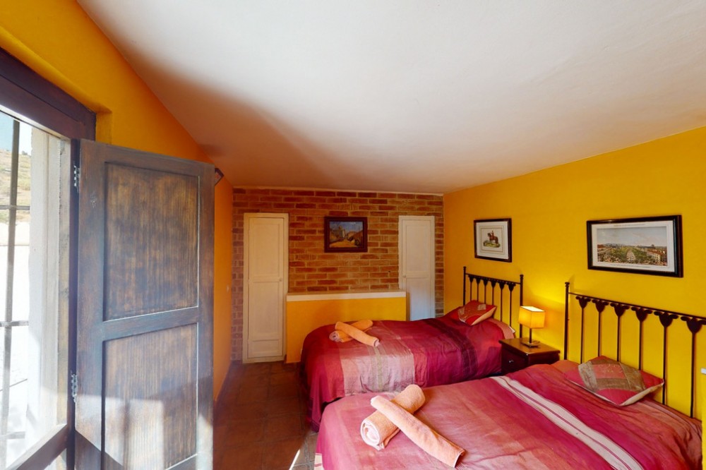 • Are you looking for an oasis in harmony with nature? A place of peace and relaxation, where time runs a little slower? Yes?! Then we would like to show you this fantastic villa, in the mountains of Torrox. It offers an imposing, grand main house, a separate, small guest house and a pool, as well as 5,569 m2 of land, which is predominantly flat and thus offers countless possibilities. The layout of the property makes it possible to use the main house as two independent living units, with separate entrances. This fabulous property is perfect as a multi-family home, B&B or as an investment opportunity for a yoga center, event location, dance school or meditation temple.... An almost completely paved driveway leads you to a concrete parking area, which is partially covered. On this level is the charming guest cottage with its own covered terrace. It is equipped with a cozy, open living/dining area with a bed, a kitchen and a bathroom. The fireplace provides comfortable warmth in the cooler months. A driveway, as well as stairs, lead to the lower level. Another heavy wooden door with an iron horse door knocker grants entry into the spacious, imposing living area with fireplace, of the first part of the house. To the right is a guest toilet. Next to this is a room which is currently used as an office/library. It can also be heated to a comfortable temperature in the cooler seasons with the fireplace. We have adjacent a small, glazed room from which you can enjoy the view of the surrounding countryside. The large terrace at the front of the house offers breathtaking views of the famous white village of Frigiliana and the Sierra de Tejada in the background. Thanks to the hillside location, the hollow space under this terrace can still be closed and create more living space, if needed. From the living room, also with access to the terrace, one enters the spacious open kitchen with dining area. The interplay of traditional and modern has been perfectly achieved here. A glass patio door leads to the beautiful u-shaped and typical Andalusian courtyard with a fountain. On the second floor of the house there are three bedrooms and two bathrooms. The master bedroom has a large, modern bathroom with its own sauna, as well as a bathtub and shower. From two of the bedrooms there is access to an enchanted u-shaped balcony with views down into the Andalusian courtyard. Its wooden beams and plantings make it feel like you've stepped into another era. A corridor leads from this balcony to the second part of the house. On the second floor there is a bedroom with another fireplace, called the Sunroom because of its wall color. A staircase leads down to a huge open space with a large flat skylight that lets in natural light. The space can be used for a wide variety of possibilities. As a dance studio, atelier, or conference room. A feel-good temperature can also be created here with a great fireplace. On this level we also have a large heavy wooden door, the separate entrance to this part of the house. Right next to the entrance area there is a fully equipped bathroom. Through an open arch you enter a living area with a small, charming kitchen. Through almost floor-to-ceiling windows, you look out onto an idyllic pond and out into the countryside. There is another bathroom and two bedrooms, both with access to the outdoor area. The outdoor area includes a pool, many terraces with seating, a small vegetable garden and some olive trees. The bodega, or wine cellar, adds the finishing touches to the mansion and guarantees the right temperature for your wine. We are pleased to be able to present this dream property to you soon, either personally or via virtual viewing. Because this world, it is unique - just like our Axarquía. In Andalusia. On the Costa del Sol. Here, on the sunny side of life...