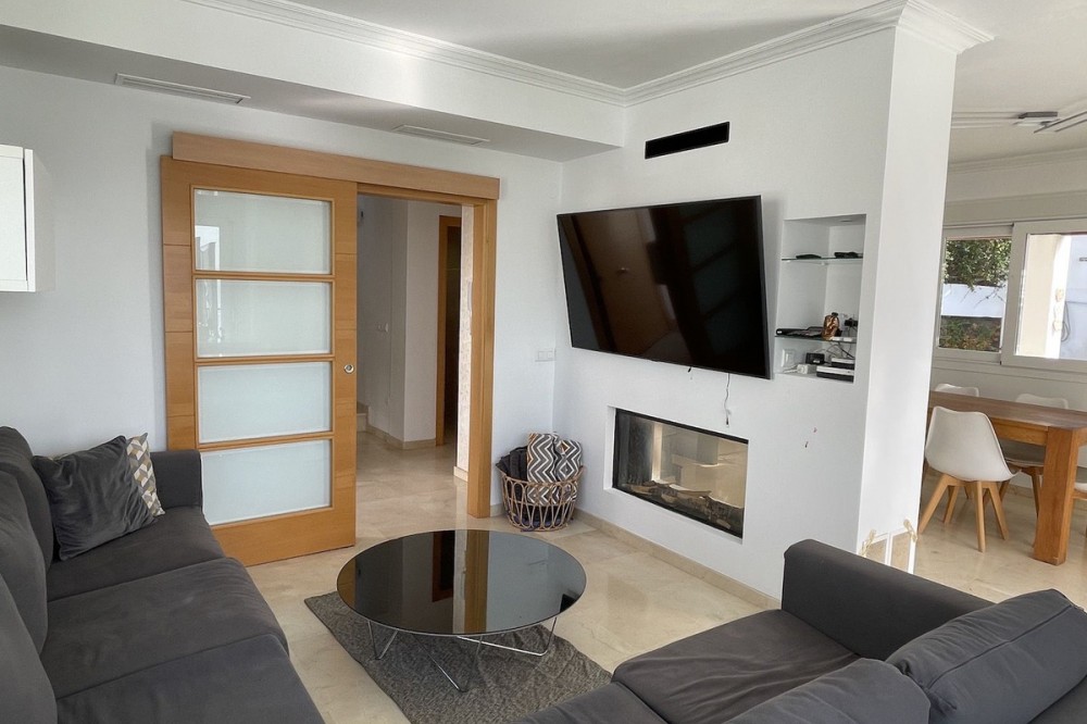 - Detached villa with private heated pool for sale in Peñoncillo, Torrox Costa. The property is South facing, fully furnished, boasts wonderful views of the Mediterranean sea and is walking distance to the beach. The property has 4 bedrooms, 3 bathrooms, private heated pool and outdoor shower, gym, bbq area with outdoor dining. Three terraces including a roof terrace / solarium. Bedroom (1) double en-suite, each with hydromassage shower and fitted wardrobes Bedroom (2) with terrace, trundle bed, built-in wardrobe and desk Bedroom (3) with bunk bed, desk, chest of drawers and built-in wardrobe Bedroom (4) of 90 m2 with private bathroom with double bed, sofa bed for 3 people if bathroom All bedrooms have LED lighting that connects via bluetooth for music and colored lights Luxurious open kitchen with ample cupboard space, equipped with a built-in coffee maker, dishwasher, microwave, fridge-freezer and induction hob. 60-inch TV area, sound bar, 7-seater sofa, desk, utility room with washer, dryer and cabinets, fully equipped gym, close to schools, supermarkets and the promenade and one hour drive from the Sierra Nevada. The upper terrace with sea views, ideal for relaxed evenings. The property is available for visits immediately!