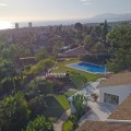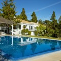 - INVESTORS DREAM Luxury villa set in beautiful tropical gardens with amazing sea views from everywhere. One of east Marbella finest villa, this 7 bedroom 9 bathroom luxury villa has everything you could want, large bright airy rooms all with great views of the gardens then out to sea, beautiful established tropical gardens with a fantastic pool and poolside area. The 12 meter by 7 meter heated, salt water pool is enhanced with a very large bali style bar/kitchen and seating area, sauna and large jacuzzi all with outstanding sea views, a great area for entertaining. The villa has an Ibiza style to it, very big comfortable rooms flowing into each other, all the bedrooms are well thought out with great light and views with the master bedroom taking your breath away, large glass doors leading out to an amazing rap around terrace. The villa is in the middle of one of the best resorts in Marbella, Hacienda Las Chapas with its 24 hour guards, manicured street and great communal areas. Even though this beautiful villa is central to the whole resort, no part of the villa or gardens is overlooked.