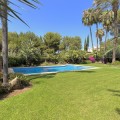 - This villa is located in the prestigious and secure community of Golden Mile Marbella. with 24h security, manicured gardens, paddle courts and children’s play area, within short distance to all aminities of Marbella and the beach. Very private property settled on a flat plot of almost 1500m2 with madure garden and good size swimming pool. The house offers comfotable entrance that leads to the covered garage for 2 cars plas carpor for another two. The villa is distribuited on 3 levels, on the ground floor there are, a spacious living room with the access to the cover large terrace and a garden that also leads to TV room, a guest toilet, a kitchen with utility room and pantry, a goos size master bedroom en suite. The upper floor consists of 4 bedrooms, 3 with their bathrooms, 2 bedrooms are with the access to the terrace. The Basement offers a living room with the cellar, another additional space to that could be addapted to personal tast, a toilet, billard room , a storage room, there is an access to the garden and BBQ area.