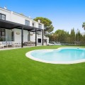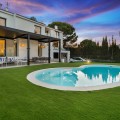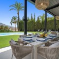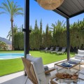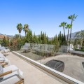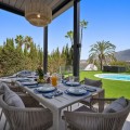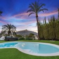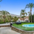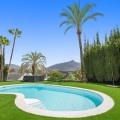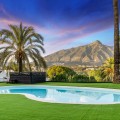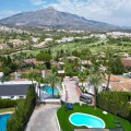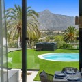 - Spectacular new villa in Nueva Andalucia New on the market 2023 stunning villa offers the following layout : 5 bedrooms / en-suite 5 bathrooms, 2 extra bathrooms, living room with extended open plan kitchen. Access to a south facing covered terrace. Distributed on three levels, it comprises, on the main floor: spacious living room with several seating areas; open-plan fully fitted kitchen/dining area equipped with top appliances and with a central island and wine cooler; en-suite guest bedroom; access to the porches, terraces, swimming pool and the carefully landscaped garden with jacuzzi. Upstairs: two guest en-suite bedrooms with fabulous views over La Concha, stunning master suite with dressing room and a terrace also enjoying the amazing views. Lower level: cinema, further guest bedroom with en-suite bathroom; garage for 1 car. Possibility to add a gym on this level. Special features include underfloor heating in the bathrooms and home automation system throughout. Just minutes away from several international schools, world class golf courses, gastronomic experiences and amenities, this magnificent home is set within a quiet gated complex with 24-hour security, guaranteeing a total privacy. The main house has been recently refurbished to the latest standards including central heating and double glazed windows.