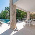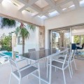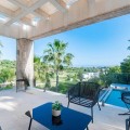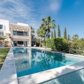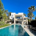 - This magnificent villa is an open plan one, and the ground floor flows into the terrace and the garden with lovely sea views and a vast infinity pool, leading to a chill-out area with a fireplace. The villa has ensuite bedrooms on each floor, which gives you 100% privacy. Urbanization has 24hr security, and the villa has the latest technology to add safety and comfort. The villa has solar panels on the roof and comes furnished and ready to move in. The house consists of thee floors communicated through the corresponding interior staircase and an elevator. The semi-basement floor includes a bright, spacious living room with floor-to-ceiling windows facing the garden and a 60m2 swimming pool with a chill-out area; spa-sauna, facility room, boiler room toilet, two ensuite bedrooms, and a porch. The ground floor has an entrance hall, open space kitchen, a living room with a porch, a bedroom with an ensuite bedroom and a dressing room, a terrace, and a pergola, which is also accessed from the kitchen. There is also direct access to/from a built-in garage for two cars. The Semi-upper floor has a large master bedroom with a spacious dressing room, a private bathroom, and a private 44 m2 terrace. The upper floor has a bright bedroom with an ensuite bathroom and a terrace.