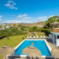 - This exceptional eight-bedroom villa is located in the prestigious gated community of Los Flamingos, offering an unparalleled blend of elegance, comfort, and breathtaking views. Positioned on a rare double plot, the property boasts uninterrupted panoramic views of both the Mediterranean Sea and the spectacular Loo Flamingos golf course, creating a serene and exclusive setting. The property has been designed with grand proportions and an emphasis on light, featuring soaring ceilings and floor-to-ceiling windows throughout the main residence. Each of the eight spacious bedrooms is ensuite, providing privacy and luxury, while separate staff quarters ensure convenience and discretion. For relaxation and entertainment, the property is unrivalled. Outdoors, a heated swimming pool is perfectly positioned to capture the stunning views, while the expansive summer kitchen and dining area can host up to 20 guests, making it ideal for gatherings. Inside, a private spa area invites complete indulgence, with a heated indoor pool and sauna offering year-round enjoyment.This villa combines world-class amenities with a setting of natural beauty and exclusivity, making it one of the most distinguished residences in Los Flamingos.