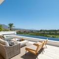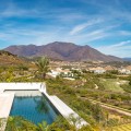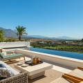 • The panoramic villa is embedded in the exclusive golfing community of Finca Cortesin, surrounded by the Mediterranean nature, overlooking the mesmerizing Costa del Sol and the sea. This brand new 3-bedroom villa is equipped with modern and functional furniture which is included in the sales price. The entrance level with carport and stairways lead down to the villa through a beautiful garden area. The panoramic villa is located on a ground level facing south with a spacious sun terrace and 13 m wide infinity pool, with spectacular views of the 5-star golf course of Finca Cortesin and the Mediterranean coast. The property is built on one level, while the garden is distributed over three levels. In the first garden area there is a BBQ and dining area with an outdoor kitchen. In the lowest level there is a spacious kitchen garden with many tropical trees and plants, including fig, mango, lemon, lime, pomegranate and banana trees. The villa is brand new and ready to move into. Comprising of open plan living spaces, with a stunning fully fitted modern kitchen with central isle, a dining area and continuing into the sitting area that enjoys panoramic views over the golf. The living area opens onto a partially covered terrace area, with the infinity swimming pool with views down to the Mediterranean Sea. 3 large bedrooms all with en-suite bathrooms. Each bedroom with large picture windows opening onto terrace. The bathrooms are equipped with a free standing bathtub and or a spacious shower, as well as having 2 washbasins each, offering total relaxation. Set within the highly sought after 5-star golf resort of Finca Cortesin, surrounded by modern villas, golf courses and luxury services. A short drive to the beaches in the area of Casares, close to Estepona town and the exclusive town of Sotogrande in the opposite direction.