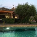 - This Andalusian-style villa, designed by a renowned German architect in 2001, seamlessly blends traditional charm with modern comfort. Nestled just a quick two-minute walk from the beach, the villa features a delightful garden with fruit trees and ancient olive groves. The spacious terrace, divided into a barbecue area and a relaxation zone, provides the perfect setting for outdoor enjoyment. Inside, a welcoming hall with a fireplace leads to a stylish living-dining space, offering direct access to the terrace and a cozy retreat. Ascend to the two-story tower housing two bedrooms and a well-appointed bathroom. The master bedroom, with an en-suite bathroom, and a tastefully designed kitchen maintain the home's overall aesthetic. Additional bedrooms, accessible through private garden entrances, ensure privacy for every family member, each equipped with its own bathroom. The villa is equipped with central heating and solar panels, eliminating the need for air conditioning due to the double-cavity walls that provide natural climate control. Beyond the main residence, a 135 m2 building serves as a secure garage for four vehicles, but its versatility allows for various uses, from a recreation space to a sauna, tailored to the new owner's preferences. Discover a comfortable and stylish lifestyle in this charming Andalusian villa. The owner is highly flexible regarding the sale price and terms, accommodating various negotiations to meet the preferences and needs of potential buyers.