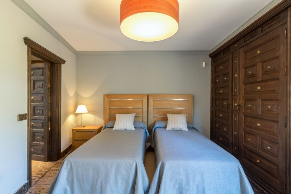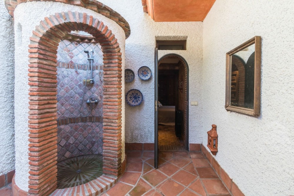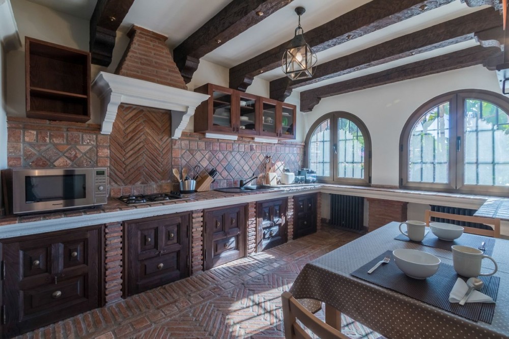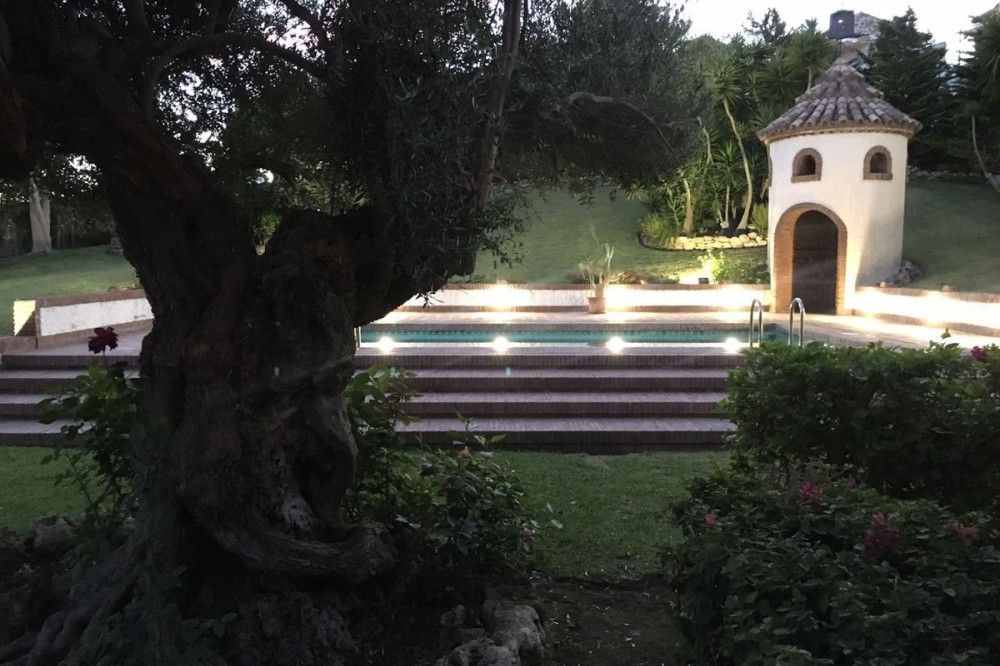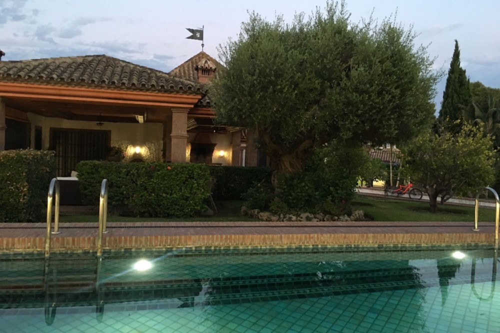 - This Andalusian-style villa, designed by a renowned German architect in 2001, seamlessly blends traditional charm with modern comfort. Nestled just a quick two-minute walk from the beach, the villa features a delightful garden with fruit trees and ancient olive groves. The spacious terrace, divided into a barbecue area and a relaxation zone, provides the perfect setting for outdoor enjoyment. Inside, a welcoming hall with a fireplace leads to a stylish living-dining space, offering direct access to the terrace and a cozy retreat. Ascend to the two-story tower housing two bedrooms and a well-appointed bathroom. The master bedroom, with an en-suite bathroom, and a tastefully designed kitchen maintain the home's overall aesthetic. Additional bedrooms, accessible through private garden entrances, ensure privacy for every family member, each equipped with its own bathroom. The villa is equipped with central heating and solar panels, eliminating the need for air conditioning due to the double-cavity walls that provide natural climate control. Beyond the main residence, a 135 m2 building serves as a secure garage for four vehicles, but its versatility allows for various uses, from a recreation space to a sauna, tailored to the new owner's preferences. Discover a comfortable and stylish lifestyle in this charming Andalusian villa. The owner is highly flexible regarding the sale price and terms, accommodating various negotiations to meet the preferences and needs of potential buyers.