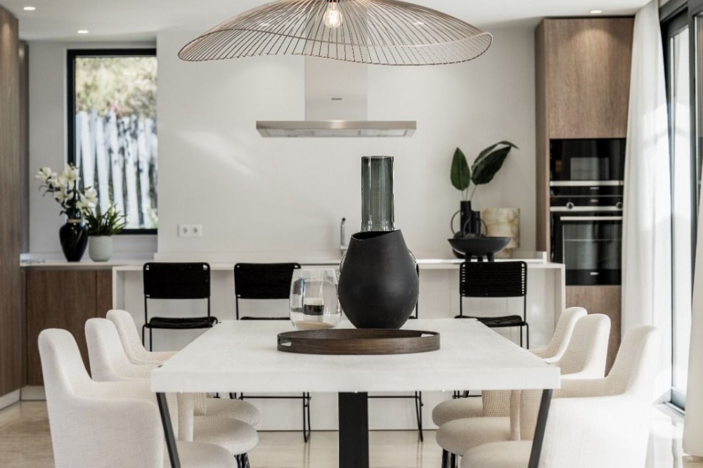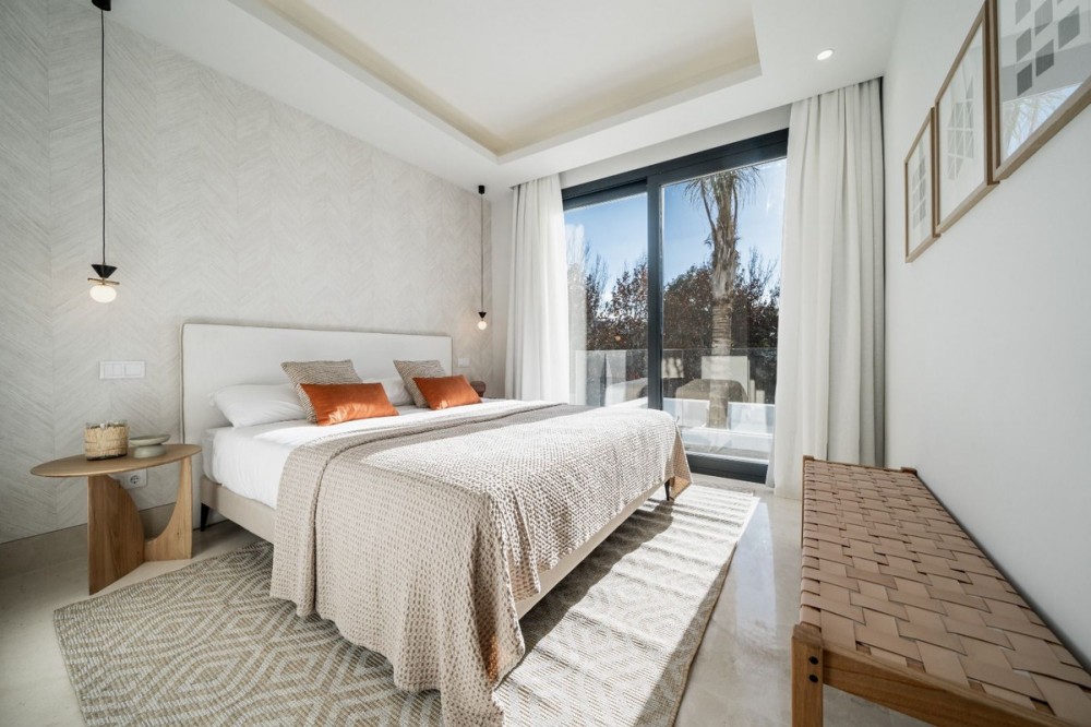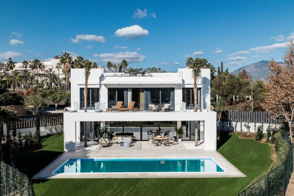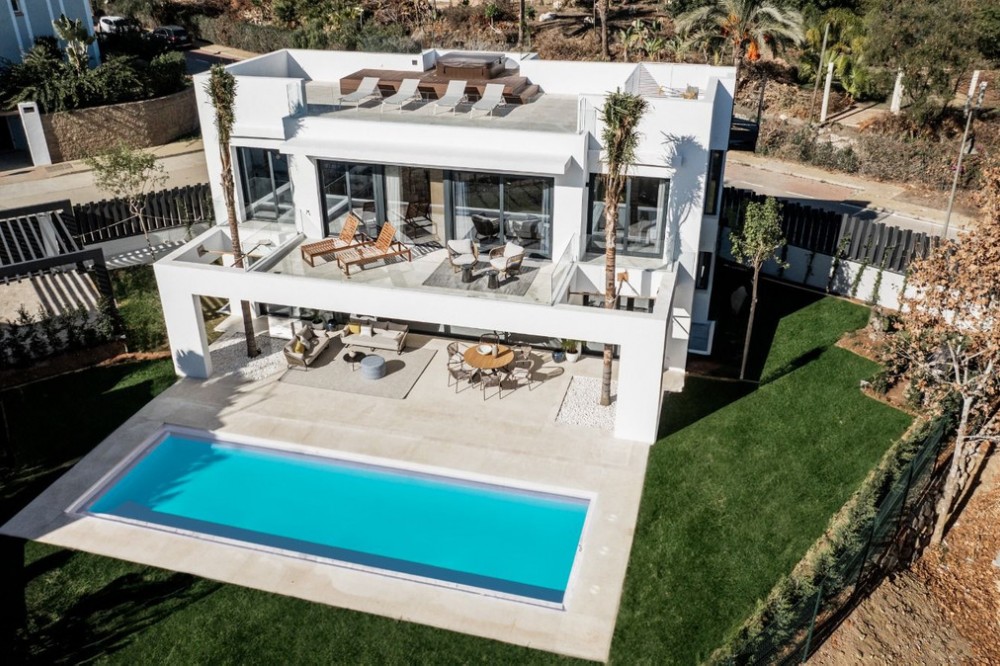 - Brand new luxury modern villa located next to San Pedro and a ten minute a ten-minute drive to the to Puerto Banús. This magnificent property has been designed by the famous Architect Juan Carlos Tortosa and is built with top quality materials and specifications, offering the perfect combination of luxury and comfort. Plot surface of 775 m2 and interior size 330 m2 plus terraces of more than 110 m2 and an amazing solarium with jacuzzi of 80 m2. Four bedrooms and five bathrooms, large living room and fully equipped designer kitchen, underfloor heating on the ground and first floors, air conditioning, private pool and garage for two vehicles.