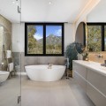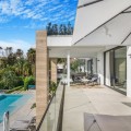 - Discover this brand-new, six-bedroom south-facing villa, situated in the prestigious gated community of Lomas del Marques, just above the renowned Puente Romano Resort on Marbella’s Golden Mile. Ideally located within walking distance to the beach and just minutes from both Puerto Banús and Marbella Town, this exquisite property combines modern luxury with unparalleled convenience. Set on a meticulously landscaped private plot, the villa features a heated swimming pool surrounded by lush greenery, creating an idyllic outdoor retreat. The ground floor offers an open-plan living and dining area that seamlessly connects to the garden, a state-of-the-art kitchen with premium appliances, and a stylish guest suite. On the first floor, you’ll find two elegant guest suites and a luxurious master suite, complete with a walk-in wardrobe and a private terrace. From this level, you can access a spacious solarium, boasting breathtaking sea views and equipped with a jacuzzi and outdoor kitchen, perfect for entertaining or unwinding in style. The lower level of the villa is designed for relaxation and entertainment, with a lounge area, bar, pool table, and two additional guest suites. This floor also provides access to a private garage with space for three cars, including electric car chargers. Additional features include hot and cold air-conditioning, built-in wardrobes, a comprehensive alarm system with security cameras, and an elevator connecting all levels of the property. Whether you’re looking for a dream family home or a high-yield rental investment, this remarkable villa—complete with a touristic license—is perfectly suited for year-round living. With its prime location and impeccable design, this property truly stands out as one of Marbella’s finest offerings.