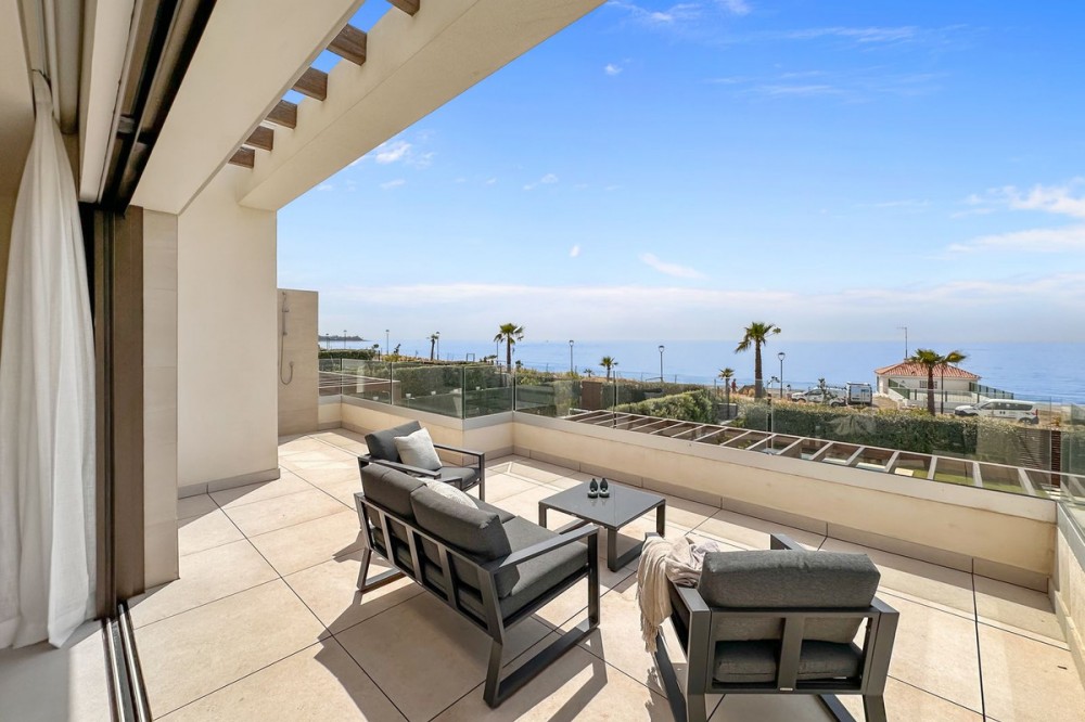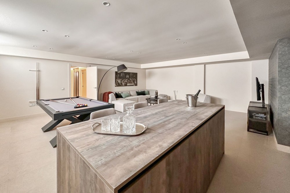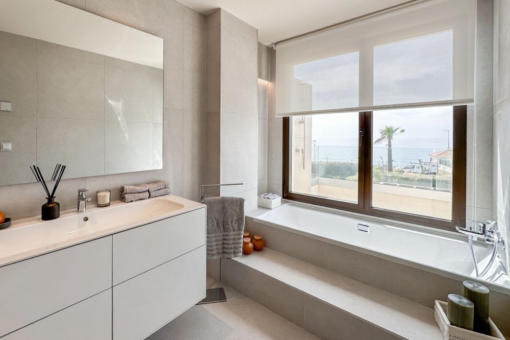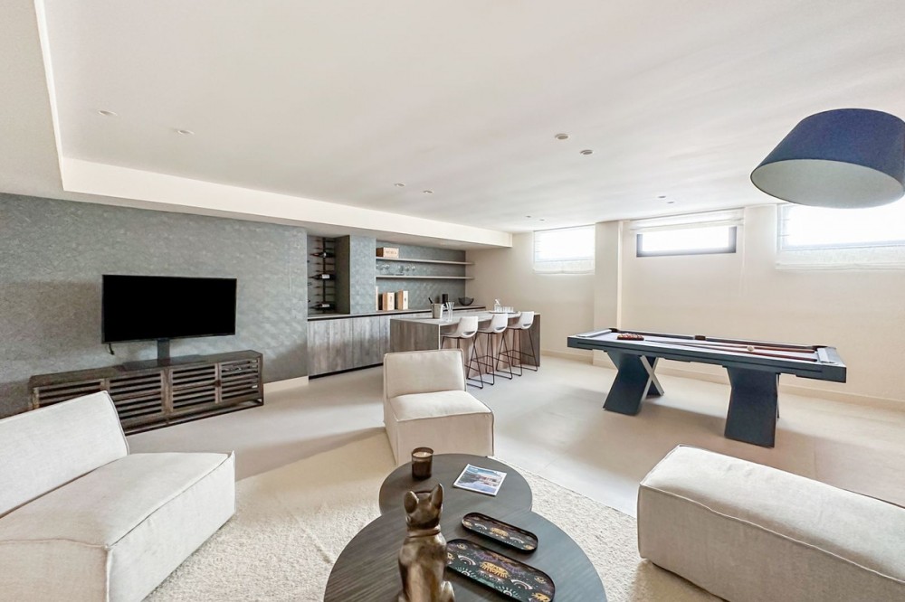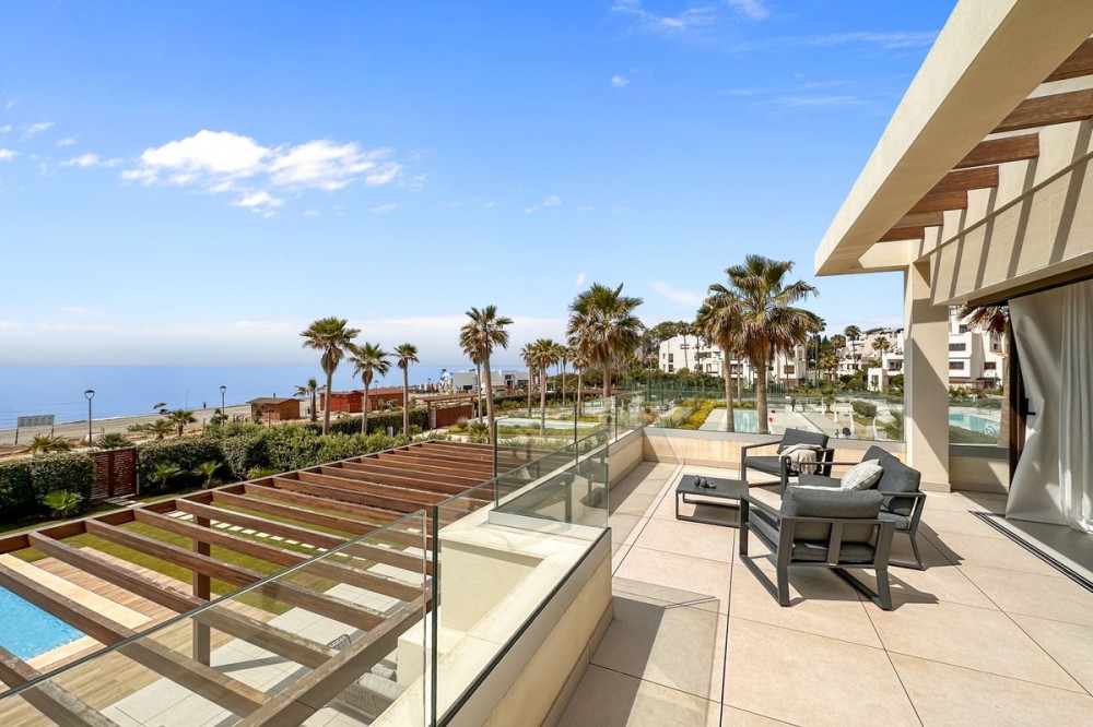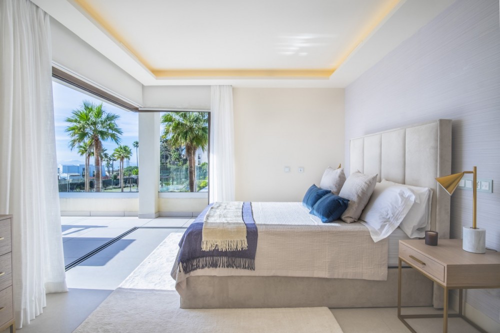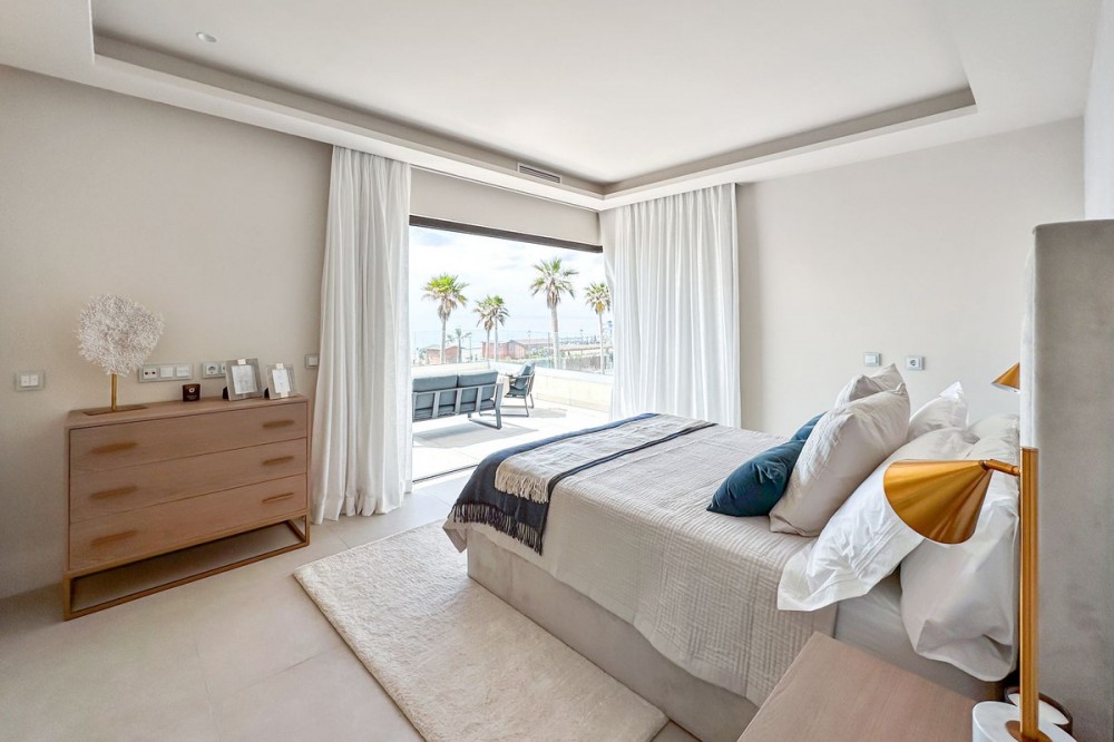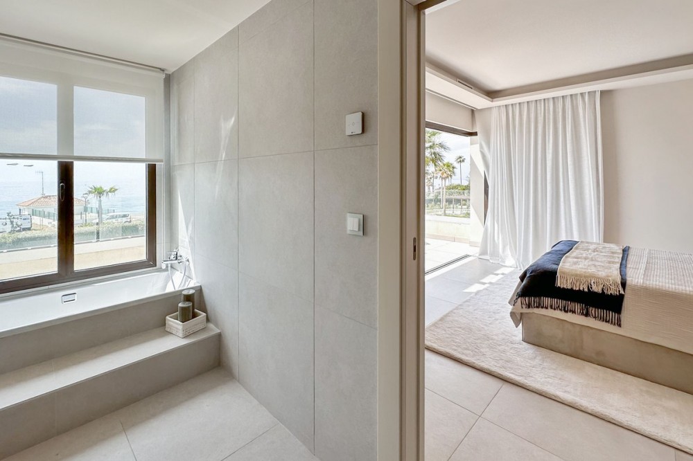 - *** Spectacular Luxury Detached Villa on The New Golden Mile, Estepona *** Corner: Maximum Privacy *** 5 Bedrooms and 4 Bathrooms *** Spacious Terraces *** Private Garden with Jacuzzi and Swimming Pool *** BAsement with Windows and Bathroom *** Beachfront *** Access to the Promenade from the Garden *** South Facing *** Underground Parking Space *** Fully Fitted BULTHAUP Kitchen with GAGGENAU and SIEMENS *** Fully Furnished *** Private Lift * ** Hot and Cold A/C and Underfloor Heating Throughout *** Double Glazing *** Home Automation *** Boutique Gated Complex *** Luxury Facilities: Heated Pool, Gym, Jacuzzi, Children's Pool, Playground, Tennis and Paddle Courts, Gardens and BBQ Area *** Maximum Security 24 hours a day with Concierge and Video Surveillance Cameras *** Direct Access to the Beach *** Perfect Location *** Less than Ten Minutes by Car from Estepona and Puerto Banús *** Ready to Move In!!! *** This brand new luxurious detached villa is in an excellent location in the area of The New Golden Mile, Estepona. The exclusive house is facing the sea, and has direct access to the boardwalk through a private gate. It has easy access to Estepona and Puerto Banús, which are less than ten minutes away by car. The ground level consists of the bright entrance hall that leads south to the main living room with dining area for eight people, and study or home office area. The full-fitted BULTHAUP kitchen with GAGGENAU appliances is integrated into this area and has a breakfast bar. On this level there're two guest bedrooms, both doubles, with fitted wardrobes and lovely views of the garden. There is a fully-equipped bathroom serving this level. The interior and exterior spaces are joined by double-glazed windows that go from floor to ceiling, thus generating a feeling of continuity and connection with nature. The spacious terrace features the chill-out, barbecue area with outdoor kitchen and dining space. In the garden one can enjoy the heated jacuzzi and the swimming pool, surrounded by perfectly manicured lawns and the wooden platform for sunbathing. All this, in the much desired south orientation. There's a direct access gate to the beach. The upper level has the impressive master suite with spectacular panoramic views of the Mediterranean Sea, Africa and Gibraltar. It consists of its own private terrace facing the sea, ensuite bathroom and walk-in walk-in wardrobe. The guest suite is a good size and has a private terrace, walk-in wardrobe and ensuite bathroom. The basement level is divided into two separate spaces and offers multiple possibilities of becoming a cinema, games room, spa circuit or even a fully equipped studio, depending on the owners' needs. It receives natural light thanks to its windows, and has a guest bathroom. The specifications of this villa are high-end: air conditioning, underfloor heating, aerothermal energy, double glazing, home automation, LED lighting, glass railings, electric shutters, video intercom and private elevator to all levels. The boutique complex's facilities are luxurious: heated infinity swimming pool, outdoor gym, jacuzzi, children's pool, children's play area, barbecue and exotic gardens. In addition, the complex is gated and fully protected 24 hours a day with a concierge, video surveillance cameras and security control. The house comes fully furnished, as one can see in the pictures, by the high quality brands. Also, it has its private underground parking space, where there is a charger for electric cars. This is a perfect opportunity to acquire a luxury villa in an exclusive residential complex. The location is excellent, in a quiet and safe area while perfectly connected to beach clubs, world-renowned golf courses, international schools, luxury boutiques, supermarkets and all services. For more information, please contact us.