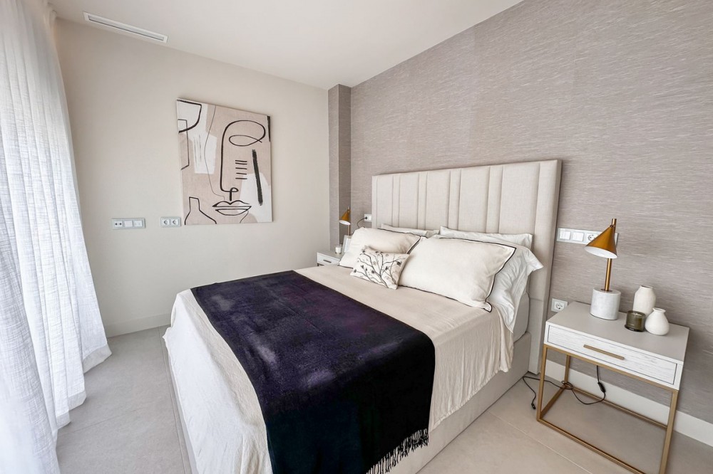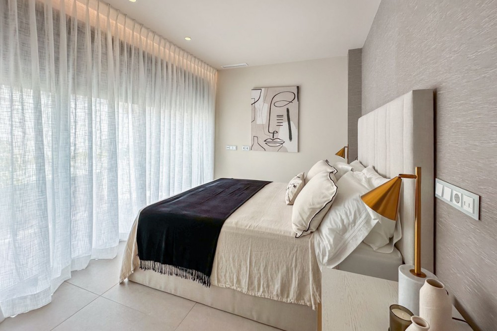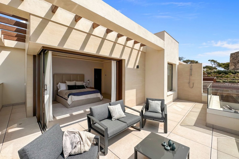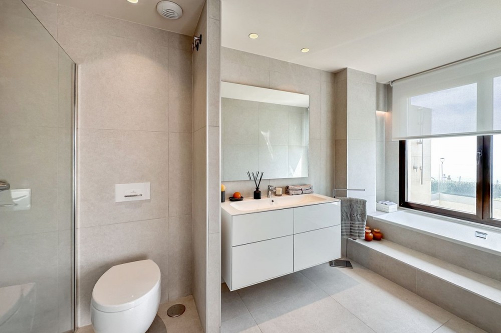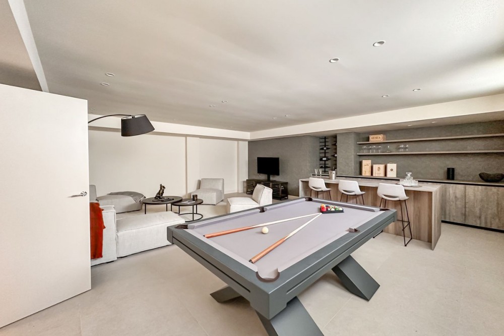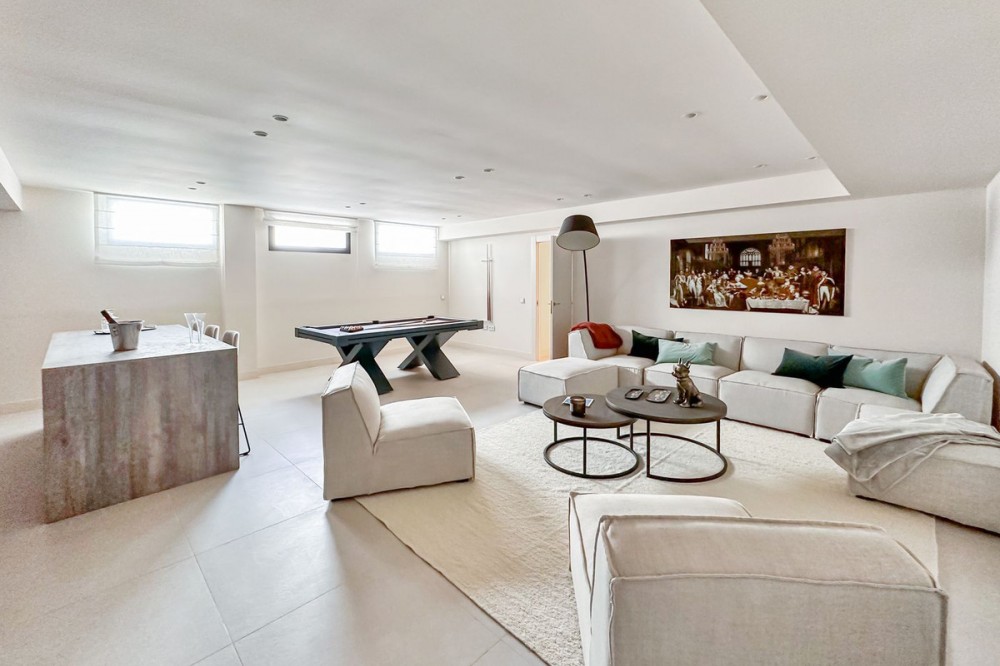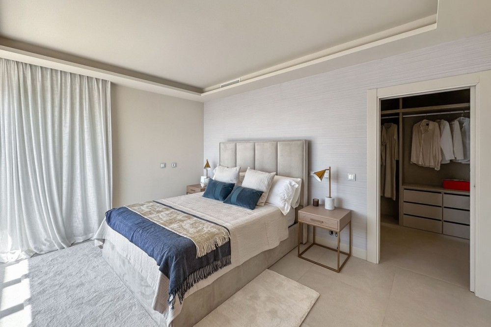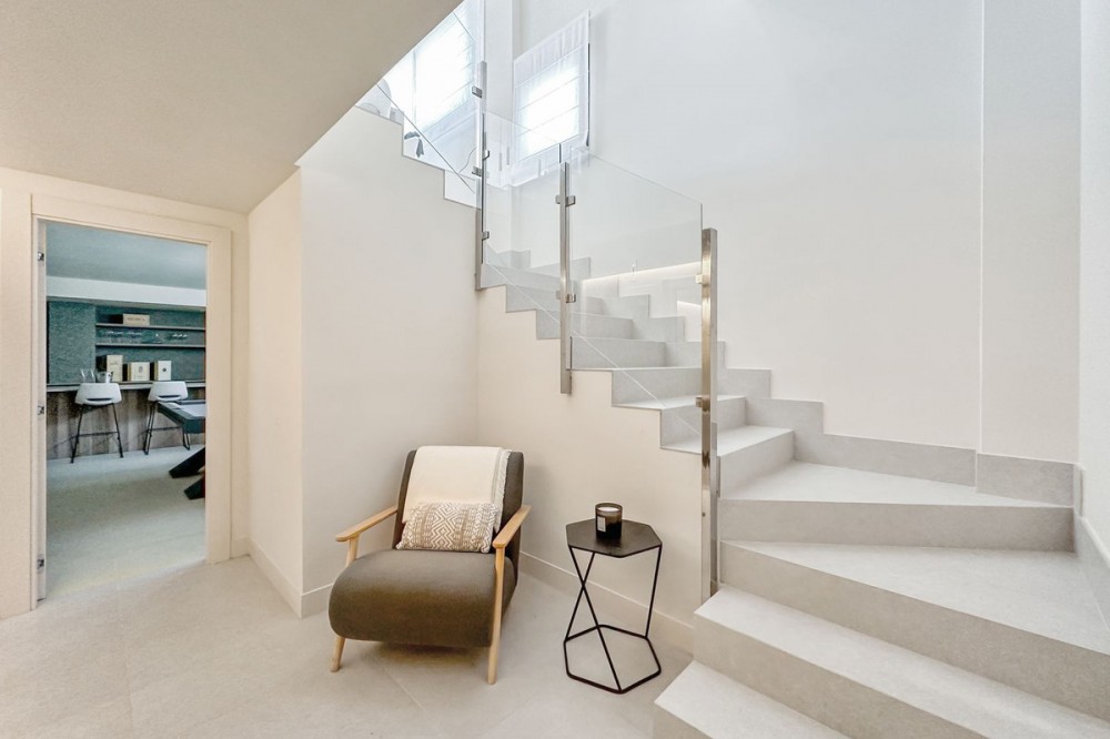 - *** Spectacular Luxury Detached Villa on The New Golden Mile, Estepona *** Corner: Maximum Privacy *** 5 Bedrooms and 4 Bathrooms *** Spacious Terraces *** Private Garden with Jacuzzi and Swimming Pool *** BAsement with Windows and Bathroom *** Beachfront *** Access to the Promenade from the Garden *** South Facing *** Underground Parking Space *** Fully Fitted BULTHAUP Kitchen with GAGGENAU and SIEMENS *** Fully Furnished *** Private Lift * ** Hot and Cold A/C and Underfloor Heating Throughout *** Double Glazing *** Home Automation *** Boutique Gated Complex *** Luxury Facilities: Heated Pool, Gym, Jacuzzi, Children's Pool, Playground, Tennis and Paddle Courts, Gardens and BBQ Area *** Maximum Security 24 hours a day with Concierge and Video Surveillance Cameras *** Direct Access to the Beach *** Perfect Location *** Less than Ten Minutes by Car from Estepona and Puerto Banús *** Ready to Move In!!! *** This brand new luxurious detached villa is in an excellent location in the area of The New Golden Mile, Estepona. The exclusive house is facing the sea, and has direct access to the boardwalk through a private gate. It has easy access to Estepona and Puerto Banús, which are less than ten minutes away by car. The ground level consists of the bright entrance hall that leads south to the main living room with dining area for eight people, and study or home office area. The full-fitted BULTHAUP kitchen with GAGGENAU appliances is integrated into this area and has a breakfast bar. On this level there're two guest bedrooms, both doubles, with fitted wardrobes and lovely views of the garden. There is a fully-equipped bathroom serving this level. The interior and exterior spaces are joined by double-glazed windows that go from floor to ceiling, thus generating a feeling of continuity and connection with nature. The spacious terrace features the chill-out, barbecue area with outdoor kitchen and dining space. In the garden one can enjoy the heated jacuzzi and the swimming pool, surrounded by perfectly manicured lawns and the wooden platform for sunbathing. All this, in the much desired south orientation. There's a direct access gate to the beach. The upper level has the impressive master suite with spectacular panoramic views of the Mediterranean Sea, Africa and Gibraltar. It consists of its own private terrace facing the sea, ensuite bathroom and walk-in walk-in wardrobe. The guest suite is a good size and has a private terrace, walk-in wardrobe and ensuite bathroom. The basement level is divided into two separate spaces and offers multiple possibilities of becoming a cinema, games room, spa circuit or even a fully equipped studio, depending on the owners' needs. It receives natural light thanks to its windows, and has a guest bathroom. The specifications of this villa are high-end: air conditioning, underfloor heating, aerothermal energy, double glazing, home automation, LED lighting, glass railings, electric shutters, video intercom and private elevator to all levels. The boutique complex's facilities are luxurious: heated infinity swimming pool, outdoor gym, jacuzzi, children's pool, children's play area, barbecue and exotic gardens. In addition, the complex is gated and fully protected 24 hours a day with a concierge, video surveillance cameras and security control. The house comes fully furnished, as one can see in the pictures, by the high quality brands. Also, it has its private underground parking space, where there is a charger for electric cars. This is a perfect opportunity to acquire a luxury villa in an exclusive residential complex. The location is excellent, in a quiet and safe area while perfectly connected to beach clubs, world-renowned golf courses, international schools, luxury boutiques, supermarkets and all services. For more information, please contact us.