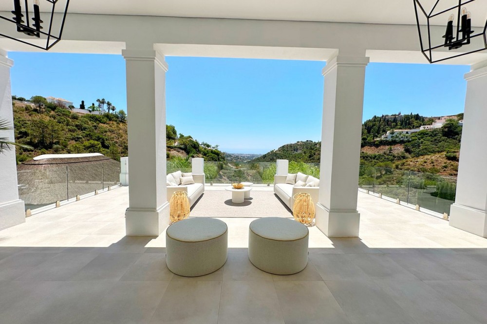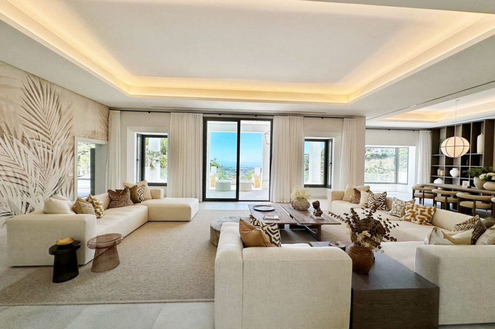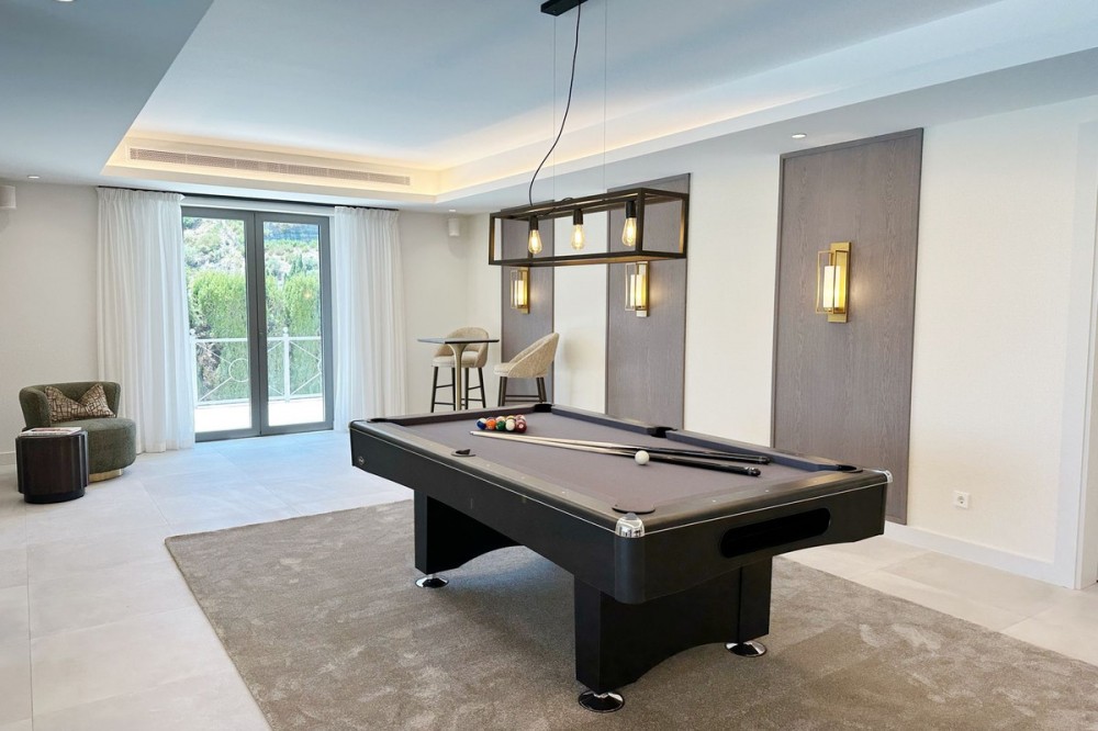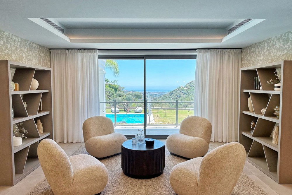 - Stunning Villa in the Heart of El Madroñal with Breathtaking Views Discover this spectacular villa, perfectly situated in the heart of El Madroñal, boasting unparalleled panoramic views. Recently renovated and tastefully decorated, this home features everything you need for an exquisite family lifestyle, offering expansive spaces for luxurious living. As you enter, you'll be greeted by a grand entrance hall leading to a spacious open-concept living room, an elegant dining area, and an oversized kitchen. Additionally, a stunning double-height office space provides a perfect work environment, all while enjoying unobstructed views of the El Madroñal mountains and the Mediterranean Sea. The expansive plot includes a beautifully landscaped garden and a generous entrance area with ample parking for multiple vehicles, ensuring convenience and privacy. On the upper floor, you will find three enormous en-suite bedrooms, each showcasing the best views El Madroñal has to offer, creating a serene retreat for relaxation. This remarkable property also features a two-car garage and a lower level dedicated to leisure and wellness, including a spacious gym, cozy lounges, a cinema room, and even a large indoor pool. Don’t miss your chance to own one of the most exclusive villas on the Costa del Sol, where luxury and comfort come together in perfect harmony!