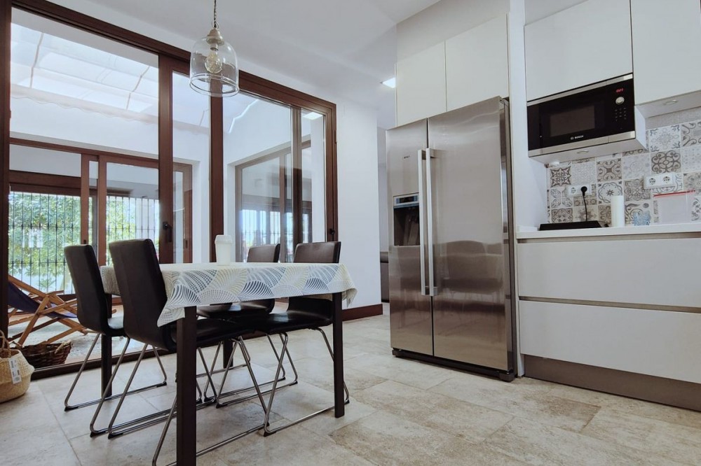 - Discover this stunning Mediterranean-style home, located just a few meters from the sea. This charming residence offers an unbeatable location, with restaurants nearby and a seaside promenade within easy walking distance. The house features five spacious bedrooms, five full bathrooms, and an additional guest restroom, all designed to provide maximum comfort. Radiant floors and an advanced aerothermal system ensure a warm and inviting atmosphere year-round. Upstairs, three bedrooms boast en-suite bathrooms, offering a touch of luxury and privacy. Recently renovated, the property sits on a generous 750-square-meter plot, providing ample outdoor space. With a total built area of 280 square meters, every corner of this home combines elegance and modernity. Moreover, there's the possibility to add a beautiful swimming pool, perfect for enjoying the sunny Mediterranean climate. This is a unique opportunity to live in a privileged environment, where modern comfort meets traditional charm. Detached Villa, San Pedro de Alcántara, Costa del Sol. 5 Bedrooms, 5.5 Bathrooms, Built 280 m², Garden/Plot 750 m². Setting : Town, Beachside, Close To Golf, Close To Port, Close To Shops, Close To Sea, Close To Schools. Orientation : South, West. Condition : Excellent, Recently Renovated. Pool : Room For Pool. Climate Control : Air Conditioning, U/F Heating. Views : Garden, Courtyard. Features : Covered Terrace, Fitted Wardrobes, Near Transport, Private Terrace, Storage Room, Utility Room, Ensuite Bathroom, Basement, Fiber Optic. Furniture : Fully Furnished. Kitchen : Fully Fitted. Garden : Private, Easy Maintenance. Security : Electric Blinds, Entry Phone, Alarm System. Parking : Covered, Private. Utilities : Electricity, Drinkable Water, Photovoltaic solar panels. Category : Beachfront, Golf, Holiday Homes, Investment, Luxury, Contemporary.