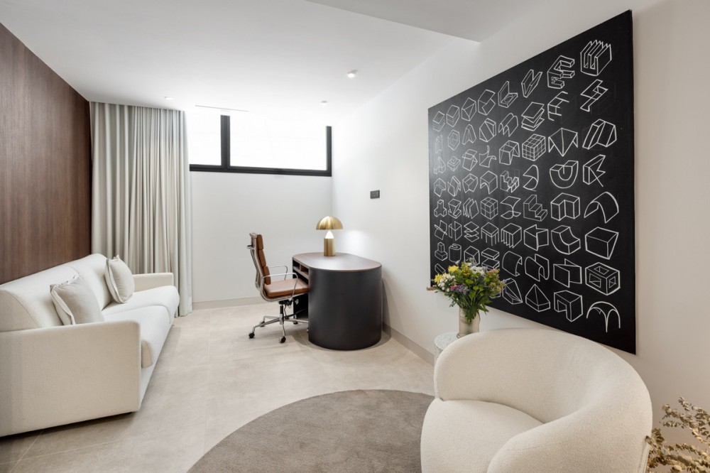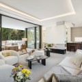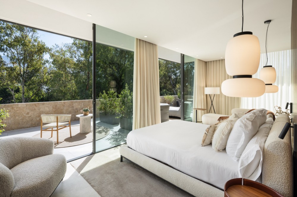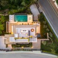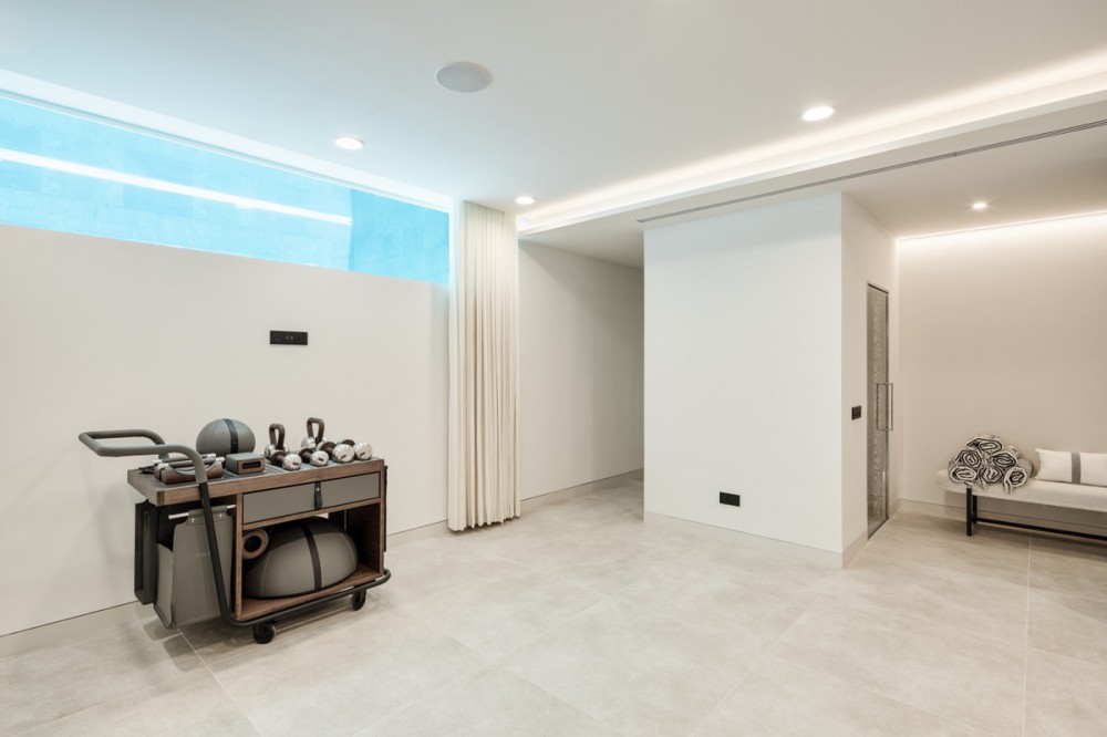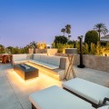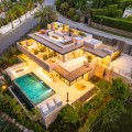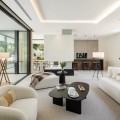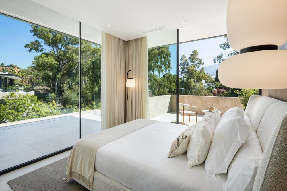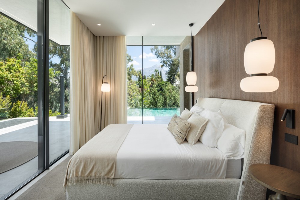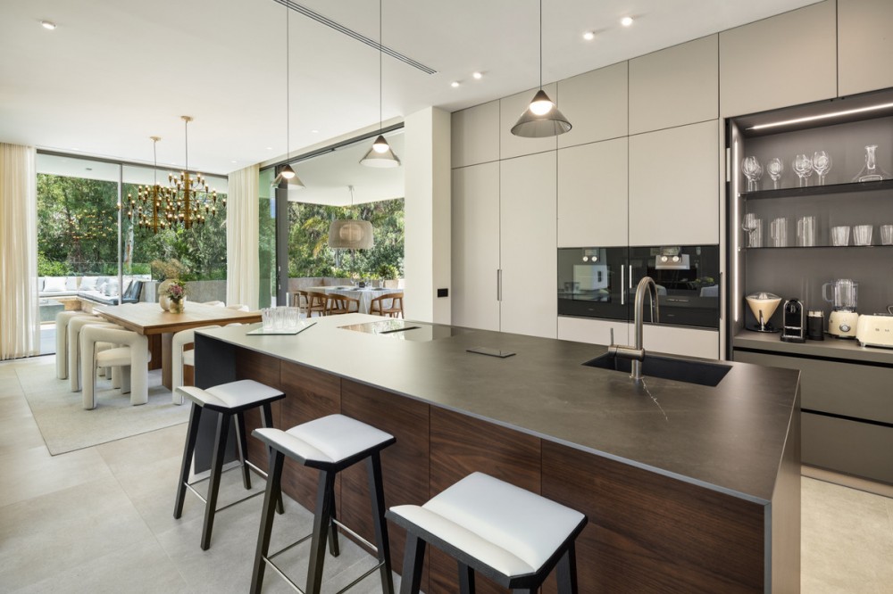 - Deze eigentijdse villa, gelegen in de prestigieuze wijk La Cerquilla in Nueva Andalucía, is het toonbeeld van luxe. Vakkundig vervaardigd met organische materialen, gaat de villa naadloos op in de natuurlijke omgeving. De begane grond beschikt over een ruime woonkamer, een open keuken, een eetkamer en een slaapkamer met eigen badkamer. Deze verdieping loopt naadloos over in terrassen met een buitenkeuken, zit- en eethoek en een zwembad. De eerste verdieping heeft een hoofdslaapkamer met inloopkast en nog een slaapkamer met eigen badkamer. Het dakterras is ontworpen om te ontspannen en is voorzien van zitjes, een vuurplaats, een jacuzzi en de mogelijkheid om een extra buitenkeuken te plaatsen. De kelder biedt uitgebreide mogelijkheden voor personalisatie, met een tv-kamer, een garage voor één auto, een speelkamer, een fitnessruimte, een spa met sauna en hamam, een slaapkamer met eigen badkamer en een extra slaapkamer/kantoor die een badkamer deelt met de fitnessruimte. Duurzaamheid is een integraal onderdeel van het ontwerp van de villa, met voorgeïnstalleerde zonnepanelen en gebruiksvriendelijke domoticasystemen die via een smartphone te bedienen zijn. De woning beschikt over zonegestuurde vloerverwarming en hoogwaardige Gaggenau keukenapparatuur. De badkamers zijn uitgerust met premium armaturen van Villeroy & Boch en Grohe. Het zoutwaterzwembad met overloop biedt een serene oase. Geavanceerde technologie omvat voorbereidingen voor gemotoriseerde gordijnen en flexibele plaatsingsmogelijkheden voor de tv in de daarvoor bestemde entertainmentruimtes. Een aparte ruimte voor tuingereedschap zorgt voor privacy en efficiëntie. De zorgvuldig ontworpen tuin versterkt de luxueuze buitenruimtes en vormt een perfecte combinatie van luxe en rust. Deze volledig gemeubileerde villa biedt de flexibiliteit om de bovenverdieping naar eigen wens in te richten, waarbij alle meubels bij de prijs zijn inbegrepen. Ervaar ongeëvenaarde elegantie en comfort in deze uitzonderlijke woning.