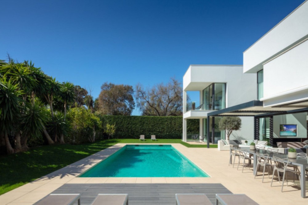 - This contemporary villa provides the ultimate in beach side luxury living. Located in the beautiful beachside resort of Puerto Banus, 200 meters walking distance to the beach, close to shops and nightlife of Puerto Banus and short driving distance from Marbella centre and San Pedro. Designed across 3 floors, all accessible through the private elevator, the property offers 7 bedrooms and 7 bathrooms each with an outdoor terrace. Entrance level boasts of a large airy open plan living with double height ceilings. Welcoming exteriors include a manicured garden which surrounds the 54m2 salt water heated pool, cosy lounge areas, an outdoor dining area completed with its own outdoor kitchen and BBQ area for al fresco dining. On the first floor you will find 3 en-suite bedrooms and a hanging gallery overlooking the impressive lounge area. The generous master suite is completed with a walk-in shower, stand alone bath and an expansive walk-in wardrobe. A large outdoor sun terrace overlooks the pool and garden with access to the roof terrace. An expansive area with 3 separate terraces, giving you even more options for sunbathing and dining, while enjoying the breathtaking Sea and Mountain views. The basement has been converted into the perfect relaxation area, equipped with a cinema room and a games lounge.