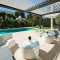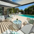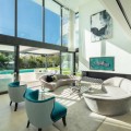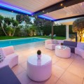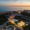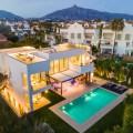 - This contemporary villa provides the ultimate in beach side luxury living. Located in the beautiful beachside resort of Puerto Banus, 200 meters walking distance to the beach, close to shops and nightlife of Puerto Banus and short driving distance from Marbella centre and San Pedro. Designed across 3 floors, all accessible through the private elevator, the property offers 7 bedrooms and 7 bathrooms each with an outdoor terrace. Entrance level boasts of a large airy open plan living with double height ceilings. Welcoming exteriors include a manicured garden which surrounds the 54m2 salt water heated pool, cosy lounge areas, an outdoor dining area completed with its own outdoor kitchen and BBQ area for al fresco dining. On the first floor you will find 3 en-suite bedrooms and a hanging gallery overlooking the impressive lounge area. The generous master suite is completed with a walk-in shower, stand alone bath and an expansive walk-in wardrobe. A large outdoor sun terrace overlooks the pool and garden with access to the roof terrace. An expansive area with 3 separate terraces, giving you even more options for sunbathing and dining, while enjoying the breathtaking Sea and Mountain views. The basement has been converted into the perfect relaxation area, equipped with a cinema room and a games lounge.