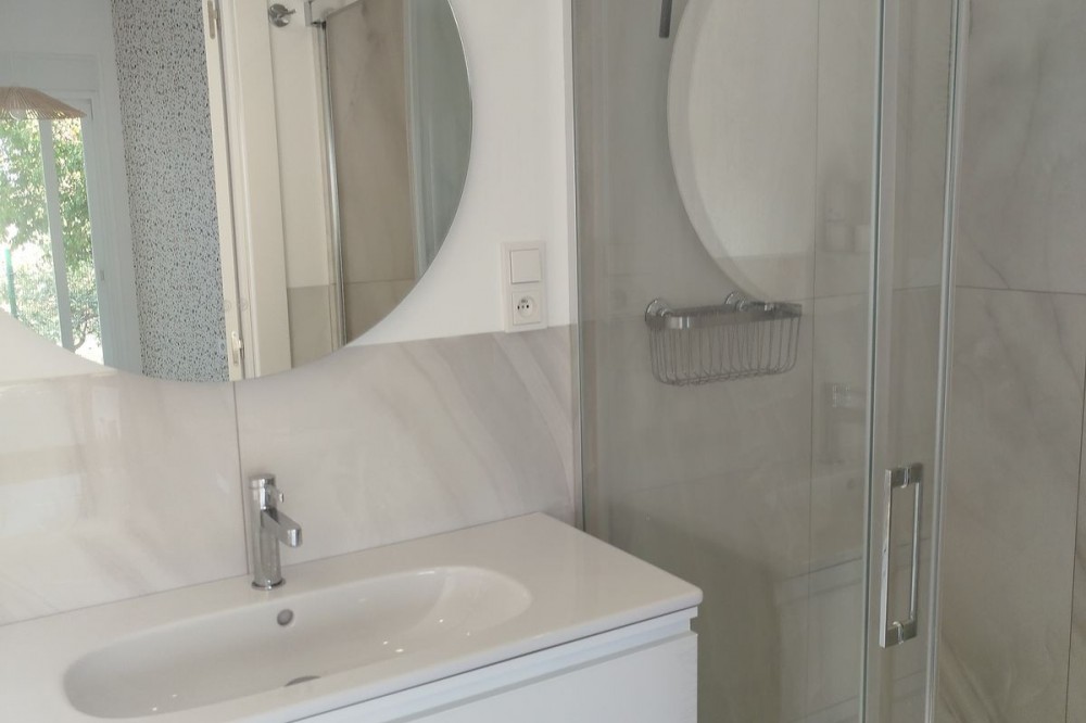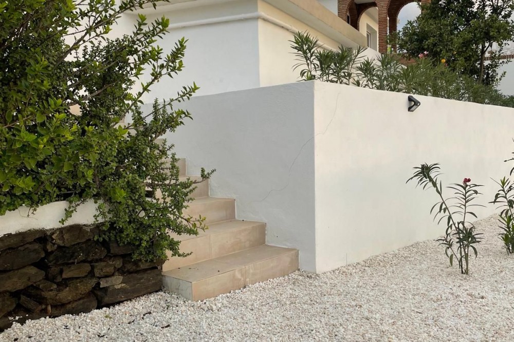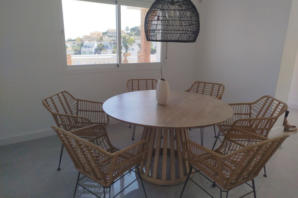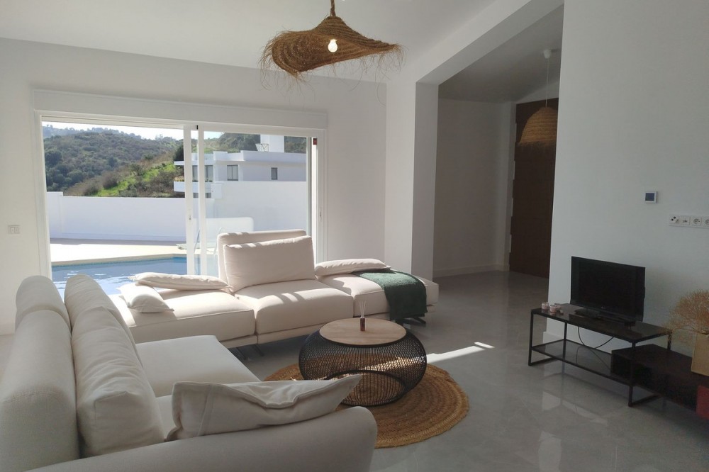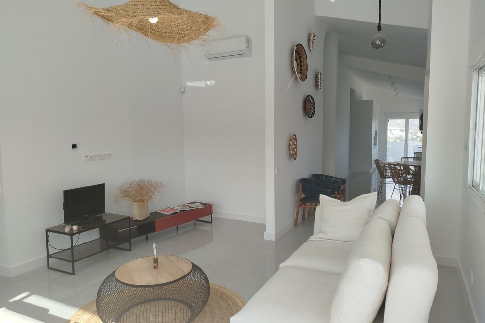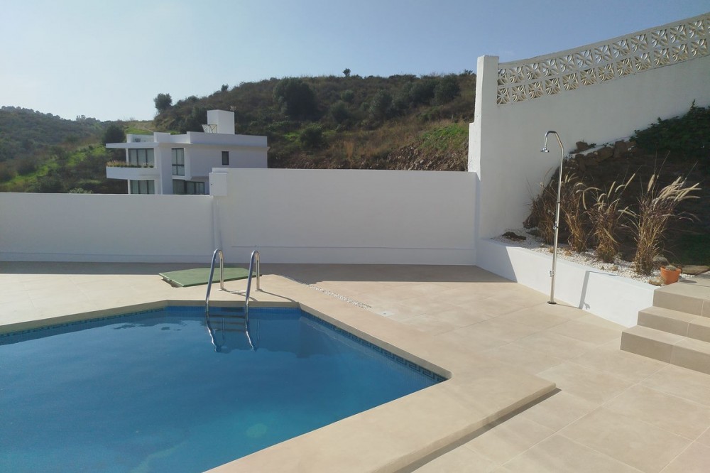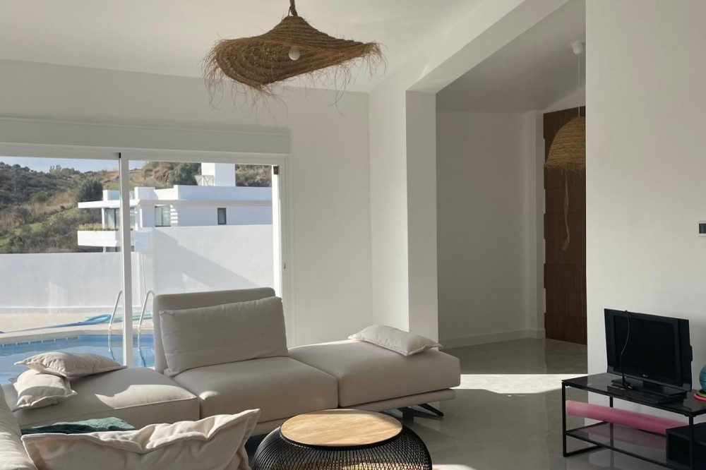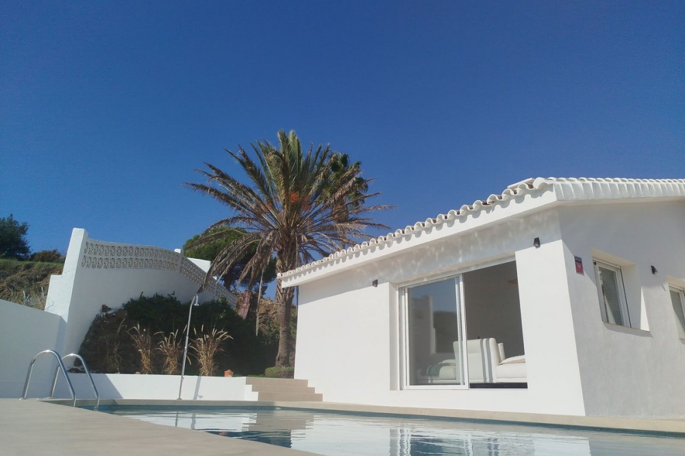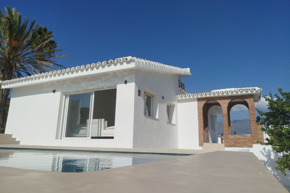 - This immaculate 3-bedroom villa with 3 ensuite bathrooms has recently been totally renovated to a high standard. It is set in an elevated position in Cerros de Aguila with unparalled panoramic sea and mountain views. You enter via a long driveway with private parking plus a covered garage for 2 cars and with a good-sized storeroom. There is a gated entrance to the one level villa with an open plan living/dining room and kitchen diner both with access to large terraces with panoramic sea views and to the landscaped gardens with an infinity pool. There are 2 guest bedrooms with ensuites with access to the back garden and terraces, a guest toilet, and a large master bedroom with a feature bath, washbasin and toilet with panoramic views to the sea. The property has underfloor heating in most rooms with electric blinds and hot and cold air conditioning. The property is all fenced and alarmed with terraced gardens with a selection of fruit and palm trees. There is also a roof solarium with panoramic 360-degree views of the mountains and the sea. The property is within easy access to Fuengirola and Mijas, bars, restaurants, beach and the new Mijas park. You also have the well-placed community pool, gardens, sport facilities, bars and shops of the local community of Cerros de Aguila. Detached Villa, Mijas Costa, Costa del Sol. 3 Bedrooms, 3 Bathrooms, Built 241 m², Terrace 100 m², Garden/Plot 1000 m². Setting : Suburban, Close To Golf, Close To Shops, Close To Sea, Close To Town, Close To Schools, Urbanisation. Orientation : South. Condition : Excellent, Recently Renovated, Recently Refurbished. Pool : Private. Climate Control : Air Conditioning, Hot A/C, Cold A/C, U/F Heating, U/F/H Bathrooms. Views : Sea, Mountain, Panoramic. Features : Covered Terrace, Fitted Wardrobes, Private Terrace, Solarium, Storage Room, Ensuite Bathroom, Marble Flooring, Double Glazing. Furniture : Part Furnished. Kitchen : Fully Fitted. Garden : Private. Security : Electric Blinds, Alarm System. Parking : Underground, Garage, Open, Private. Utilities : Electricity, Drinkable Water. Category : Resale.