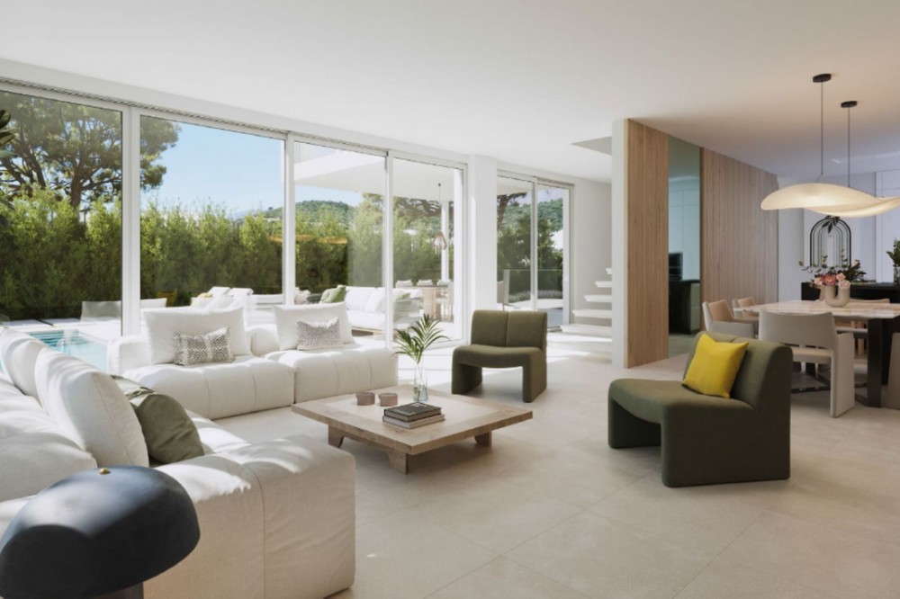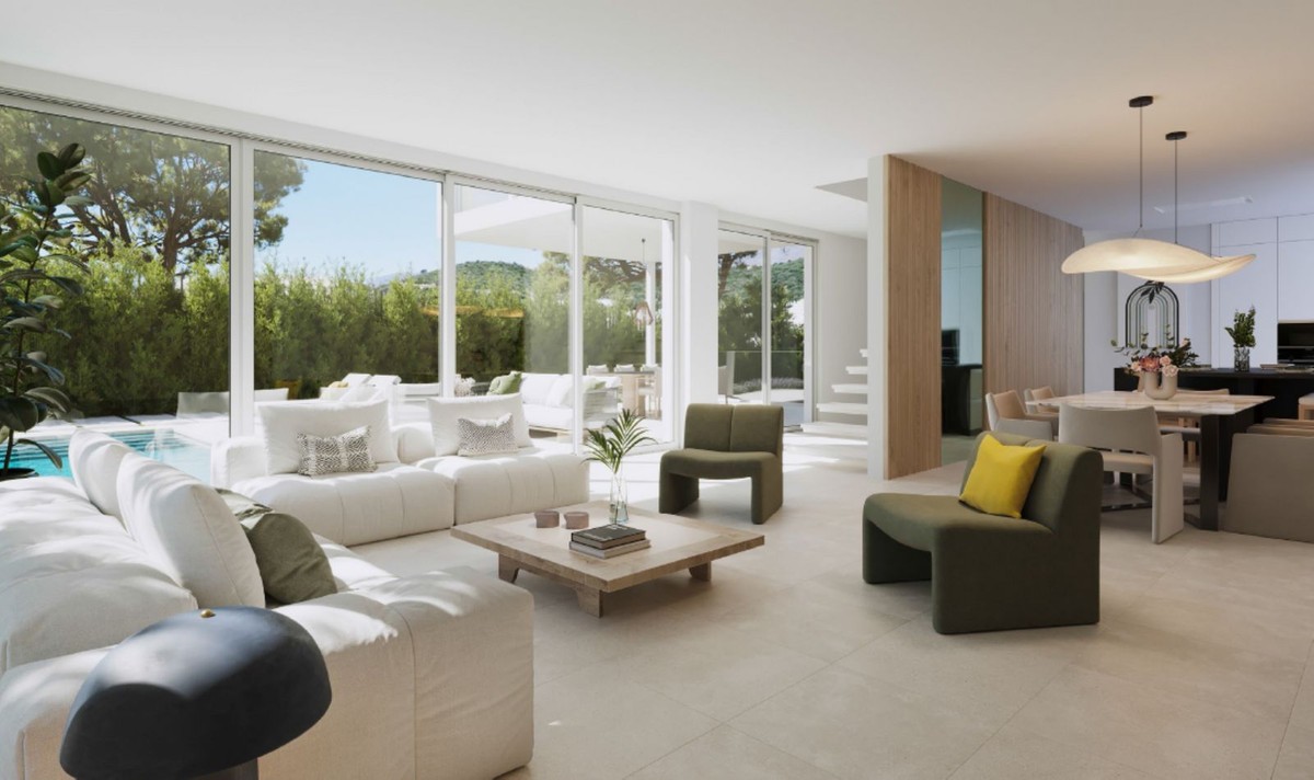- This project has already obtained a license, and construction is set to begin immediately. This exclusive luxury villa, located in the prestigious enclave of Valle Romano in Estepona, embodies the essence of modern design and sophistication in a privileged natural setting. With clean, elegant architectural lines, the villa blends seamlessly into the Mediterranean landscape, maximizing natural light and offering panoramic views of the sea and nearby golf courses. The interior design focuses on comfort and functionality, featuring spacious open areas and high-end finishes. The living room, surrounded by large windows, connects to a fully equipped gourmet kitchen—perfect for those who enjoy the culinary arts in an elegant setting. The bedrooms, all with en-suite bathrooms, stand out for their privacy, brightness, and direct access to private terraces that invite relaxation. Outside, the villa boasts an impressive swimming pool and landscaped gardens that combine native flora with a minimalist design. Multiple lounge areas and an outdoor barbecue space make this the perfect place for entertainment and relaxation, offering an exclusive and serene ambiance. Designed for those seeking a luxurious lifestyle in a unique natural environment, this villa in Valle Romano, Estepona, strikes the perfect balance between contemporary design, comfort, and natural beauty.