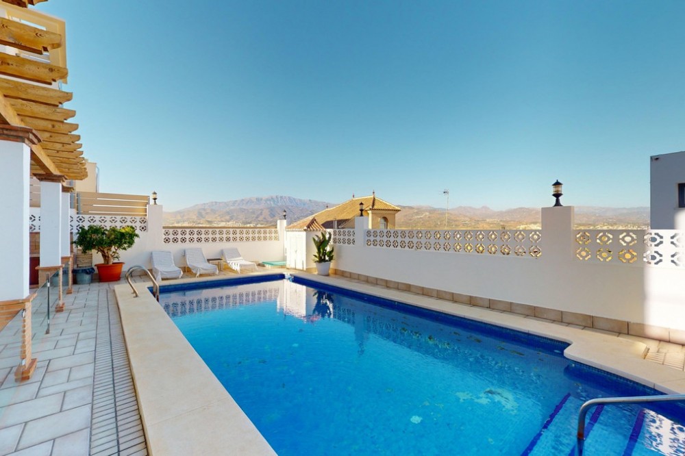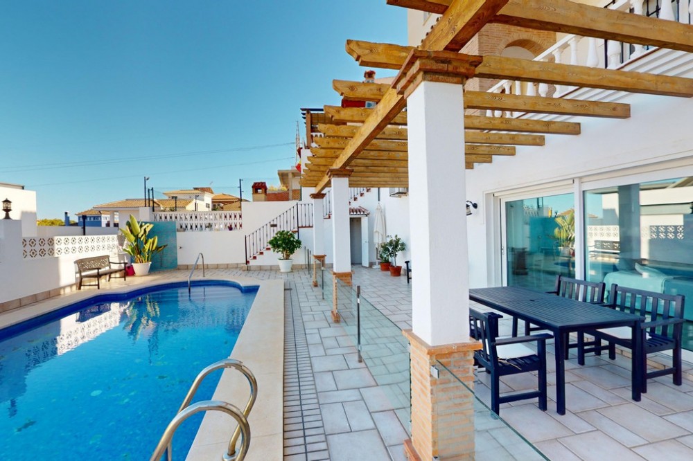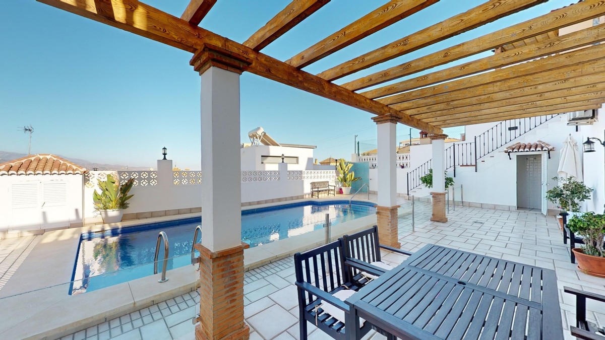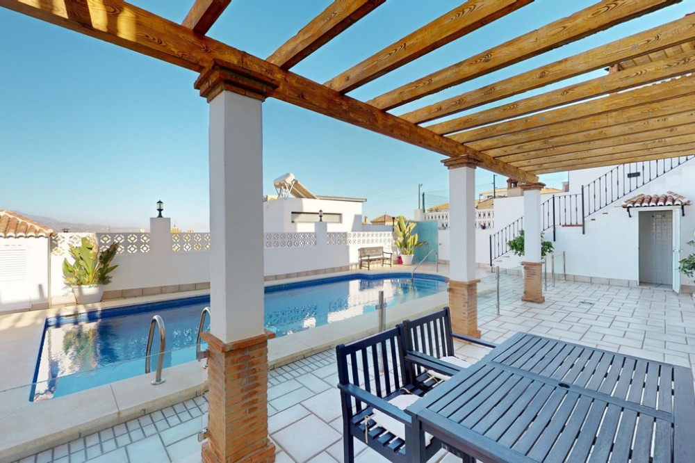 - Discover your dream Mediterranean lifestyle in this exquisite 3-bedroom, 4-bathroom haven nestled in a private, gated community in Torre del Mar, where tranquility and security are paramount. This exclusive urbanization with only a few neighboring residences ensures privacy and peace, just minutes from the vibrant center of Torre del Mar and only 5 minutes from its stunning beaches. Spanning three sunlit floors and covering 204 square meters, this masterpiece seamlessly blends modern luxury with traditional Spanish charm. Step into a world of elegance, where rustic wooden beams adorn high ceilings, creating an ambiance of warmth and sophistication. The open-concept living and dining area invites you to relax and entertain, filled with natural light streaming through large windows offering tantalizing views of the lush surroundings. The gourmet kitchen is a culinary enthusiast's dream, featuring sleek wooden cabinetry, premium granite countertops, and state-of-the-art appliances, with large windows offering a scenic backdrop. The tranquil primary bedroom, a spacious 16 m2 sanctuary, combines style and comfort, while six luxurious bathroomsincluding one with turquoise accentsprovide spa-like relaxation at home. Designed for discerning buyers, the house offers a perfect blend of aesthetics and functionality, including a laundry room and ample storage spaces for comfortable living. Enjoy seamless indoor-outdoor living with multiple spaces to bask in the renowned Spanish sun, perfect for entertaining or quiet moments alike. Located just a short drive from Torre del Mars bustling promenade, this property offers the ideal blend of peaceful living and easy access to local amenities, including shops, cafes, and restaurants. Torre del Mar is a vibrant coastal town known for its beautiful beaches, charming seaside atmosphere, and excellent dining options. Embrace the Mediterranean lifestyle and make this stunning home your personal paradise. We are pleased to be able to present this dream property to you soon, either personally or via virtual viewing. Because this world is uniquejust like our Axarquía. In Andalusia. On the Costa del Sol. Here, on the sunny side of life...