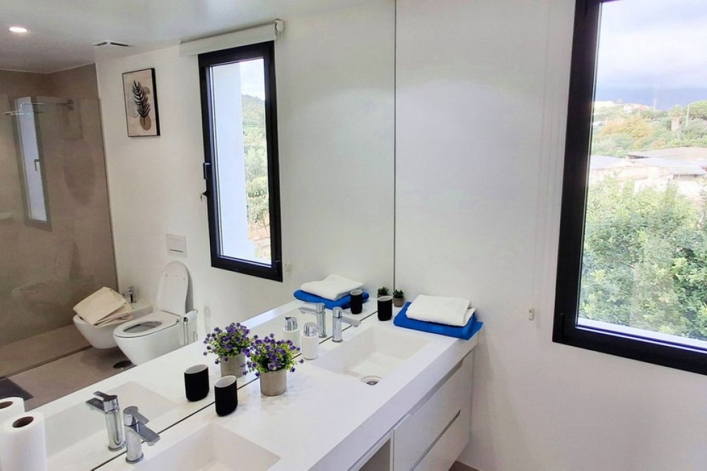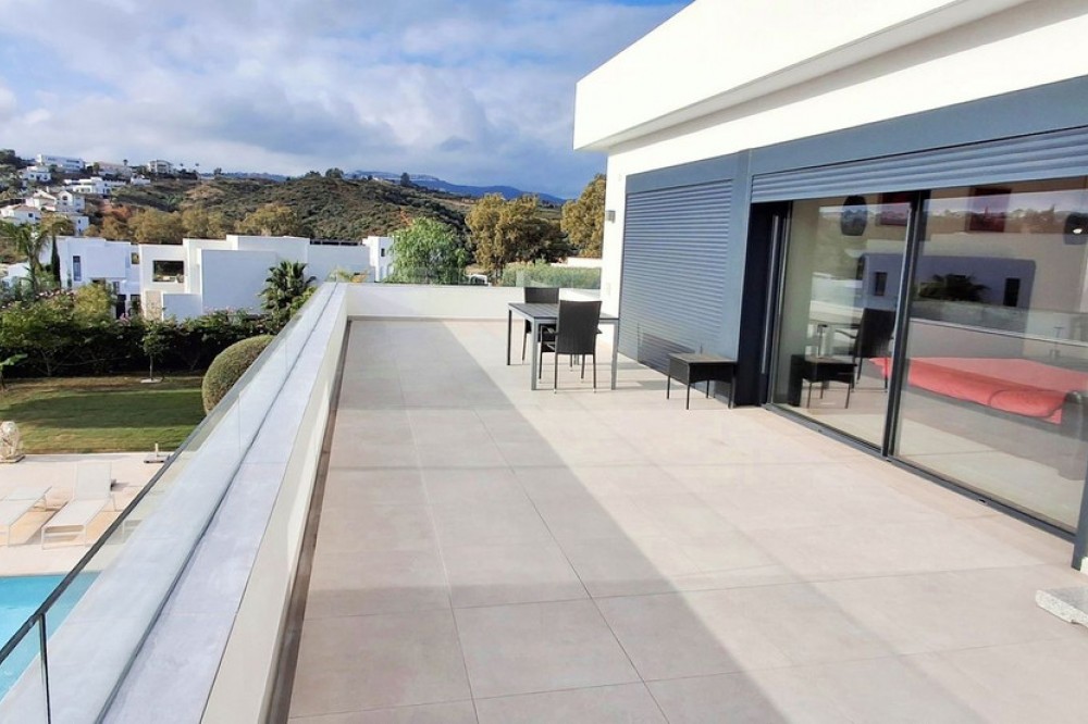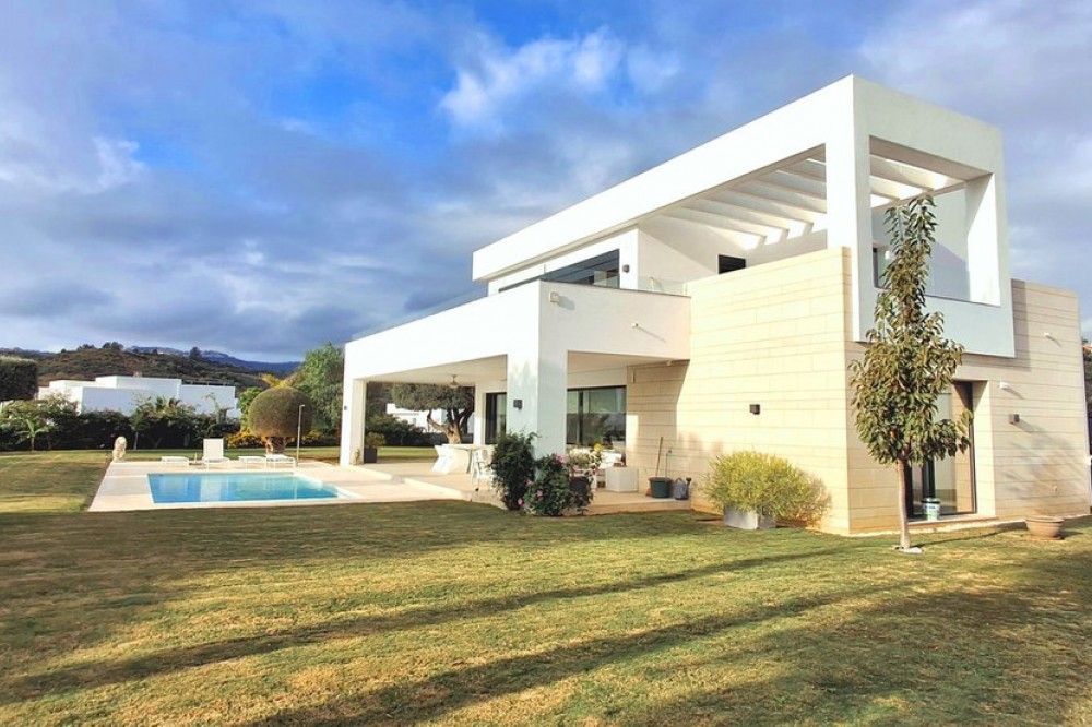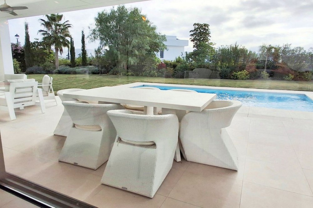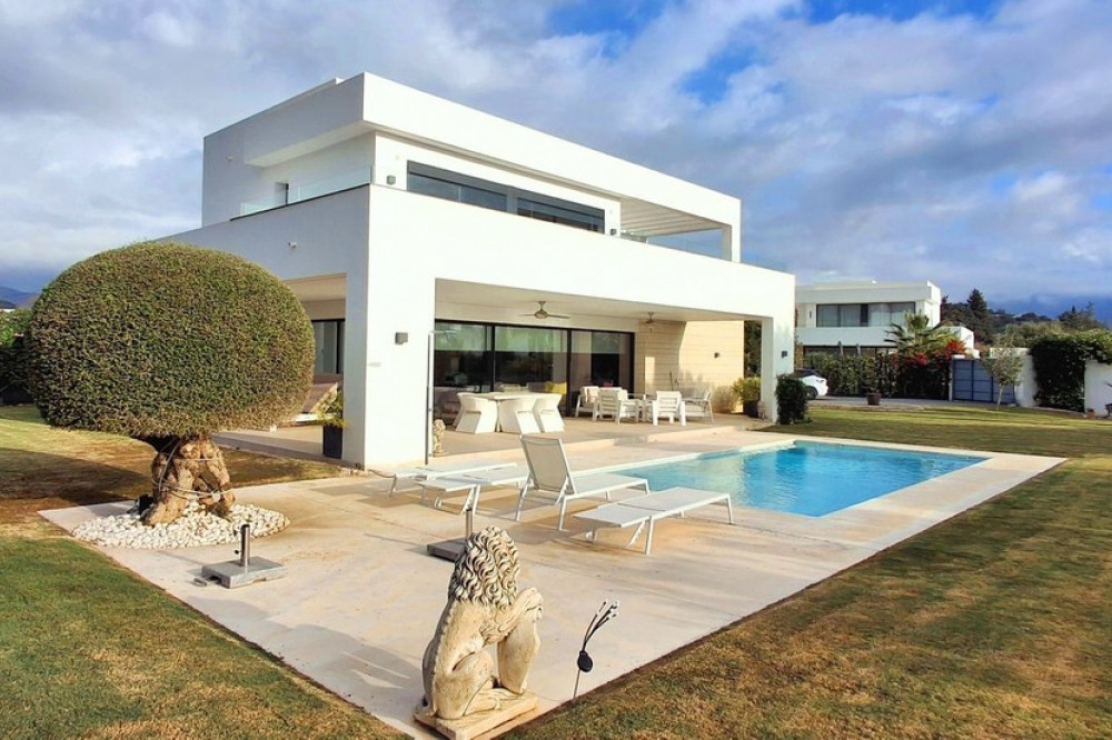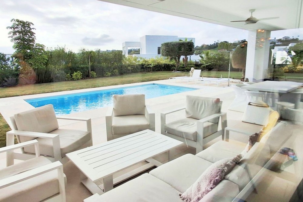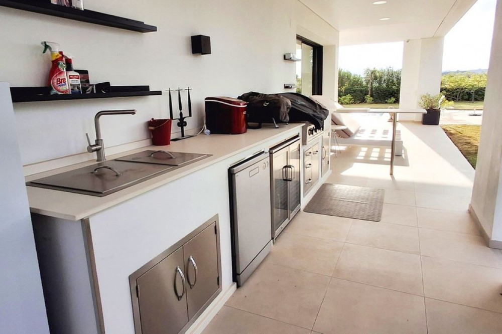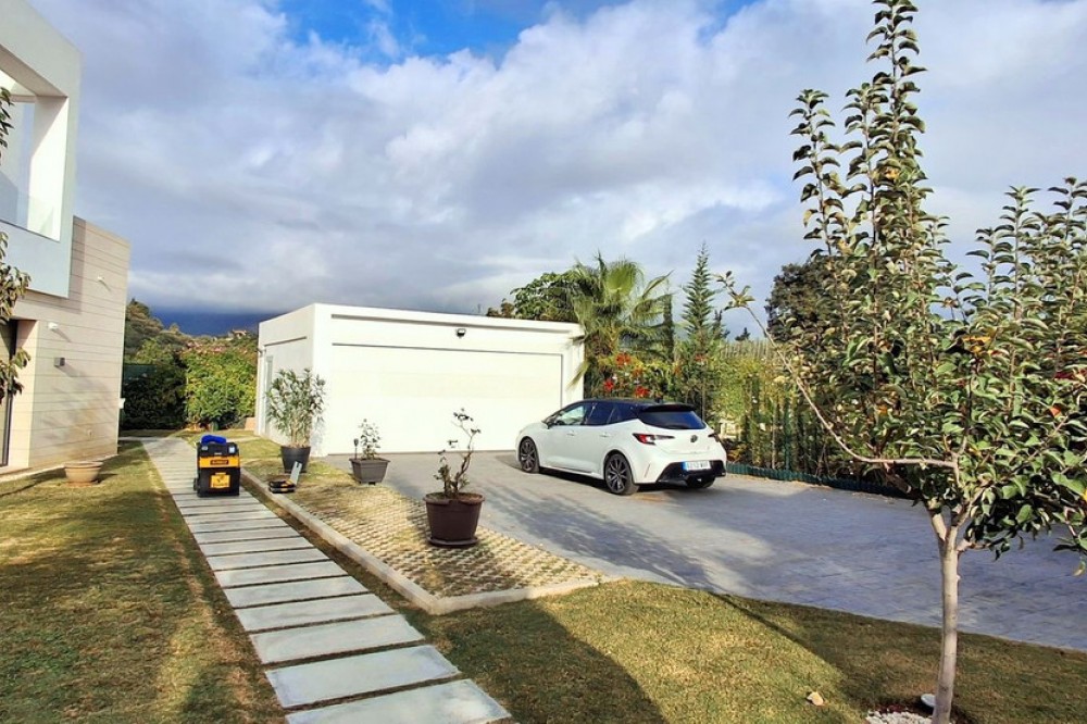 - We are pleased to present this magnificent villa, located in one of the most coveted areas of the Costa del Sol, just a few minutes from the prestigious La Cala Golf Resort - Costa del Sol. This modern house, with 3 bedrooms and 3 bathrooms, offers an idyllic lifestyle and represents a unique opportunity to acquire a property in the desired area of Mijas Costa. Upon entering, you will be surprised by the spacious and bright living-dining room, flooded with natural light thanks to the floor-to-ceiling windows that offer spectacular views of the garden and the heated pool. These large glass doors open completely, merging the indoor and outdoor space, allowing you to enjoy the sunny climate and an al fresco lifestyle. The modern and functional kitchen features high-quality finishes and state-of-the-art appliances. To the rear of the kitchen, you will find a practical laundry room. One of the highlights of this villa is the outdoor kitchen, fully equipped with barbecue, grill and cooking and cooling areas, perfect for preparing and enjoying meals outdoors during the mild Mediterranean evenings. With an automatic gate that leads to a large entrance that offers generous parking space, ensuring comfort and tranquillity. Located at the end of a cul-de-sac, this villa enjoys a serene and private environment, ideal for those seeking peace and relaxation. The villa has been upgraded with various exterior facilities, including a private two-car garage and additional storage space. In addition, it is equipped with discreet solar panels that generate 55 kWh of energy per day, allowing for significant savings on energy costs. A paved driveway connecting the garage and parking areas leads to the villa's impressive entrance. This villa is the ideal home for a family looking for a balance between modernity, comfort and quality of life, all in a peaceful and secure environment. Highlights: - 1514 m² plot - 3 bedrooms with 3 bathrooms (296 m² built) - Spacious sitting room and kitchen - Underfloor heating in bathrooms - Kitchen features high-quality fittings and state-of-the-art appliances - Outdoor kitchen, fully equipped with barbecue, grill and cooking and cooling areas - Spacious gardens plus heated pool - Ample parking space, including a private two-car garage (automatic gates) - South facing - Solar panels for electricity - Large storage spaces - High quality finishing throughout This villa is the ideal home for a family looking for a balance between modernity, comfort and quality of life, all in a serene, secure and private environment. Sold fully furnished (optional)