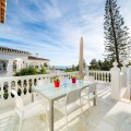 - LOCATION! Charming Detached Villa in El Chaparral - Front Line Golf Location Discover this stunning detached villa, nestled in the most sought-after street of El Chaparral, just a 5 minute drive from the bustling La Cala de Mijas. Boasting a prime front line golf location, this exquisite home offers a perfect blend of elegance and comfort. Spread across two levels, the villa features four spacious bedrooms, including a master suite with an ensuite bathroom, and three additional double bedrooms and three bathrooms on the ground level. There is an additional benefit of underfloor heating in the bathrooms and solar panels for heating water at the property. The heart of the home is a large modern kitchen with a centre island, ideal for culinary enthusiasts, complemented by a separate utility room. The lounge and dining room provide ample space for entertaining, while the sunny south-facing terrace offers breathtaking sea views. Outside, the property showcases a large frontage surrounded by greenery with a stone fountain as a centre piece, a private swimming pool with capacity of 48 m3 with an adjacent washroom / toilet, a large double garage and additional parking on the drive. There is also a large store room. With a plot size of 1,000 m² and 300 m² of constructed area, this villa is a rare find in the area. Built in 1986 and maintained in good condition, it includes fitted wardrobes, a storeroom, and modern heating and air conditioning throughout. Don't miss this opportunity to own a piece of paradise with unparalleled golf and sea views.