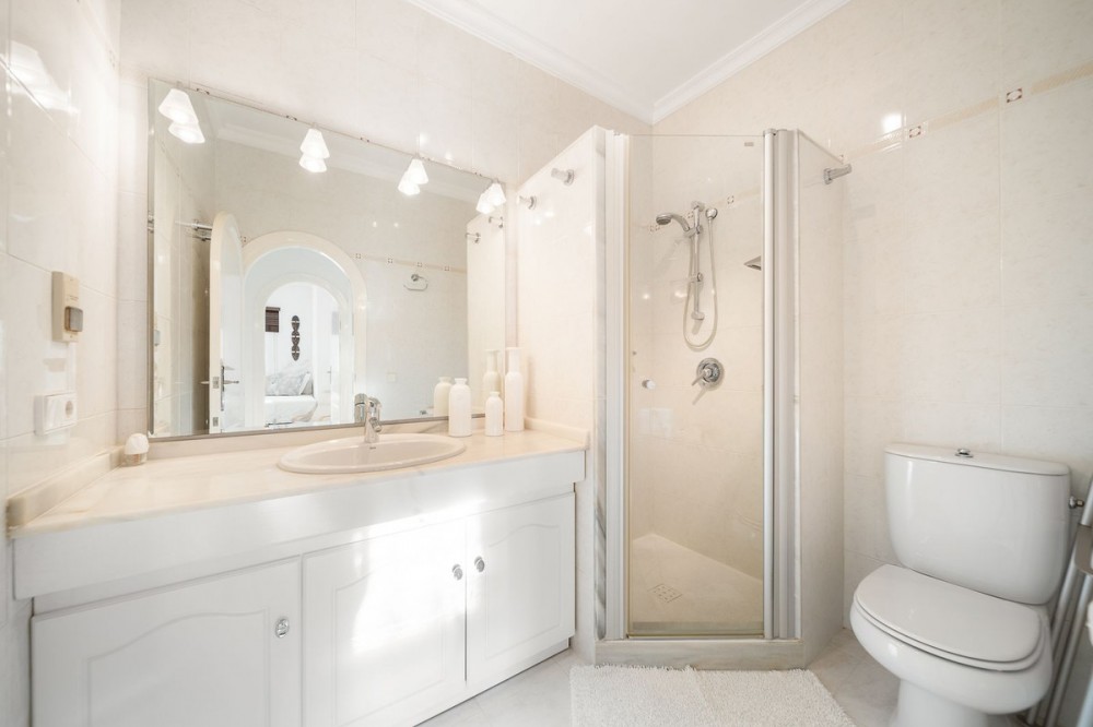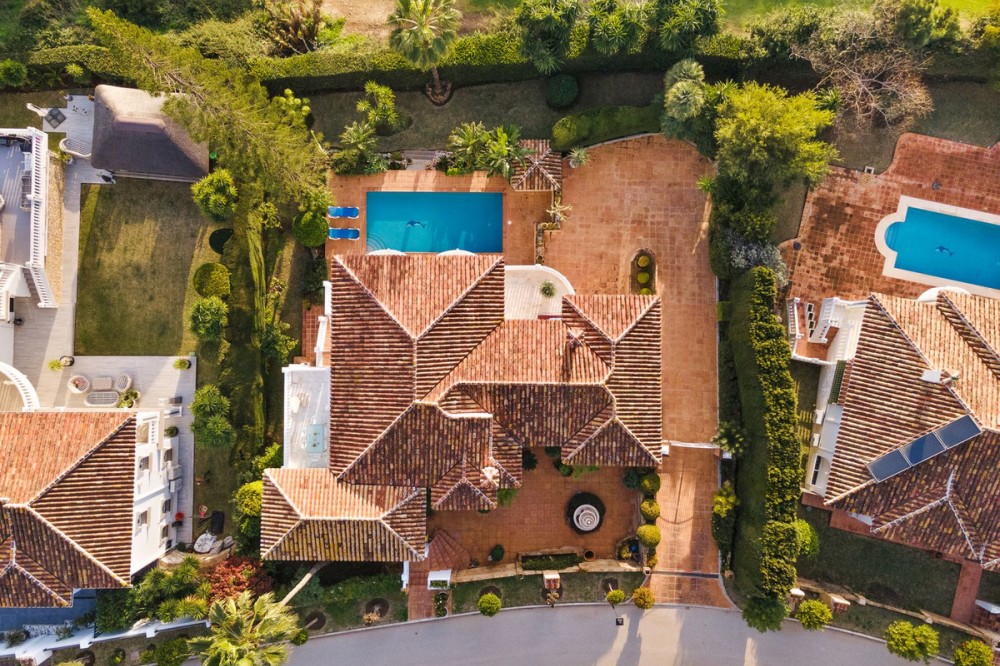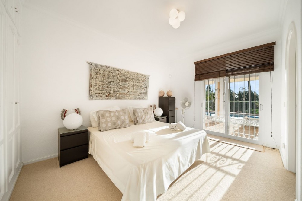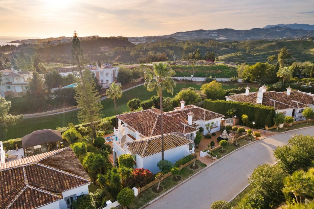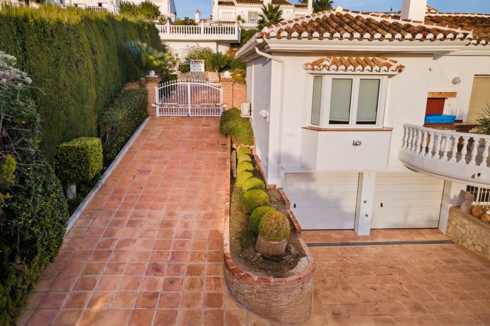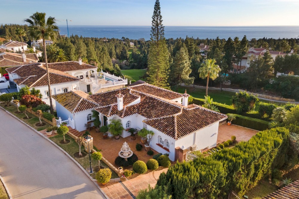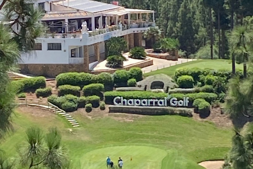 - LOCATION! Charming Detached Villa in El Chaparral - Front Line Golf Location Discover this stunning detached villa, nestled in the most sought-after street of El Chaparral, just a 5 minute drive from the bustling La Cala de Mijas. Boasting a prime front line golf location, this exquisite home offers a perfect blend of elegance and comfort. Spread across two levels, the villa features four spacious bedrooms, including a master suite with an ensuite bathroom, and three additional double bedrooms and three bathrooms on the ground level. There is an additional benefit of underfloor heating in the bathrooms and solar panels for heating water at the property. The heart of the home is a large modern kitchen with a centre island, ideal for culinary enthusiasts, complemented by a separate utility room. The lounge and dining room provide ample space for entertaining, while the sunny south-facing terrace offers breathtaking sea views. Outside, the property showcases a large frontage surrounded by greenery with a stone fountain as a centre piece, a private swimming pool with capacity of 48 m3 with an adjacent washroom / toilet, a large double garage and additional parking on the drive. There is also a large store room. With a plot size of 1,000 m² and 300 m² of constructed area, this villa is a rare find in the area. Built in 1986 and maintained in good condition, it includes fitted wardrobes, a storeroom, and modern heating and air conditioning throughout. Don't miss this opportunity to own a piece of paradise with unparalleled golf and sea views.