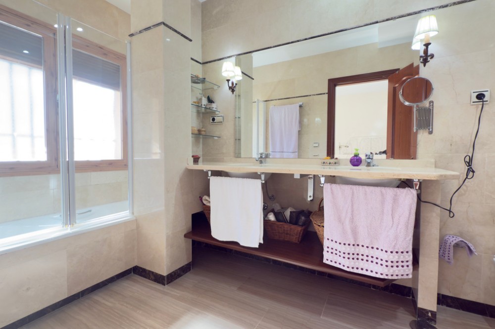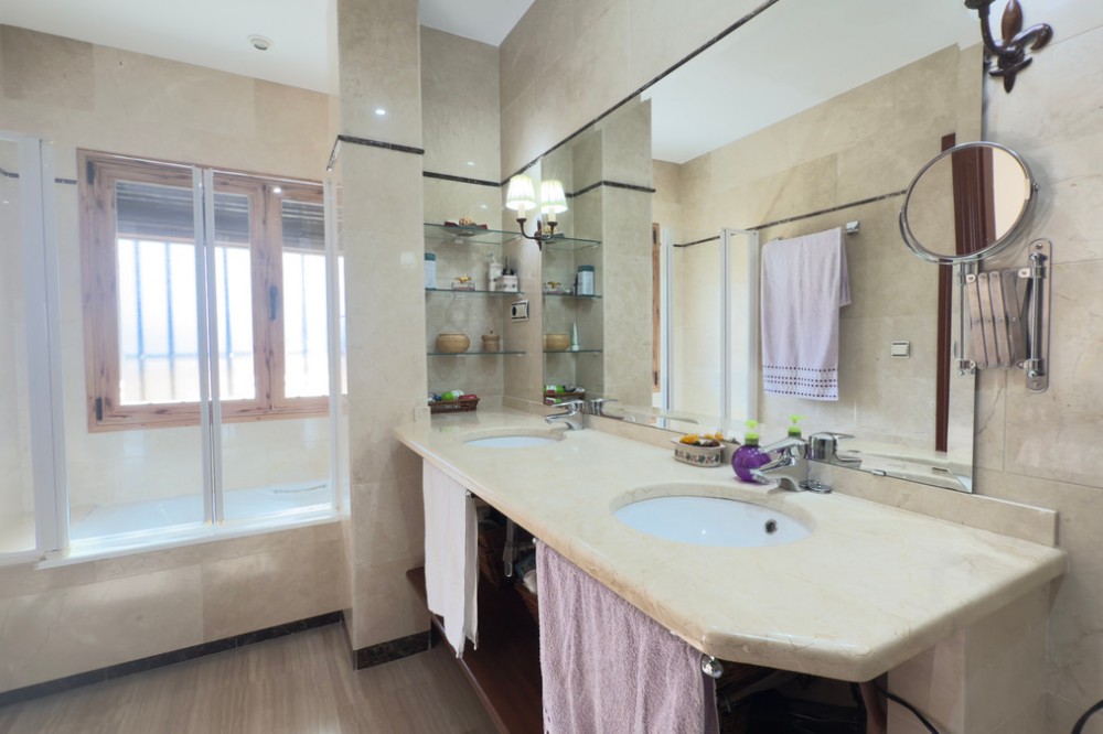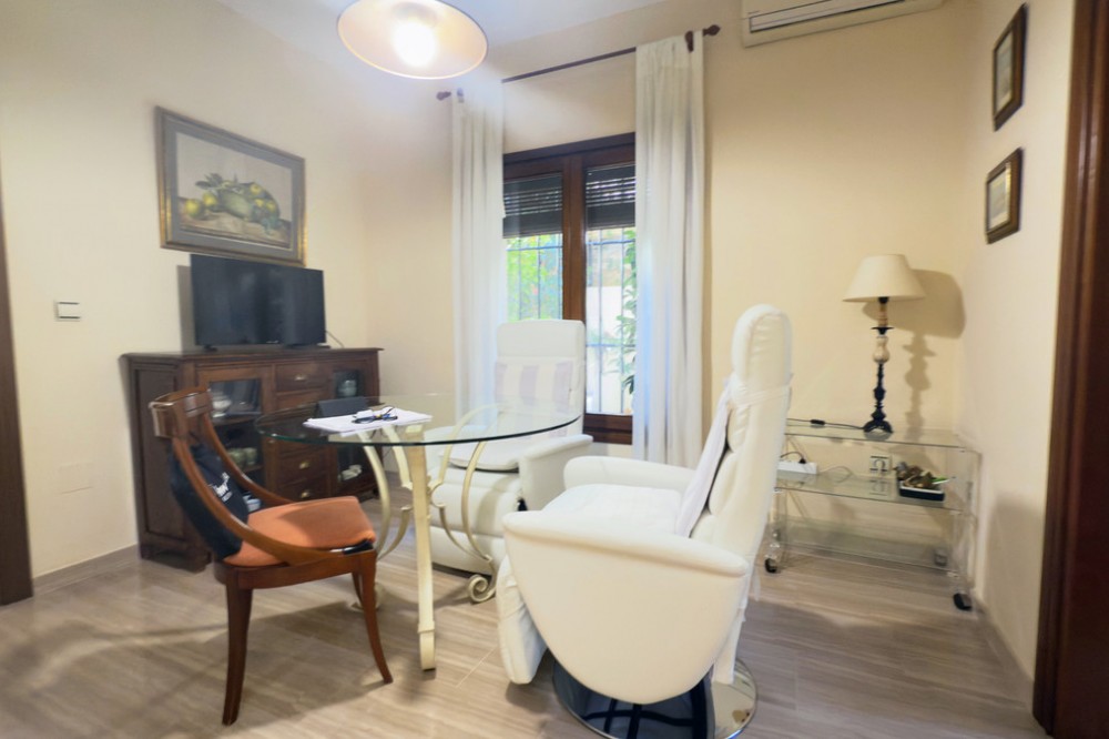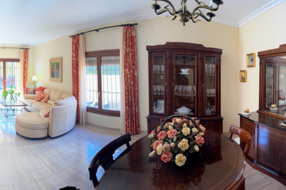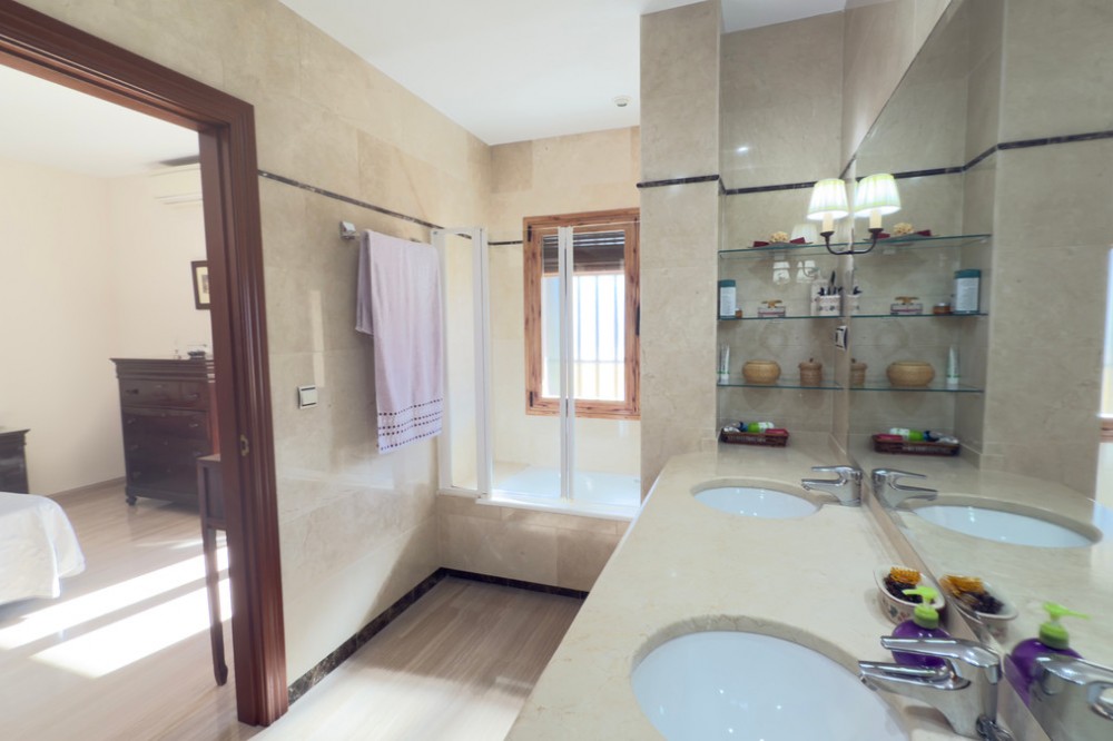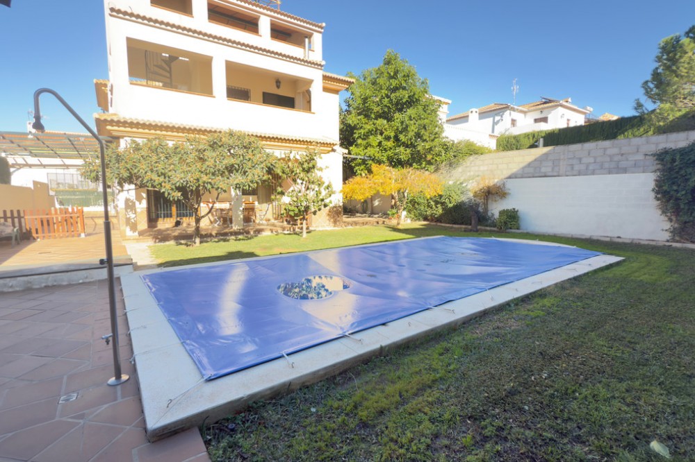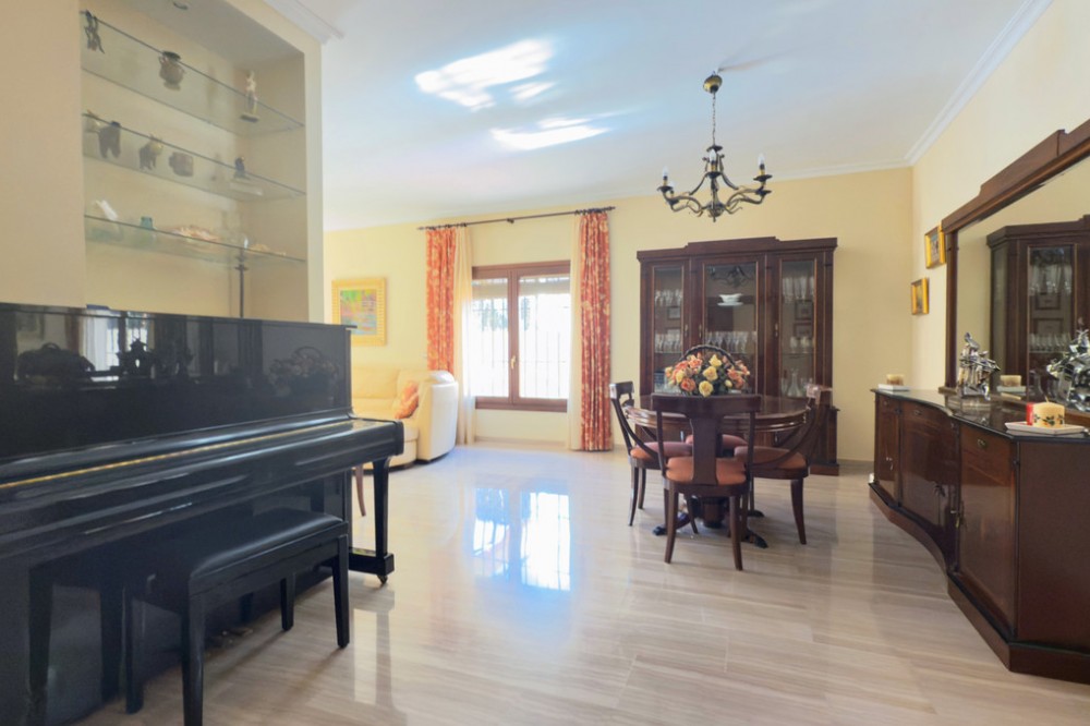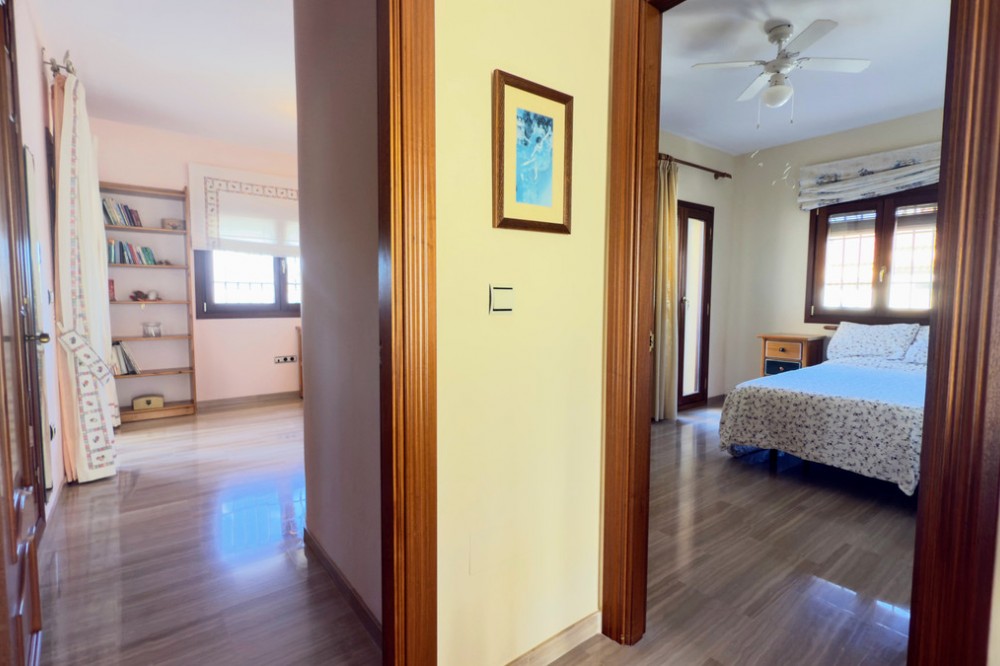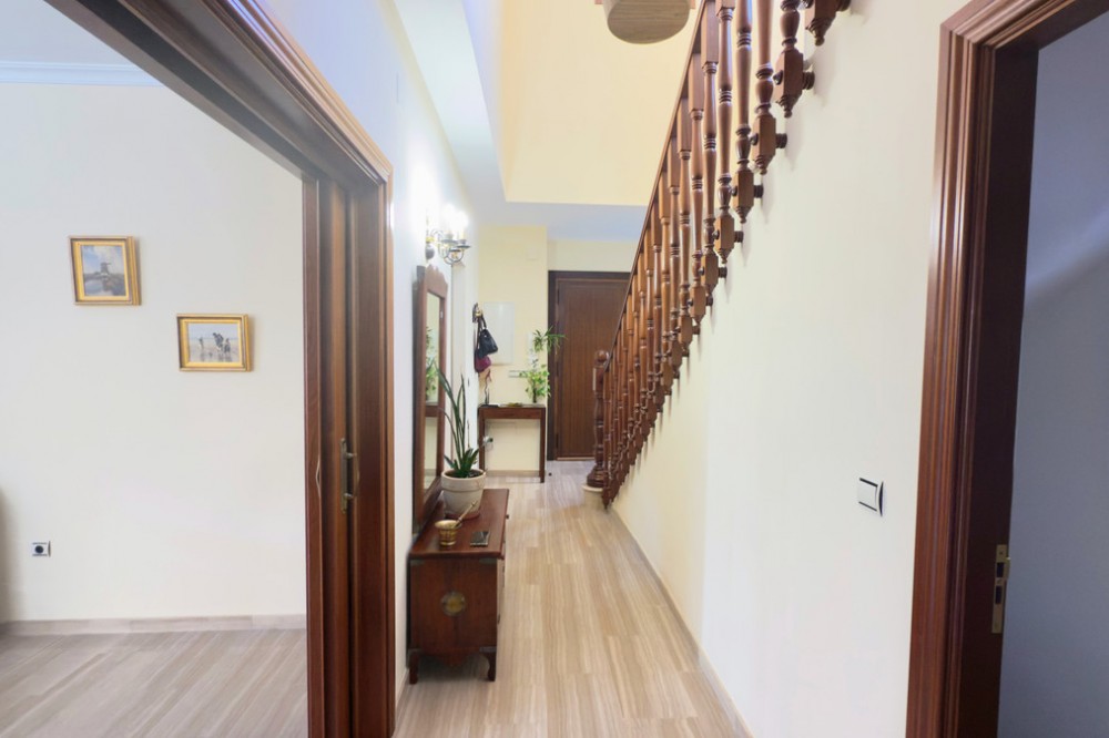 - Detached House or Villa for Sale Calle Campoamor Santa Catalina Antequera Málaga.Welcome to a jewel in the heart of Andalucia in the town of Antequera; a dream detached house located in the prestigious urbanisation of Santa Catalina. This south facing property has been designed for those who are looking for a home that invites you to enjoy every moment and live as a family. A Home Designed for Comfort and Elegance surrounded by a beautifully landscaped garden, the property boasts a stunning swimming pool, terrace and a lovely barbecue area, ideal for enjoying gatherings or lazy days in the sun. Thanks to its ideal south-facing orientation, the villa receives abundant sunlight while its various terraces offer views of the garden and mountains. This 311M2 built house has a plot area of 505M2 according to the land registry and is distributed as follows: Semi-basement floor destined to garage for several vehicles, Lounge-Cinema and Gymnasium. Main floor: - Welcoming entrance porch. Dining room: a spacious lounge with TV and sitting area with direct access to the garden and swimming pool.. Fully equipped kitchen with modern appliances to satisfy all culinary needs.. First Floor :. 4 Bedrooms, the master bedroom includes an en-suite bathroom with private dressing room and terrace. 3 full bathrooms. Top Floor: Roof Terrace with 360º views, panoramic city and mountain views.. COMFORTS : This exceptional property is equipped with modern amenities including :. Solar panels for sanitary water. Photovolaics Panels. Underfloor heating throughout the house (Serpegiante marble). IROCO wood (African origin). Air conditioning .. Fans ...etcThe house is sold unfurnished except for the kitchen and bathrooms.Don\'t miss this unique opportunity to own an Andalucian gem in the most desirable area of Antequera, Contact Us Today for more information or Viewing. An abbreviated information document is available. Costs: Taxes (ITP or IVA+AJD) + Notary and registry fees. MH1