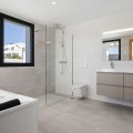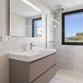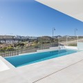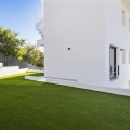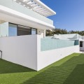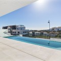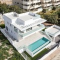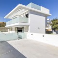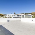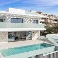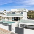 - SPACIOUS CONTEMPORARY VILLA IN TOP LOCATION! This beautiful villa is located only a short walk from the center of La Cala de Mijas, a unique villa just newly built. With its 6 spacious bedrooms with fitted wardrobes and five luxurious bathrooms it is definitely an amazing property which you do not often find that close to the center of La Cala. Upon entering on the ground floor, you will find a beautiful spacious living room with a glass facade so that you have a lot of natural light. A beautiful open kitchen with spacious dining table makes this an area where you literally feel at home. The kitchen is equipped with all necessary built-in Bosch appliances. Next to the kitchen there is a storage room where the washing machine and dryer are, both Bosch as well. From the living room you can walk outside and you immediately have access to the swimming pool with an outdoor shower. Next to the swimming pool there is another 30m2 terrace. There are several electricity and water points on this terrace. From both the living room and the swimming pool you have an amazing view, on one side you will see the mountains and on the other side the ocean. On the same level you find a bedroom and bathroom, and the entire ground floor is equipped with underfloor heating. If you go upstairs, you will find three large bedrooms, all with beautiful fitted wardrobe and an en-suite bathrooms. The two bedrooms at the front of the house have sliding doors that open onto a terrace with once more beautiful views. Like the ground floor is also this floor equipped with underfloor heating. From the top floor you can go to the roof terrace, this exceptionally large terrace has a beautiful sea view. Unique is the basement of the house, because here you find two more bedrooms and a bathroom. And not just that, a huge relaxation area has also been created here, there is enough space to create a gym and a large television room for example. Outside you notice the beautifully landscaped garden that surrounds the house, in which many beautiful materials have been used and very high-quality artificial grass so that the garden is easy to maintain. There are many places around the house where you can relax in silence, completely privately. On the street side there is an entrance gate for the cars, there is room for three cars that can all be parked on private property. If you are looking for a modern, spacious villa close to La Cala center, then this is your chance! A visit is definitely worth it!!