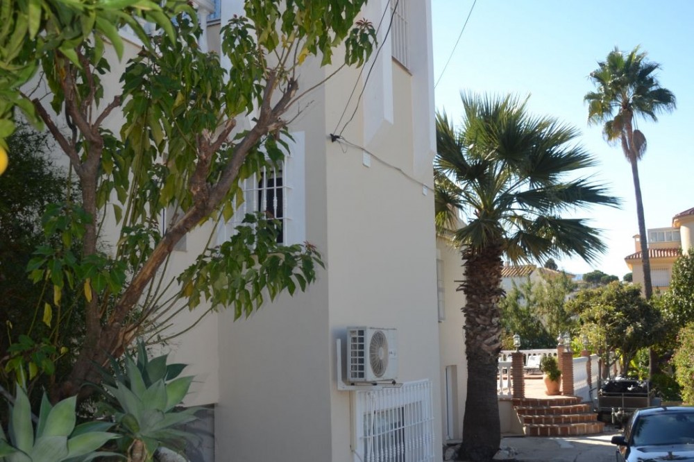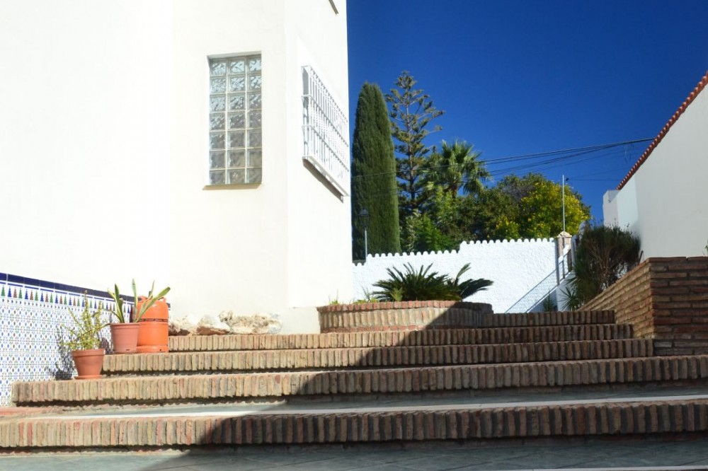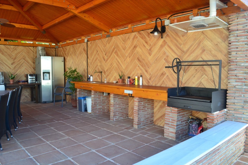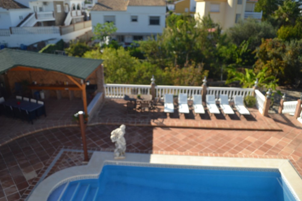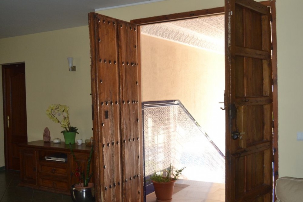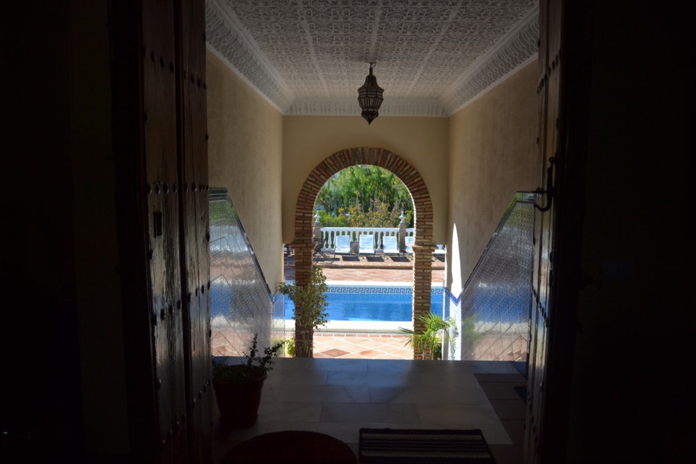 - Multi functional villa for sale in Alhaurin de la Torre, area El Lagar, For sale this villa which could suit several purposes; You can live in here with a big family as it also has an independent apartment below or use that for a business. It has a total of 6 bedrooms, 5 bathrooms, 2 kitchens, lots of storage, several terraces divided over 3 floors. The villa has of 425m2 constructed. You access the main house via a beautiful old door into the entrance hall. To the right you have a nice size kitchen with laundry / pantry area and a bathroom. In the living area there is a good functioning fire place, lots of windows, an via another antique door you can access to the back of the property where the swimming and entertainment areas are. From the living room you have an office / bedroom at the back and to the left you have a large bedroom with wall to wall wardrobes. Upstairs you have 3 bedrooms - all with ensuite bathrooms and balconies with great views to the surroundings. The master bedroom takes half of the area upstairs, with a large room, terrace, walk in wardrobe and huge bathroom with jacuzzi bath and seperate shower. There is a fantastic entertainment area by the pool with an outside kitchen, dining area and an outside toilet. Underneath the house there is an independant basement with a gym and fitness area with air conditioning, a kitchen with a bar and pool table, 2 bedrooms and one bathroom. This can be converted in an own office or business to work from home. The plot size is 1219 m2 and has a good sized salt water swimming pool. The house is totally private as it is surrounded by a wall. The surrounds of the property is a well kept garden with lemon, orange, banana, nispero, grape trees and plenty of parking. The owner has installed a new solar panel system of more than 30.000 euro's and no energy contract needed anymore. It is located in Alhaurin de la Torre next to the fantastic Jardin Oriental. Very nice and quiet area. Only 5 min walk to shops and bars and just a 10 minute drive from the international airport of Malaga and the beaches of the Costa del Sol.