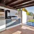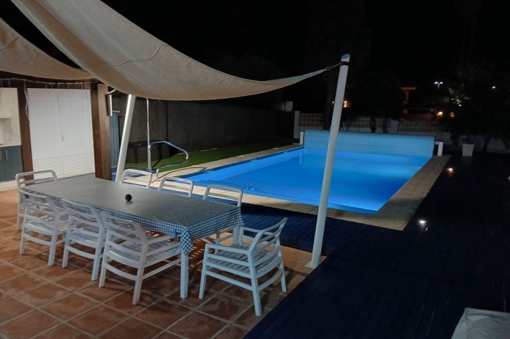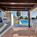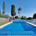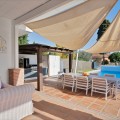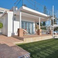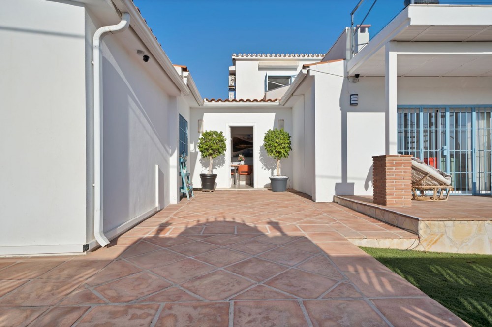 • We are proud to represent this exclusive elegant and modern villa located beachside in the desirable area of San Pedro – The location is ideally situated within walking distance to the centre of San Pedro, which is full of fabulous bars & restaurants, the promenade & beach is also within walking distance, so no need for a car! – the area is residential so very peaceful and safe. The villa is built on a generous plot of 950m2 which has a well-maintained garden that includes a variety of fruit trees, planters & shrubs. There is a large free to form coverable swimming pool, outdoor shower and there is a very spacious area for entertaining and dining outdoors which has a separate build in BBQ, wine fridge and built-in sink unit. There is a spiral staircase where you can access the upper sun roof terrace to enjoy and capture the most amazing sunsets from here. The property consists of 4 bedrooms and 5 bathrooms, on entering through the main door there is a very bright and spacious open plan living and dining area and kitchen which is large and has a range of base and wall mounted units and integrated appliances. The kitchen has an area for dining and a separate utility room, which houses the washing machine, dryer and boiler. There are a further 3 more spacious bedrooms which are all en-suite – Guests can enjoy a separate WC/cloakroom on this same level – an inner corridor leads to adjoining covered garage and from the garage there is a security door leading onto to a further private terrace/Japanese garden which has been decked for ease of maintenance. Stairs lead from the kitchen up to the Master bedroom which has an en-suite bathroom complete with stand along shower unit, W.C and sink unit – double glass patio doors lead onto an outdoor west facing terrace which captures the most amazing sunsets, and a view to the sea and mountains. All rooms have air conditioning units which are hot & cold they also enjoy the added benefit of oil-based radiators in all rooms. Solar panels were recently installed and 67% of electricity comes from those panels. All windows have automatic shutter blinds and there are also iron wreckers fitted.