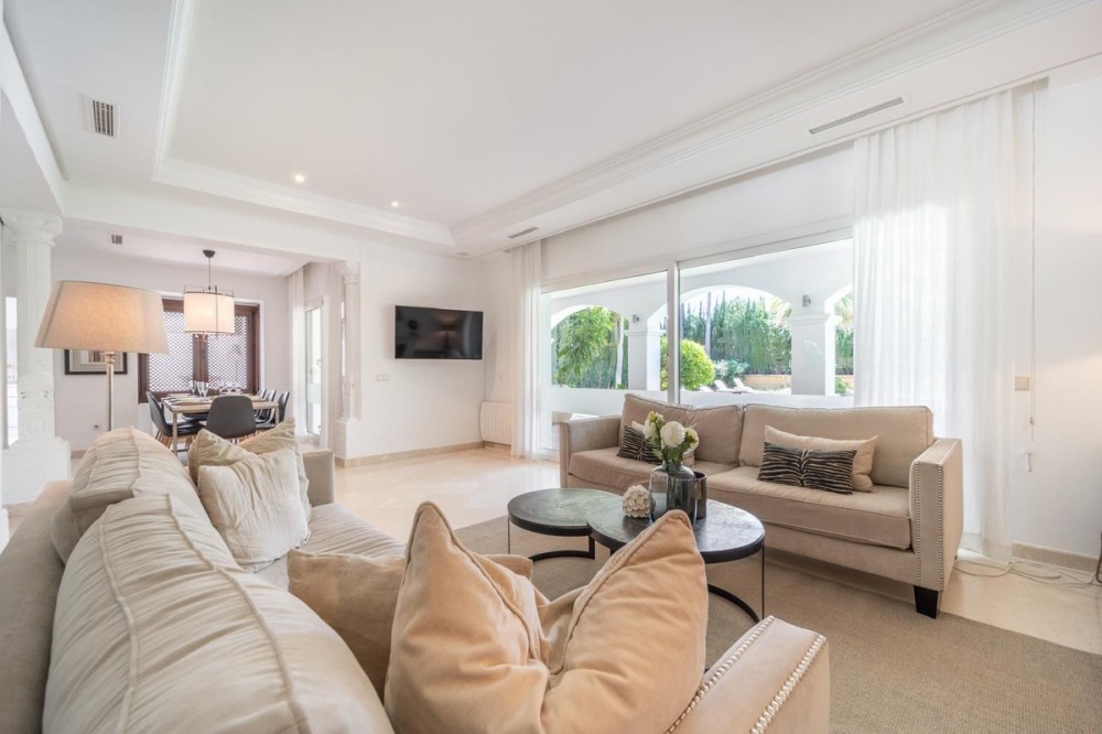 • Een uitstekende kans om een prachtig familiehuis te bezitten in Nueva Andalucia. Goed genoeg om in te trekken... fantastisch voor hervormingen. Hier is een prachtige villa met 5 slaapkamers in Marbella die qua afmetingen en ontwerp al zeer aantrekkelijk is en zich uitstekend leent voor een eenvoudige, maar grondige opknapbeurt. In het hart van Nueva Andalucia en op slechts 3 minuten rijden van Puerto Banús. 421m2 op een perceel van 931m2 HERVORM DE HEMEL Deze woning heeft een goede basis om te transformeren tot een eigentijdse en elegante Andalusische villa. De villa heeft een grote kelder met reeds twee slaapkamers met eigen badkamer, een woonkamer, een garage voor twee auto's... en er is nog een grote ruimte die kan worden opengebroken om daar beneden nog meer woonruimte te creëren. Een uitstekende kans voor iemand die wil moderniseren zonder al te veel verbouwingen. De villa heeft een solide constructie en goede infrastructuur, en de modernisering kan vooral worden gezien als een herdefiniëring van de interieurruimtes en een eenvoudige cosmetische verbetering. Er zijn hier zoveel fantastische ruimtes om mee te werken. Een zeer groot overdekt terras met eethoek dat volledig geïntegreerd kan worden met de keuken... buiten en binnen vloeien samen voor een optimale woonervaring. Een grote kelderverdieping met reeds twee slaapkamers en badkamers, en de mogelijkheid om Engelse patio's toe te voegen. In deze voortdurend veranderende markt zijn er steeds minder echt goede kansen. Een uitstekende kans voor iemand die wil moderniseren zonder al te veel verbouwingen. De villa heeft een solide constructie en goede infrastructuur, en de modernisering kan vooral worden gezien als een herdefiniëring van de interieurruimtes en een eenvoudige cosmetische verbetering. En er is al een liftschacht geïnstalleerd. Een trap met dubbele hoogte en een mooie overloop met een groot rond raam. In deze voortdurend veranderende markt zijn er steeds minder echt goede kansen. Maar hier is een prachtige villa in Marbella die qua afmetingen en ontwerp al heel aantrekkelijk is en zich uitstekend leent voor een grondige renovatie. Deze Andalusische villa is gebouwd met oog voor proportie en biedt een krachtig en ruim interieur, met meerdere terrassen, zowel open als overdekt, waardoor de ruimtes optimaal benut kunnen worden om te genieten van het buitenleven waar velen van ons naar verlangen. De villa is vanaf straatniveau bereikbaar via automatische poorten. Vanuit hier is er een ruime, afgesloten garage met plaats voor minstens twee auto's en extra parkeerruimte op de oprit. Om de voordeur van deze villa te bereiken, moet men de zeer elegante entree beklimmen via een trap aan de rechterkant van het pand. Via de garage is er echter ook toegang tot de benedenverdieping, waar zich al een liftschacht bevindt.