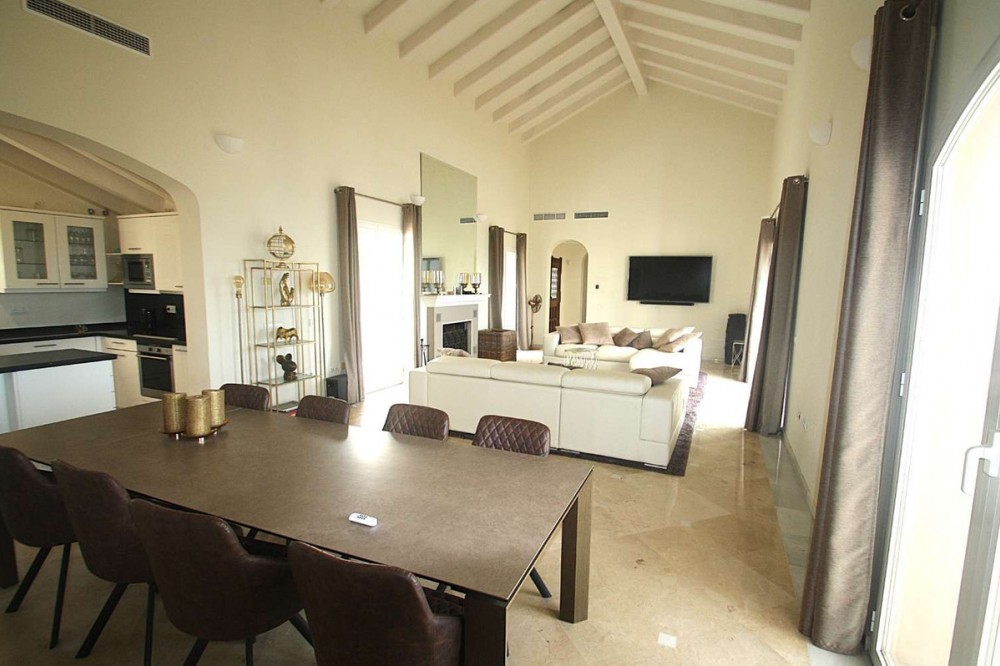 - Welcome to your new home in the exclusive Sierra Blanca Country Club of Istán! This stunning 223m² detached villa offers you an unrivalled living experience with panoramic views of the Istán reservoir, the majestic mountains and the sparkling sea. With a plot of 1,030m², this property is an oasis of tranquillity in a gated community, ideal for family enjoyment. The house has four spacious bedrooms, each with its own en-suite bathroom, ensuring privacy and comfort for all members of the household. The large living room with high ceilings and the open-style kitchen create a perfect space for entertaining and conviviality. In addition, it has built-in wardrobes to maximise storage. The exterior is equally impressive, with a well-kept garden and a private swimming pool that invite you to relax in the sun. Facing south and west, you will enjoy natural light throughout the day. The property includes two parking spaces for your convenience. Located just 15 minutes from the beach and the vibrant centre of Marbella, and 45 minutes from Malaga International Airport, this house offers the perfect combination of privacy and accessibility. Don't miss the opportunity to live in this Mediterranean paradise. Come and see it and fall in love!