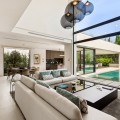 - This stunning villa is more than just a home - it’s an experience. Designed by the acclaimed architect Carlos Lamas, every inch of this residence has been carefully crafted to offer the perfect balance of style, comfort, and functionality. Set in the prestigious area of Nueva Andalucía, right next to Las Brisas Golf, this home enjoys the best of both worlds: complete tranquillity yet just a short stroll from vibrant restaurants, luxury boutiques, and essential amenities. From the moment you arrive, the villa captivates with its striking modern architecture and grand glass doorway, framed by floor-to-ceiling windows that flood the interiors with natural light. A magnificent ancient olive tree stands proudly at the entrance, an elegant nod to the harmony between contemporary design and nature. Inside, the villa unfolds across 3 impeccably designed levels. On the main level, the master suite serves as a private sanctuary, featuring an elegant en-suite bathroom and direct access to the lush gardens and heated swimming pool. The living area is nothing short of spectacular, with a soaring double-height ceiling that enhances the sense of space and light. Flowing seamlessly into the state-of-the-art kitchen and dining area, this space is designed for both relaxation and entertaining. Step outside to a covered terrace with a barbecue and dining area—ideal for enjoying long Mediterranean evenings with family and friends. Upstairs, on the first floor, two generously sized en-suite bedrooms open onto private south-facing terraces, offering picturesque green views and an abundance of sunlight. The basement level is a world of its own—a haven for relaxation and entertainment. A stylish entertainment room with a pool table, a climate-controlled wine bodega for collectors, a fully equipped gym, a sauna, and a massage room provide the ultimate wellness experience. Additionally, two spacious en-suite bedrooms make this level perfect for guests or live-in staff. Every detail of this home has been carefully considered, from the high-end finishes to the seamless indoor-outdoor flow that defines luxurious Marbella living. This villa isn’t just a property—it’s a lifestyle, offering a rare combination of elegance, privacy, and proximity to everything you could need. A truly extraordinary opportunity to own a one-of-a-kind residence in Marbella’s prestigious Golf Valley.