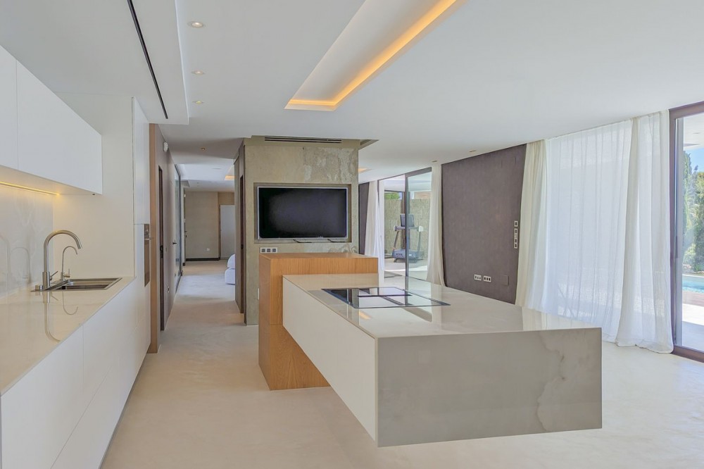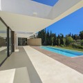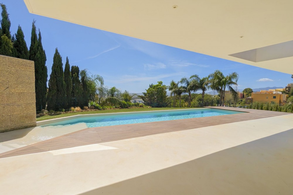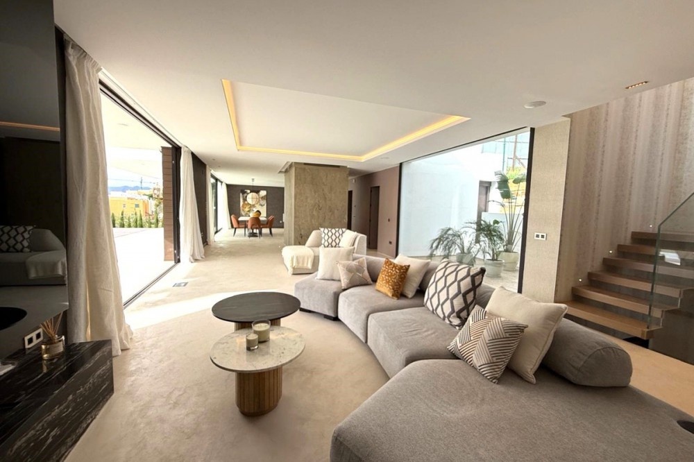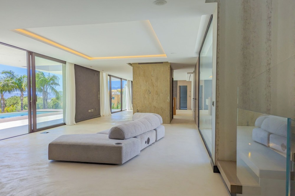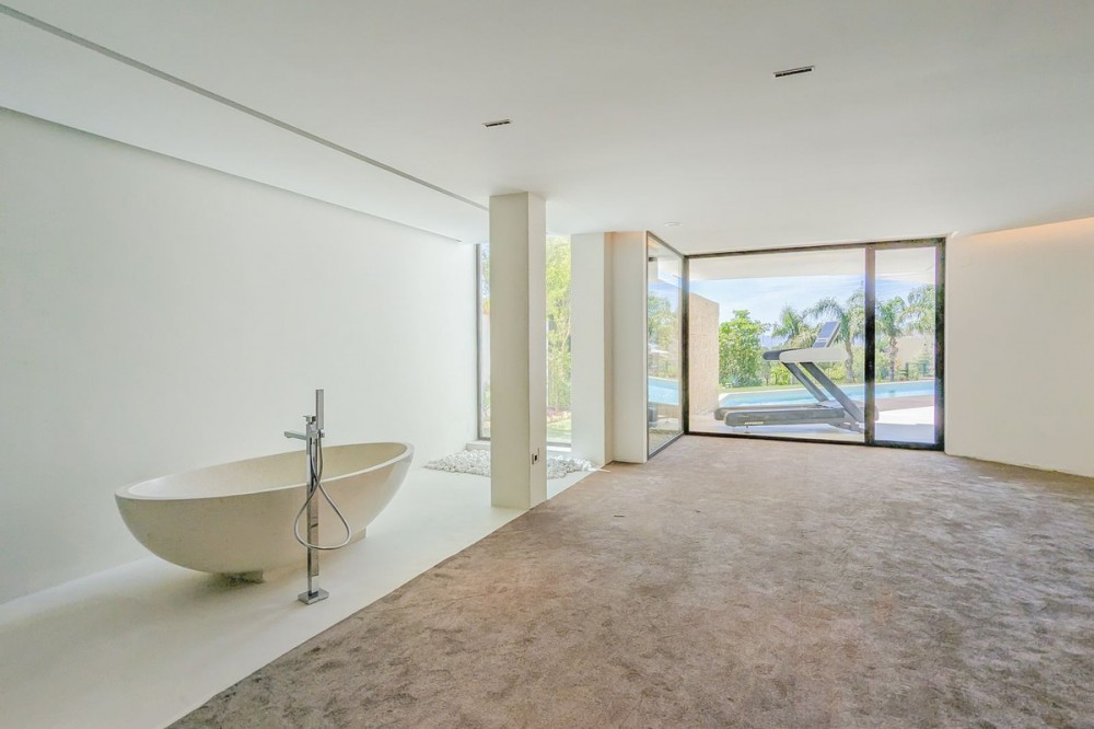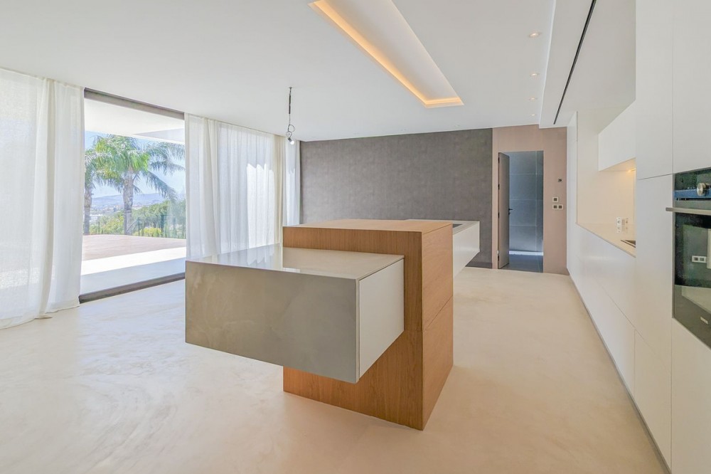 - Wonderful brand new luxury villa in one of the most sought-after areas of Benalmádena, in the heart of the Costa del Sol. The real star of the show is the exterior. Enjoy the magnificent sun terrace, designed for leisure and relaxation, with an impressive swimming pool with a waterfall that blends in with the blue of the sea and the green of the vegetation. Everything is brand new, in one of the most sought-after areas of Benalmádena (Higuerón) in the heart of the Costa del Sol. It has 3 bedrooms, 3 bathrooms, a guest toilet, a huge living room with a fireplace, a top-of-the-range kitchen and large windows with panoramic views. Gym. Some of the additional premium features: Solar panels, underfloor heating throughout the house, air conditioning/heating with airzone. The property boasts exceptional qualities. Huge living room with fireplace opening onto a 150 m² porch, where you can contemplate an oasis of peace, tranquillity and sea views. Kitchen open to the living room with top-of-the-range appliances, laundry area. The master bedroom has its own designer en-suite bathroom and an unrivalled dressing room. Everything straight out of a fairy tale.