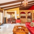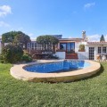 • Located in the established urbanization of El Faro, just a few meters from the beach and situated on one of the best plots, offering you stunning panoramic views of the sea and the mountains, is this charming Andalusian-style villa. The property exudes warmth and character, with marble floors, exposed wooden beams and brick arches that enhance its cozy atmosphere. This single-storey villa offers a spacious and functional layout with multiple indoor and outdoor living areas. The carefully landscaped garden is a true private oasis with a swimming pool, several shaded seating areas and lush vegetation that reinforces the feeling of tranquility. Whether enjoying the sun by the pool or relaxing in a cozy corner with panoramic views, each outdoor space is designed for rest and entertainment. Inside, the open-concept layout allows for a fluid connection between spaces, where natural light floods the living room through large windows, with robotic electric blinds, to further enhance the experience. The living area is light and airy, with direct access to a terrace overlooking the beautiful garden and sea views. The feeling of warmth is breathed by fusing the exposed wooden beams with a fireplace, ideal for creating cosy moments. The semi-independent kitchen, with a direct connection to both the living room and dining room makes it perfect for both daily life and entertaining. The villa includes 3 well-proportioned bedrooms within the main house, with plenty of natural light and views of the circulating vegetation. The fourth room is independent with direct access to the garden, which improves the connection with the outside and is ideal for hosting guests who want a little more privacy. Other amenities include 2 underground parking spaces, several storage rooms, solar panels for hot water and automatic robotic blinds. This villa is ideally located within walking distance of the beach, 5 minutes from both Fuengirola and La Cala de Mijas, providing you with supermarkets, golf courses, schools and restaurants. This makes it an excellent choice for those looking for a comfortable coastal home with privacy, charm and comfort.
