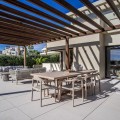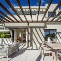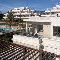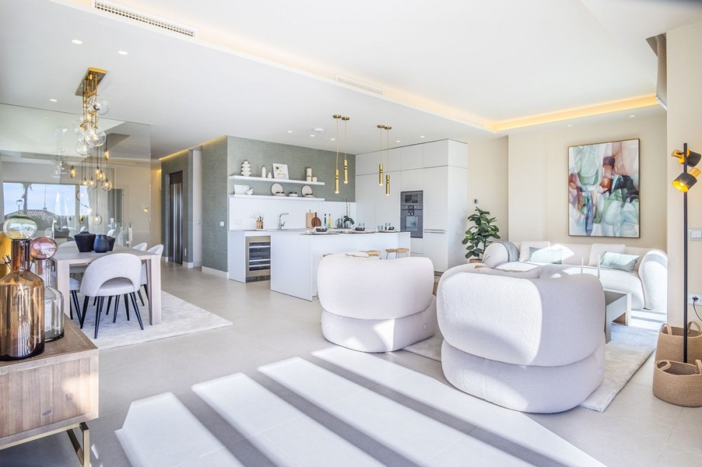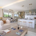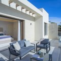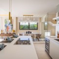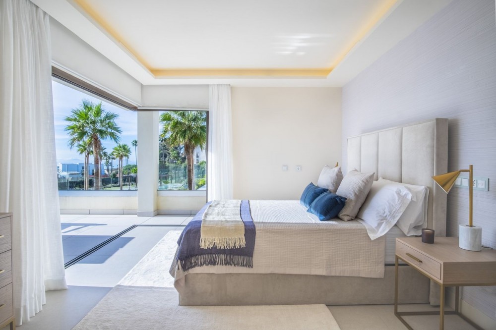 - Deze moderne villa van topkwaliteit is gelegen in Velaya Gardens, een prestigieuze woonwijk direct aan het strand aan de New Golden Mile, op korte afstand van het centrum van Estepona via de nieuwe Paseo. Het pand staat op een perceel van 884 m2, met een bebouwde oppervlakte van 371 m2 plus 146 m2 aan terrassen, en biedt ruim en elegant woongenot. De villa is ontworpen met hoogwaardige afwerkingen en beschikt over een grote open woonruimte en een volledig ingerichte Bulthaup-keuken met Gaggenau-apparatuur. De hoofdslaapkamer beschikt over een eigen badkamer en een kleedruimte, terwijl een van de gastenslaapkamers ook een eigen badkamer heeft. Twee extra gastenslaapkamers delen een badkamer. De villa is op het zuidwesten georiënteerd, waardoor er optimaal gebruik wordt gemaakt van natuurlijk licht en uitzicht op zee. Er is directe toegang tot de overdekte en open terrassen, met een privétuin en zwembad. Extra voorzieningen zijn onder andere een lift naar alle verdiepingen, vloerverwarming, airconditioning met een energiezuinig aerothermisch systeem en drie garageplaatsen met een aparte berging. De woning wordt volledig gemeubileerd verkocht en biedt een kant-en-klare oplossing op een toplocatie aan het strand.