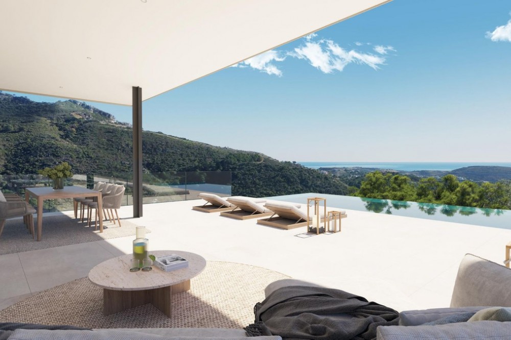 - Horizon 1 is the first of a truly remarkable collection of contemporary villas from renowned Belgian architect, Gie Wollaert, already responsible for the design of some of the finest properties on the Costa del Sol. This 'hanging house' will be built into the landscape of Monte Mayor, an area of outstanding natural beauty, with on-site bar/café and convenience store, and all protected by 24 hour security - a haven for those discerning buyers seeking peace, privacy, space and views. The large plot of 3.800 m2 will be home to a stunning villa with an elegant and simple aesthetic, designed with ease of use in mind, but also taking full advantage of the sea and mountain views. The villa will comprise of a lavish open-plan living space of 119m2, which leads directly to the terraces and the dramatic double-edged infinity swimming pool. On this main level will also be a utility room and storage area, as well as a beautiful courtyard garden. The lower level will house 4 en-suite bedrooms, plus an extra room which has been designed for use as an office, but which could easily be utilised as a 5th bedroom. Other features of this home are the optional 39 m2 space which could be used as a gym, yoga studio, or even a further bedroom. There is also a double garage and an optional elevator. Of course, as you would expect in a house of this standard, specifications include Aerotherm air conditioning, underfloor heating throughout, and luxury bathrooms and kitchen, which will feature appliances by Miele. This unique home will be completed within 9-10 months of reservation, due to its unique off-site construction process. With likely uplift in value of around 20% at completion, this property is likely to be extremely popular with investment-minded homebuyers.