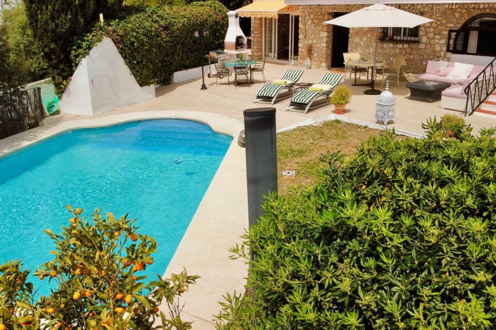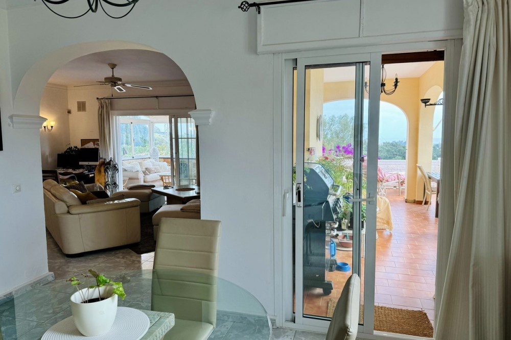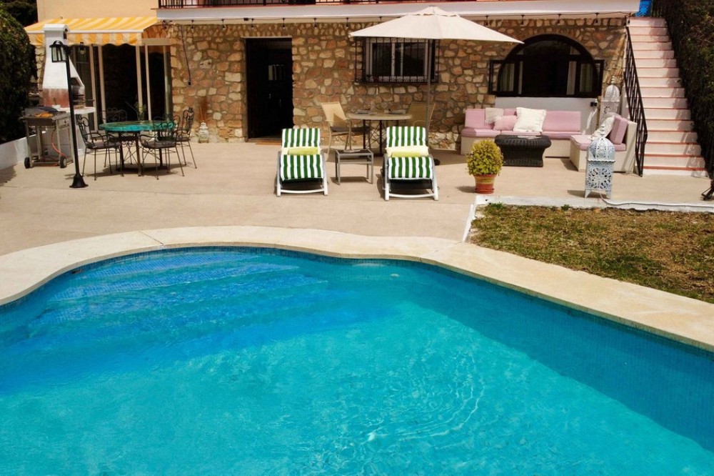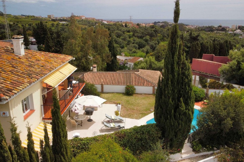 - Welcome to this detached villa located in the highly sought-after area of Mijas, offering breathtaking views of sea and mountain…an enviable location, and a multitude of desirable features. Situated on a tranquil urbanization, this property spans across two floors, effectively comprising two separate houses. Notably, one of the houses is registered as a holiday rental, boasting an up-to-date license and a proven track record of generating substantial income annually.With a total area of 320 m², this villa offers ample space for comfortable living. The property boasts six bedrooms and five bathrooms, ensuring plenty of room for residents and guests alike. The well-designed layout includes fitted wardrobes in each bedroom, providing practical storage solutions.The villa sits on a generous land plot of 858 m², allowing for a beautifully landscaped garden that perfectly complements the tranquil surroundings. You can bask in the glorious Mediterranean climate and entertain guests on the terrace or balcony, both offering stunning panoramic views that stretch as far as the eye can see.Parking will never be a concern, as this property includes a dedicated parking space. The villa, in good condition since its construction in 1970, also features a storeroom to accommodate your belongings conveniently.As you explore the property, you'll discover a south, east, and west orientation, allowing abundant natural light to flood the living spaces throughout the day. The villa also offers individual heating for year-round comfort.Undoubtedly, one of the highlights of this villa is the inviting swimming pool, offering the perfect oasis for relaxation and recreation. Imagine taking a refreshing dip on a warm summer's day or simply unwinding poolside while enjoying the stunning surroundings.This magnificent villa in Mijas presents a unique opportunity to own a property that combines both a luxurious residential dwelling and a profitable holiday rental business. Whether you're seeking an exquisite home for personal enjoyment or a wise investment, this property fulfils both aspirations.Don't miss out on this exceptional opportunity. Embrace a lifestyle defined by magnificent views, a serene ambience, and the potential for substantial income. Contact us today to arrange a viewing and secure your dream villa in Mijas.