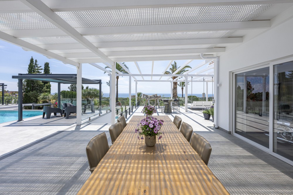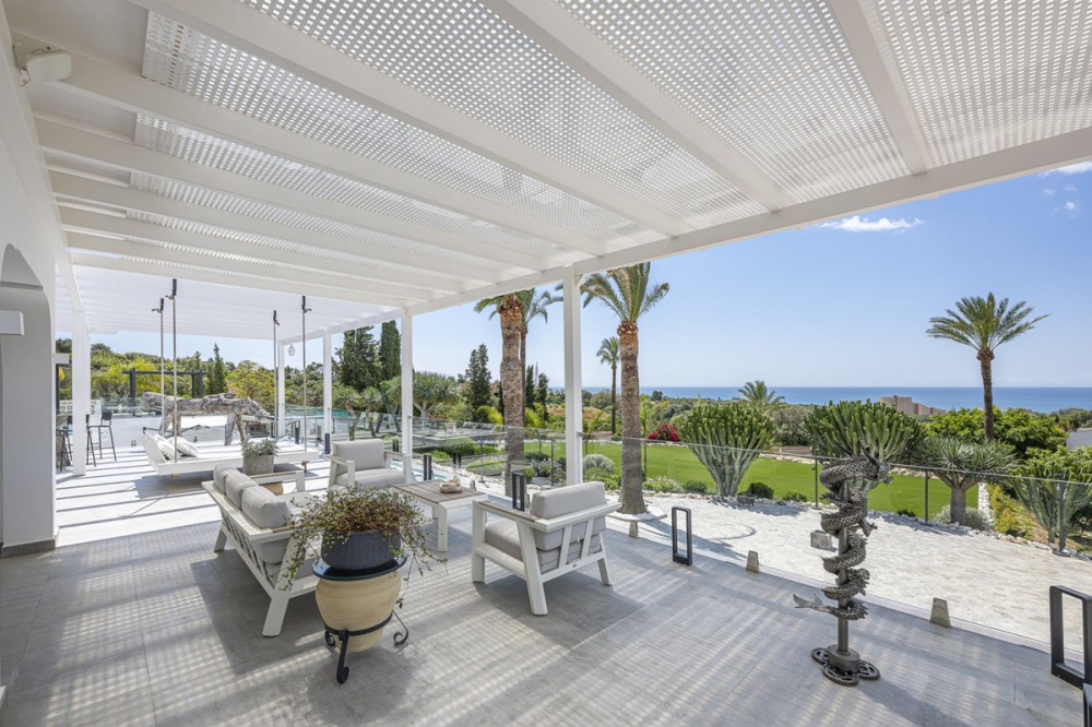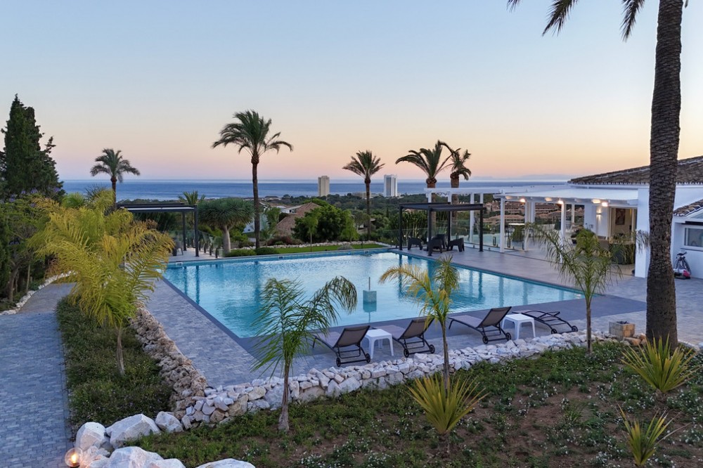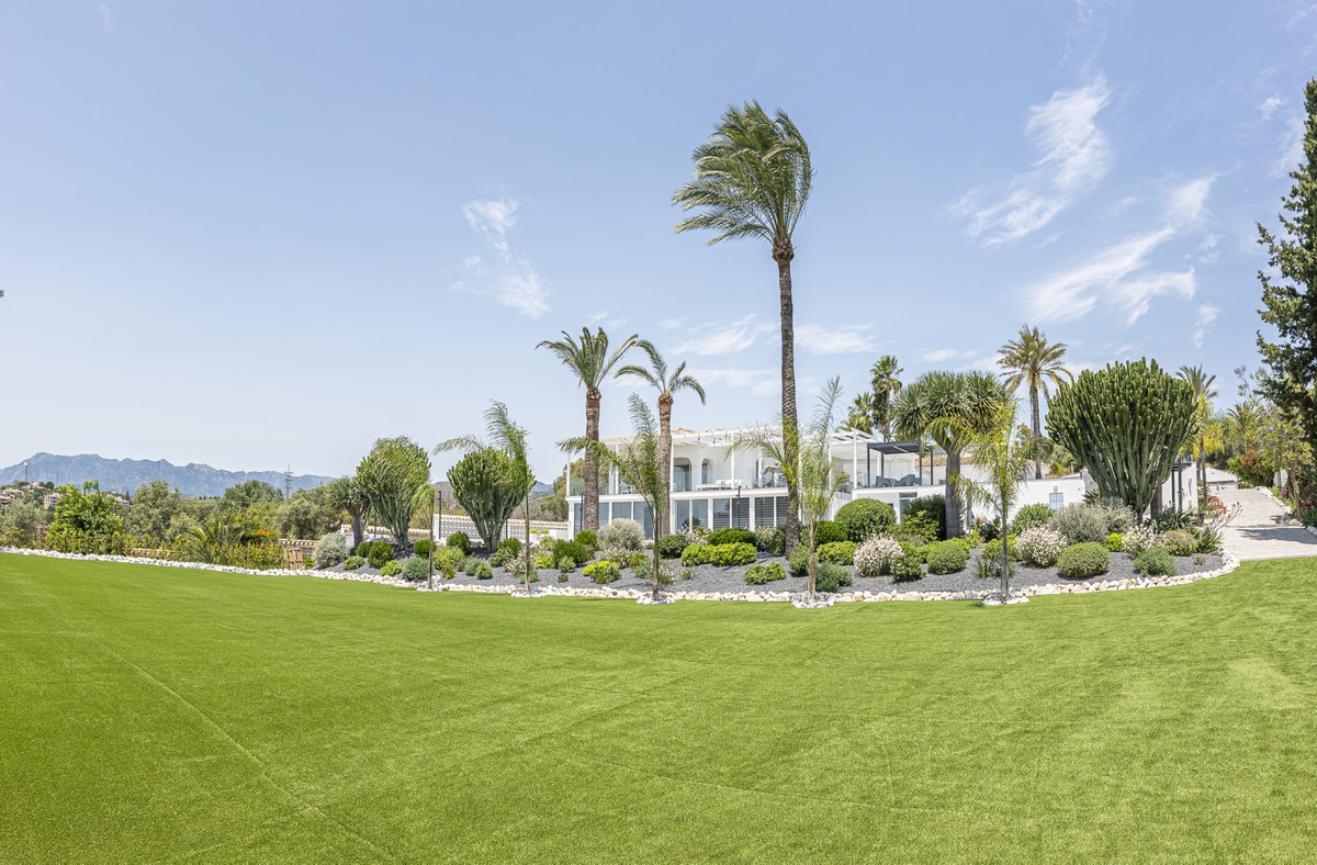 - Set on two generous plots totalling 6.128 m², this private and peaceful luxury villa offers a rare blend of modern Mediterranean style and natural beauty in Elviria, Marbella East. Surrounded by its own unspoilt land on one side, the property enjoys exceptional privacy, space and uninterrupted views. The home is situated on one level, a unique find in this sought-after area, offering comfort and easy living. Just minutes from a local commercial centre and the A-7 coast road, the location is ideal for reaching Marbella, La Cañada shopping centre, international schools and the coast. Golf courses, hiking trails, and water sports are also nearby, adding to the appeal of the lifestyle. Inside, the villa feels bright, open and welcoming. The heart of the home is the spacious living room, designed with floor-to-ceiling glass doors that open directly onto the terrace, framing fantastic views of the sea and surrounding greenery. Natural light floods in from all angles, creating a warm and inviting atmosphere. The contemporary kitchen with breakfast area flows naturally into this space, making it ideal for family life and entertaining. There are four deluxe bedrooms, including a main suite with indoor and outdoor showers. What makes this property stand out are the exceptional outdoor areas. The beautifully maintained garden surrounds the home, filled with quiet corners perfect for reading or relaxing. The terraces are extensive and varied, offering postcard-perfect views across the hills and out to the sea - the kind of views that never get old. Two stunning swimming pools enhance the appeal: one located at the main living level for easy access and another on a lower terrace, offering breathtaking views. Chill-out zones are dotted throughout the grounds, including a BBQ area, two outdoor dining spaces, a bar and both shaded and sunny spots to enjoy throughout the day. The villa’s lower pool level features a self-contained apartment with private access, offering three bedrooms, 2 bathrooms, and a shower, ideal for guests, extended family, or home office. Other features include solar panels with potential for expansion, underfloor heating, three garages, and a spacious driveway for up to five cars. Elviria is one of Marbella East's most desirable neighbourhoods, known for its natural beauty, established infrastructure and international community. Top schools, including the English International College and the German School, are close by. You'll also find shops, restaurants, sports clubs and some of the area's best beaches just minutes away. There is also potential to build a second home on the land without compromising the sea views, making this an even more versatile investment. Whether you're looking for a stylish family home, a private retreat or a prime Costa del Sol property with space to grow, this villa delivers on every level. All property information provided comes directly from the owner. The listing agent acts solely as an intermediary and cannot guarantee the accuracy or completeness of these details. Prospective buyers are encouraged to conduct their own due diligence to verify important information. Thank you for your understanding.