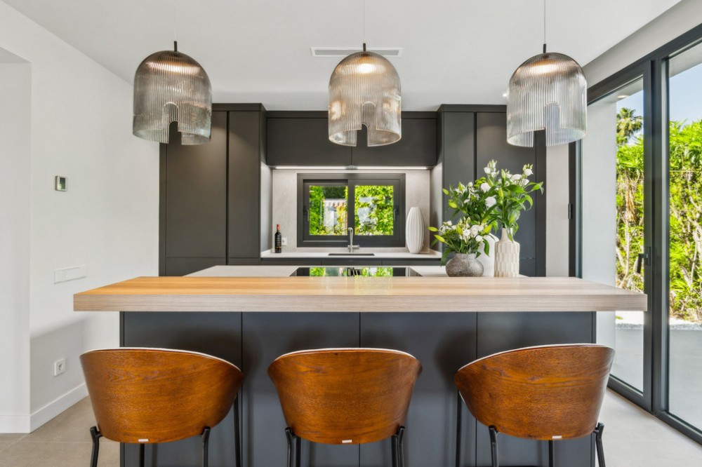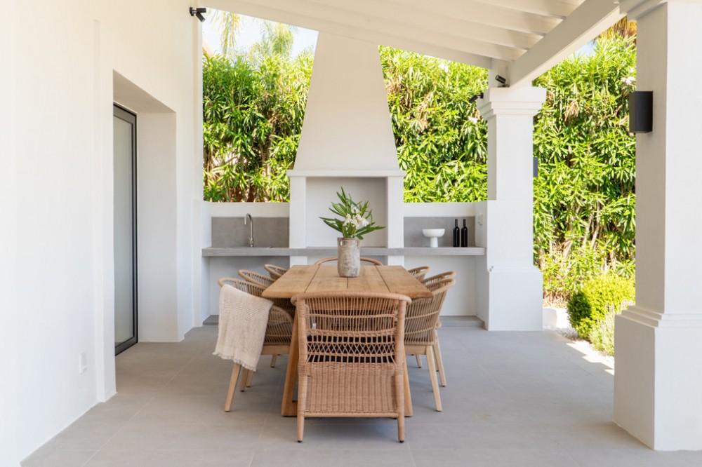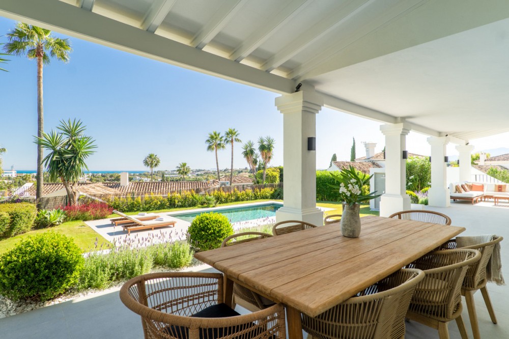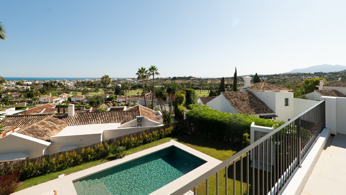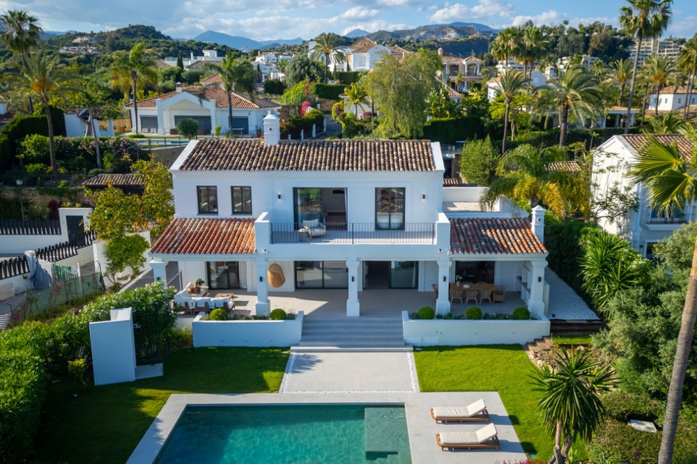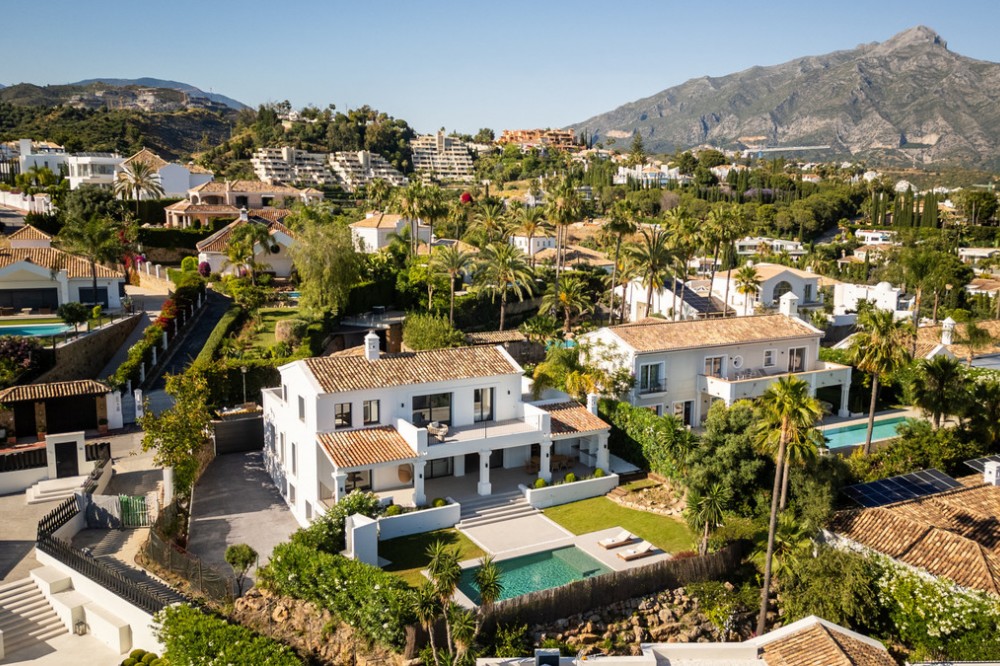 - Welcome to Villa Rosalia — Refined Luxury with Stunning Seaviews in Nueva Andalucía, Marbella Step into the world of refined Mediterranean living at Villa Rosalia, a stunning luxury residence nestled in the prestigious enclave of Nueva Andalucía, Marbella. Designed to combine contemporary comfort with timeless elegance, this fully furnished and tastefully decorated villa is move-in ready, offering an effortless transition into a life of sophistication. Spanning an impressive 508 square meters of built space, Villa Rosalia is thoughtfully distributed across three expansive levels, all situated on a generous 873-square-meter plot. The property features five beautifully appointed bedrooms and five modern bathrooms, making it ideal for both family living and entertaining guests in style. From its elevated position, the villa offers captivating sea views, adding a serene and luxurious backdrop to daily life. The architectural layout emphasizes seamless indoor-outdoor living, with wide terraces that invite you to relax under the sun or dine al fresco while enjoying Marbella’s enviable climate. The villa includes one private parking space in a secure garage and two additional exterior parking spots, ensuring convenience for you and your guests. Premium features such as underfloor heating throughout the home provide year-round comfort, while a private swimming pool adds the perfect touch of resort-style living. Entertainment is taken to another level with a dedicated cinema room, creating an immersive space to enjoy movies and unwind in privacy. Set within a highly regarded urbanization, Villa Rosalia benefits from a secure and tranquil neighborhood, known for its excellent infrastructure and proximity to golf courses, international schools, fine dining, and the vibrant life of Puerto Banús. Whether you're seeking a full-time residence or a luxury holiday escape, Villa Rosalia promises an exceptional lifestyle in one of Marbella’s most sought-after locations.