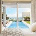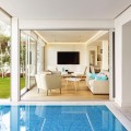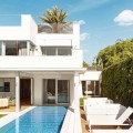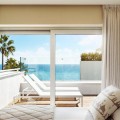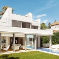 - Contemporary 2nd line beach villa in Puente Romano, Golden Mile-Marbella. Built on 2 levels, this property comprises a good size open plan living/ dining room with integrated modern kitchen, fully equipped with top quality appliances and access to a south-facing terrace, garden, and pool. This level offers 2 bedroom suites, one of which with access to the garden. On the upper level there is the en-suite master bedroom with walk-in wardrobes and access to the terrace with breathtaking sea vies; as well as an additional en-suite double guest bedroom. The property is completed by a self contained en-suite bedroom on the ground level with separate access, ideal for staff or guests. Extra features include: under-floor heating throughout; A/C throughout; marble floors; good size swimming pool; alarm system, security blinds, wooden floors, etc. An incredible opportunity on the market to purchase a beachside villa in Marbella’s most desirable resort.