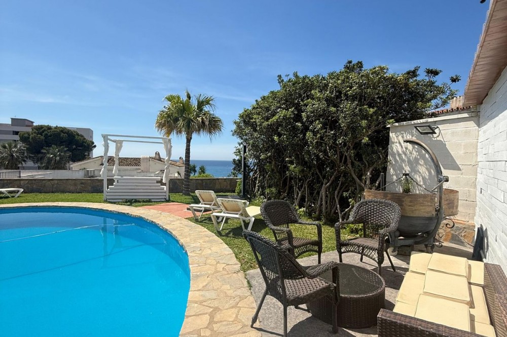 • Discover your new home in Torremuelle, Benalmádena! This charming detached villa offers a built area of ​120sqm on a 701sqm plot, where tranquility and sea views combine to create an idyllic setting. With two spacious bedrooms and a bright living-dining room with a fireplace and large windows, this space is perfect for enjoying unforgettable moments. The rustic-style kitchen and two bathrooms add a touch of comfort to daily life. The exterior is a true oasis, with a well-kept garden and a private pool that invite you to relax under the Costa del Sol sun. It also has terraces ideal for enjoying the sea breeze or sharing with friends and family. The location is unbeatable, in a quiet and exclusive residential area, just 500 meters from the beach and close to schools, supermarkets, various leisure and dining options. This villa is not only a home, but also an investment opportunity. With a technical study completed that allows for the expansion of the home up to 180 m² per level, you'll have the opportunity to customize it to your liking. Four architectural sketches have already been developed, making the process easier. Excellent transport links, with the national highway (N-340) and the Torremuelle train station just 850 meters away, make getting around the area very convenient. Don't miss the opportunity to acquire this magnificent villa in a healthy and peaceful setting, ideal for enjoying the Costa del Sol climate. Contact us for more information and come see it!
