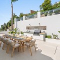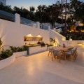 - Located in one of Marbella’s most sought-after residential areas, this five-bedroom, five-bathroom villa offers panoramic, frontal views of the Mediterranean Sea, La Concha mountain, and Puerto Banús. Positioned on a 1,950 m² plot, the property includes 444 m² of interior space and more than 300 m² of terraces, designed to highlight volume, light, and privacy. The architecture emphasizes clean lines and openness. Large windows in main living areas and bedrooms fill the home with natural light while capturing the sea and mountain views from multiple vantage points. Living and dining areas are arranged to establish visual clarity while connecting directly to the outdoor terraces. The kitchen features integrated appliances and minimalist cabinetry, blending functionality with a streamlined aesthetic. The primary suite includes a tailored dressing area, en-suite bathroom, and access to a private terrace with full southern exposure and uninterrupted views. The remaining bedrooms, each with en-suite bathrooms, are distributed to ensure privacy. Multi-level terraces offer shaded lounges, open-air dining, and an infinity-edge pool oriented toward the sea. The overall design maintains clear sightlines, with every space feeling connected to the natural setting. Exterior materials include natural stone and textured finishes that harmonize with the landscape. The terrace is carefully landscaped to preserve both open views and seclusion. Just minutes from international schools, renowned golf clubs, and the marina of Puerto Banús, this residence combines architectural simplicity with frontal views, natural light, and a private setting. Property Highlights •Panoramic frontal views of the Mediterranean Sea, La Concha mountain, and Puerto Banús •1,950 m² plot with 444 m² of interior living space and 300 m² of terraces •Five bedrooms, each with en-suite bathrooms •Large windows throughout providing natural light and visual connection to the surroundings •Open-plan living and dining areas with direct access to outdoor spaces •Infinity-edge pool oriented for unobstructed southern views •Multi-level terraces for outdoor dining, lounging, and entertaining •Natural stone and refined exterior finishes •Located minutes from international schools, golf clubs, and the Puerto Banús marina