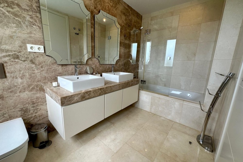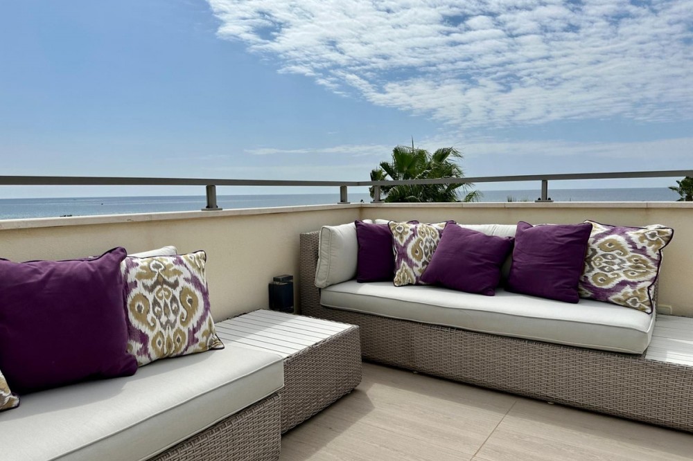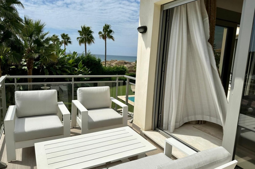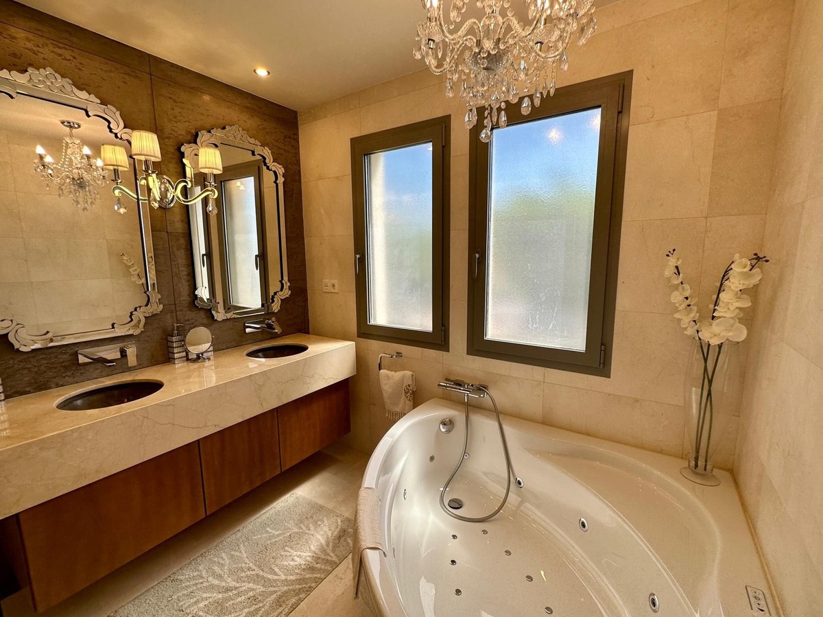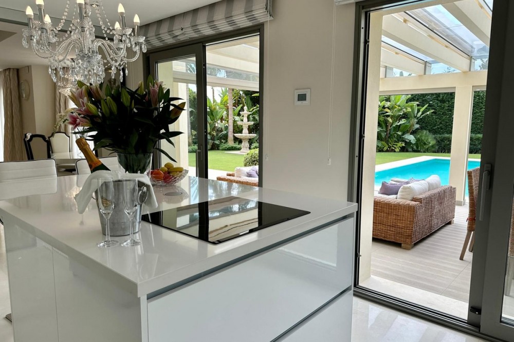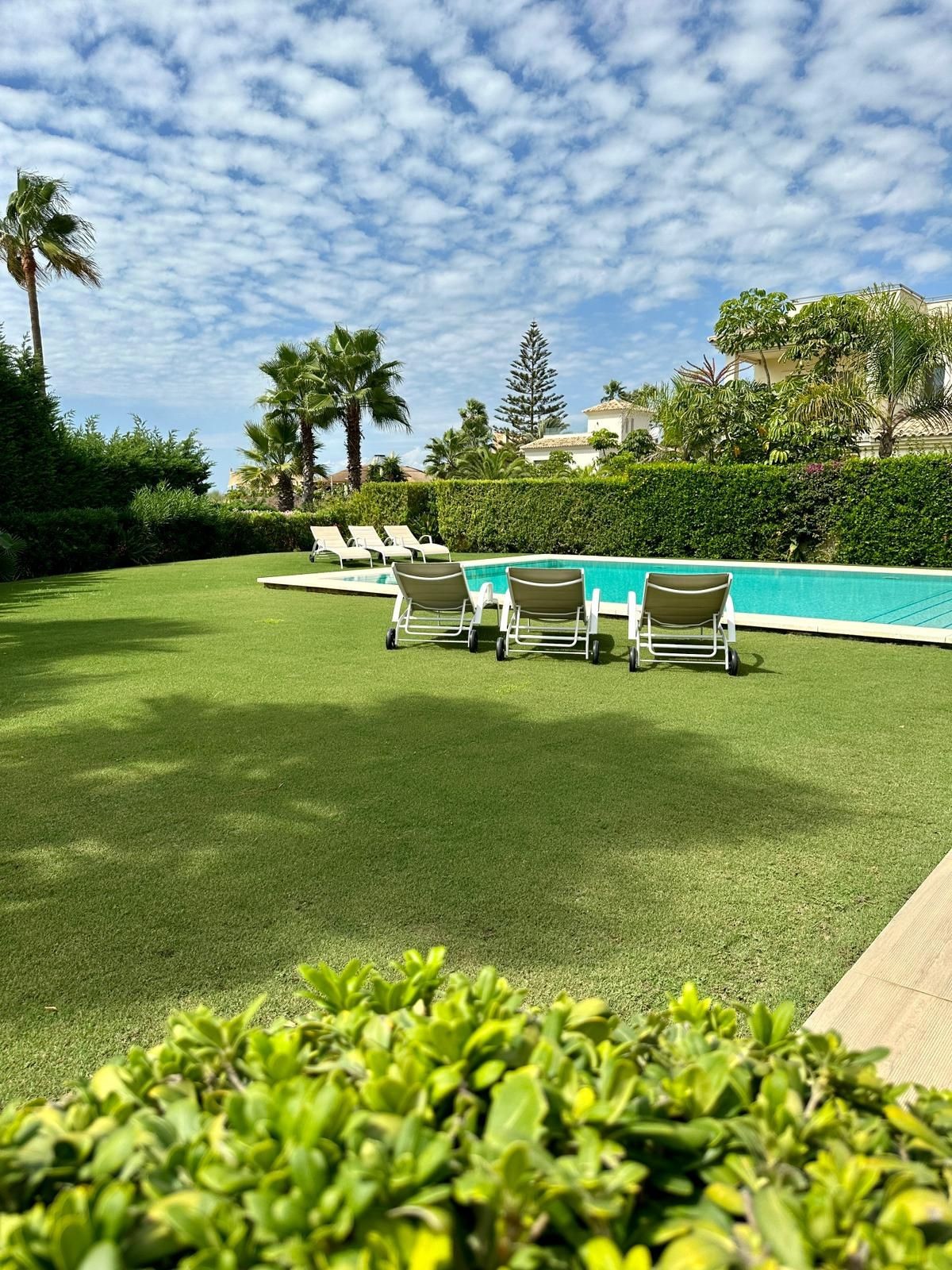 - REDUCED TO 3.950.000 € Discover the epitome of luxury living with this stunning semi-detached villa, perfectly situated by the beach in Marbella. Boasting five spacious bedrooms and 5.5 bathrooms, this home is designed for those who appreciate the finer things in life. The property is set on a double plot, featuring mature private gardens that offer a serene escape from the hustle and bustle. Elegantly decorated to a high standard, the villa is equipped with luxury fixtures and fittings throughout. Spanning four floors and accessible via a lift, every corner of this home exudes sophistication. The glass conservatory off the kitchen invites natural light to flood in, creating a warm and inviting atmosphere. The master bedroom is a true sanctuary, complete with terraces and an en-suite bathroom. For those who love to entertain, the large roof terrace provides the perfect setting for gatherings under the stars. Practical features include garage parking for three cars, driveway parking for five more, solar panels, a backup generator, and a state-of-the-art security system with seven cameras. All licences have been granted by Marbella Town Hall, ensuring peace of mind. Experience unparalleled luxury in this exquisite villa—your dream home awaits!