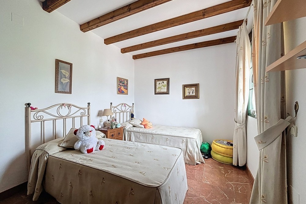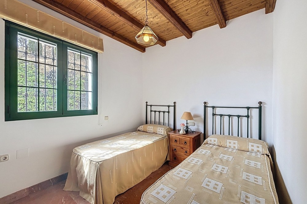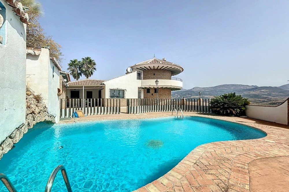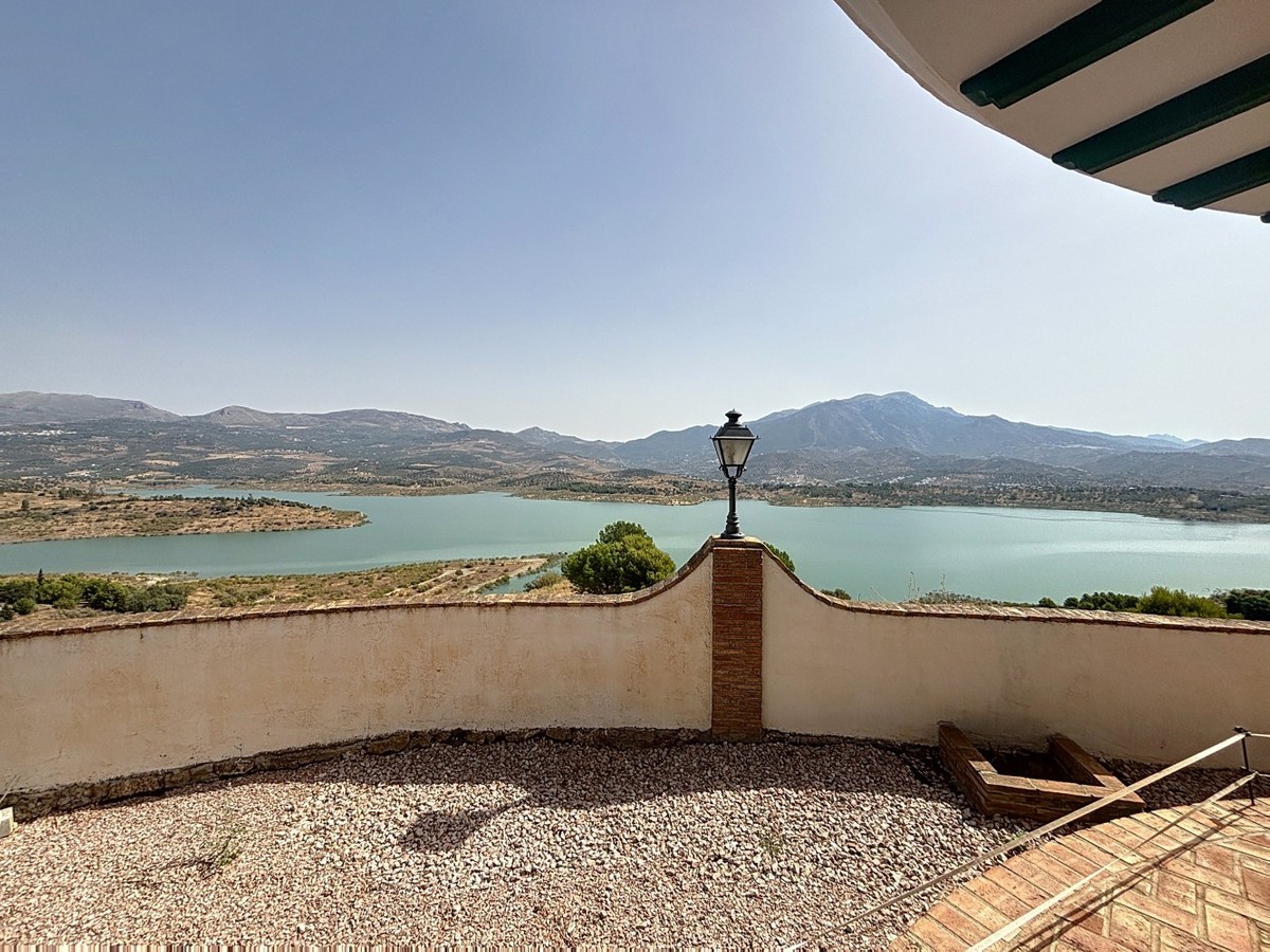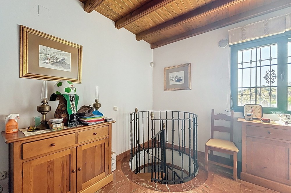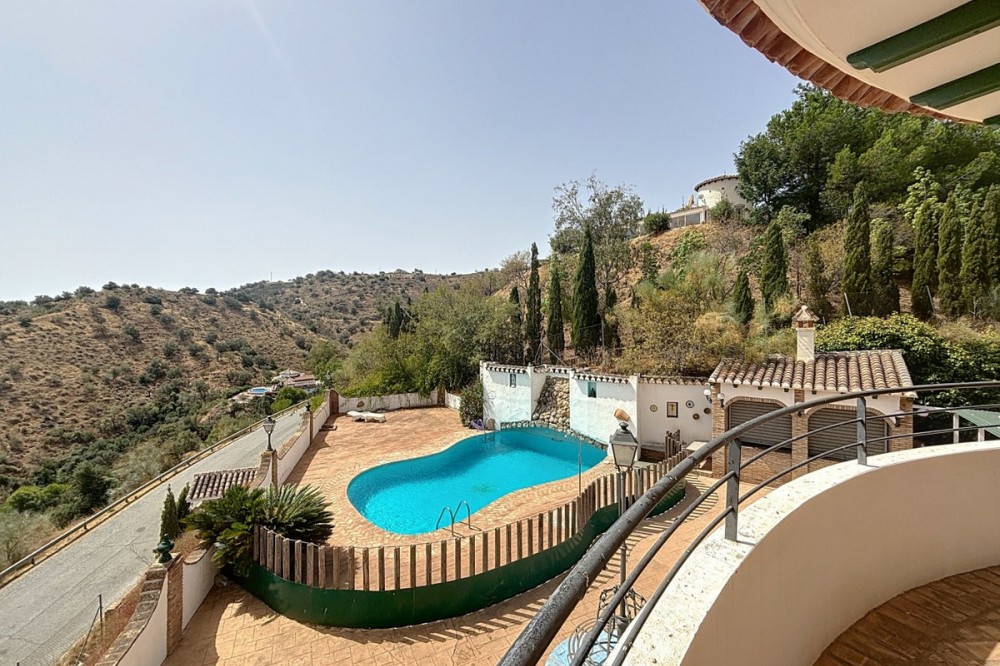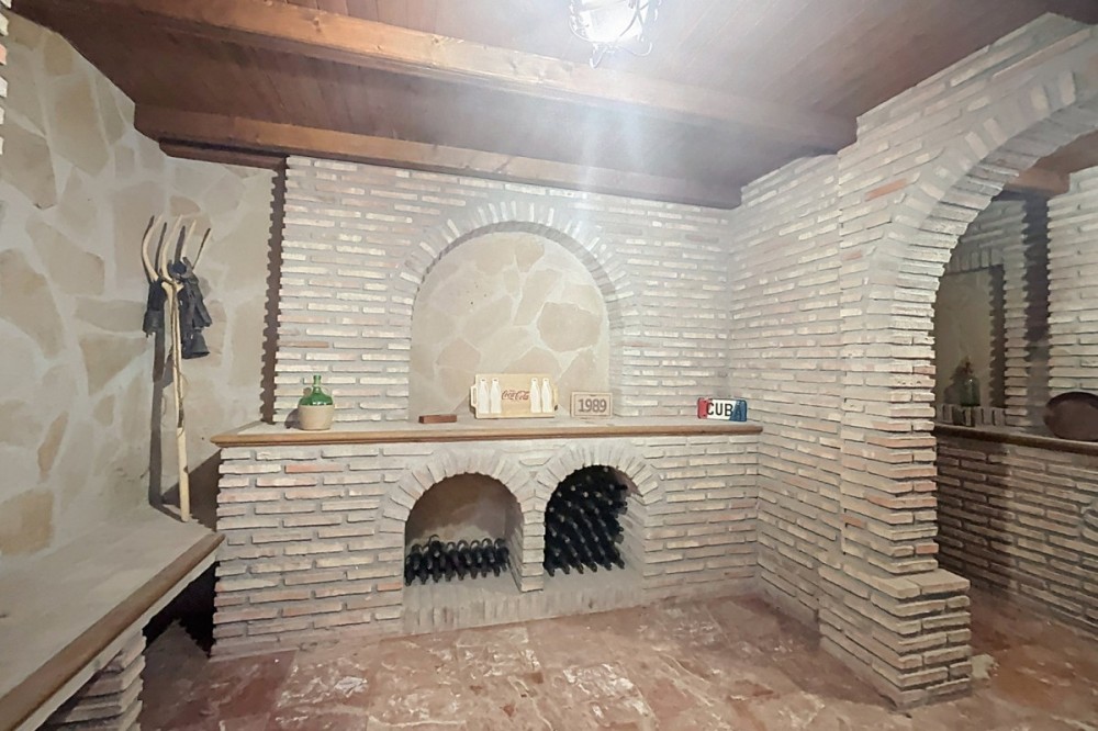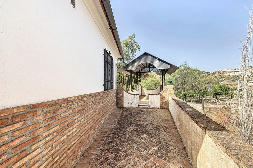 - This charming villa in Los Romanes, Málaga, perfectly combines traditional Spanish architecture with modern comfort. The main house features 4 bedrooms, including a spacious master suite, 3 full bathrooms, a guest toilet, a laundry room, and a wine cellar in the basementideal for wine lovers. The living areas are characterized by wooden beam ceilings that add warmth and character. The main living room stands out with its striking sun-patterned wooden ceiling and a large wrought-iron chandelier. A fireplace and comfortable furnishings create a cozy atmosphere. Large windows and French doors flood the space with natural light and offer beautiful views of Lake Viñuela and the surrounding nature. The property also includes a separate guest apartment with 2 bedrooms, a bathroom, and a cozy open-plan living-dining area with a kitchenideal for visitors or additional accommodation. Outside, the villa boasts a large plot with a private pool, an outdoor kitchen with barbecue, a covered terrace, a pavilion, two garages, and two storage rooms with the potential to be converted into another apartment. Additionally, the property has its own well and a water cistern in one of the garages, ensuring a reliable water supply year-round. We are pleased to be able to present this dream property to you soon, either personally or via virtual viewing. Because this world is unique - just like our Axarquía. In Andalusia. On the Costa del Sol. Here, on the sunny side of life...