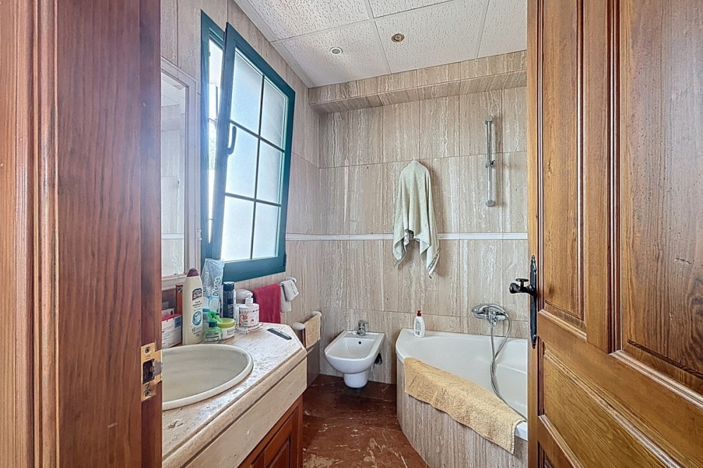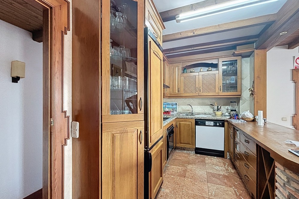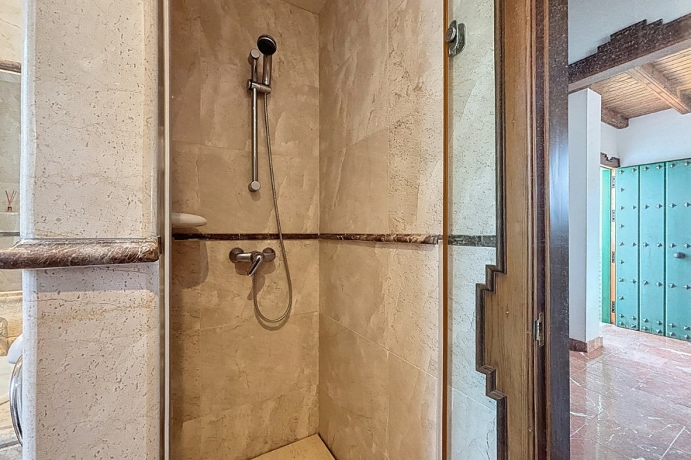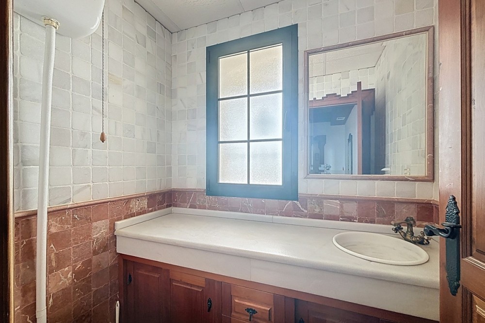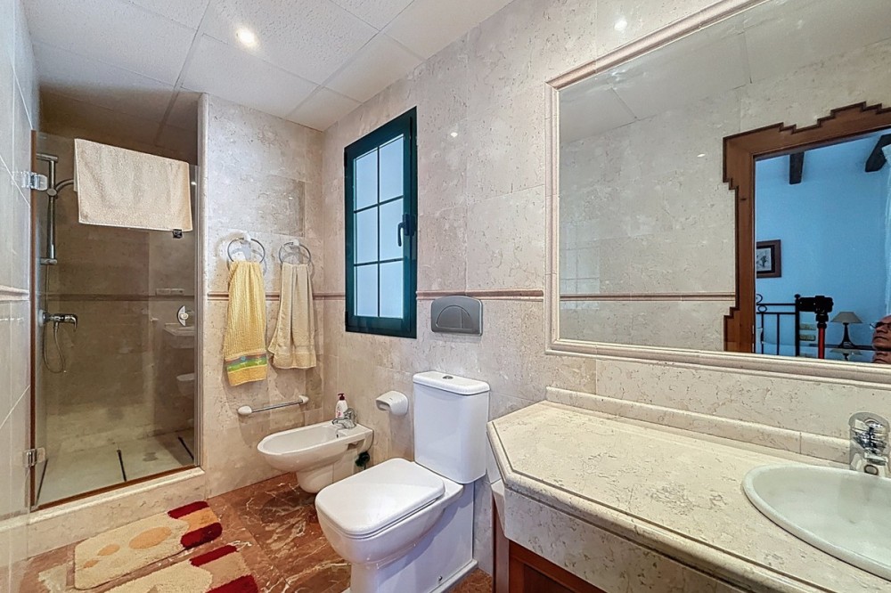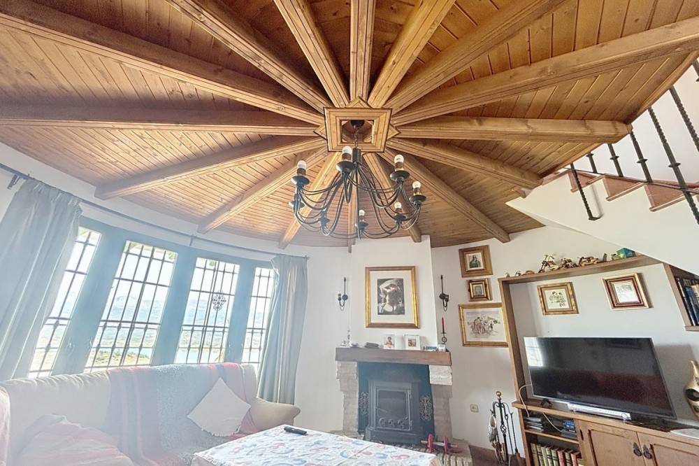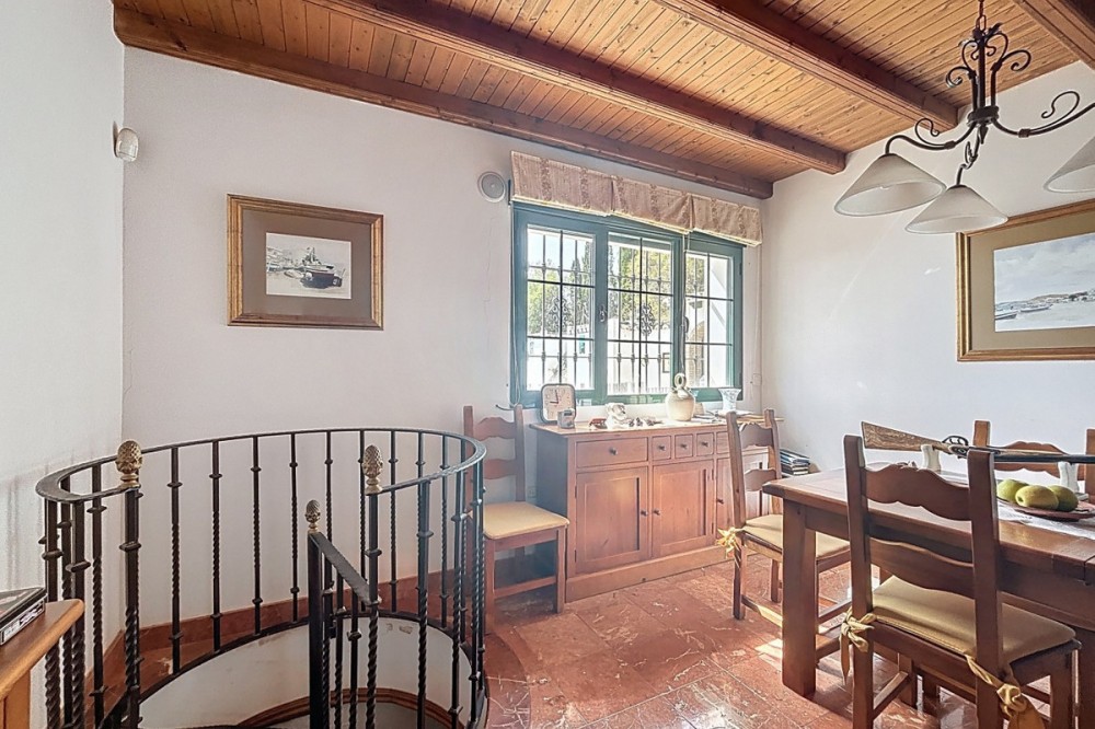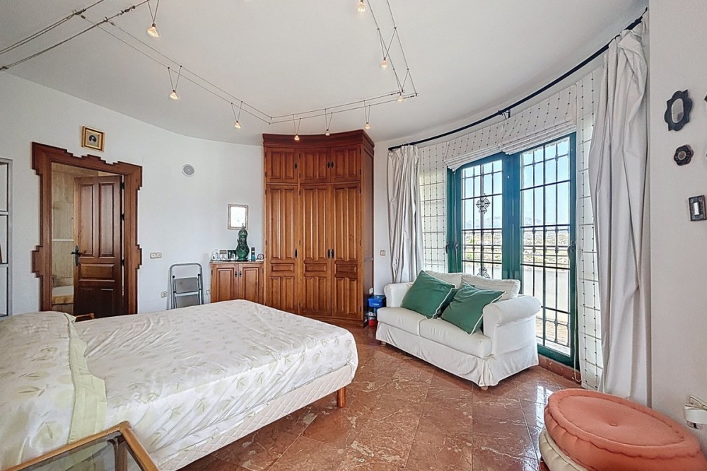 - This charming villa in Los Romanes, Málaga, perfectly combines traditional Spanish architecture with modern comfort. The main house features 4 bedrooms, including a spacious master suite, 3 full bathrooms, a guest toilet, a laundry room, and a wine cellar in the basementideal for wine lovers. The living areas are characterized by wooden beam ceilings that add warmth and character. The main living room stands out with its striking sun-patterned wooden ceiling and a large wrought-iron chandelier. A fireplace and comfortable furnishings create a cozy atmosphere. Large windows and French doors flood the space with natural light and offer beautiful views of Lake Viñuela and the surrounding nature. The property also includes a separate guest apartment with 2 bedrooms, a bathroom, and a cozy open-plan living-dining area with a kitchenideal for visitors or additional accommodation. Outside, the villa boasts a large plot with a private pool, an outdoor kitchen with barbecue, a covered terrace, a pavilion, two garages, and two storage rooms with the potential to be converted into another apartment. Additionally, the property has its own well and a water cistern in one of the garages, ensuring a reliable water supply year-round. We are pleased to be able to present this dream property to you soon, either personally or via virtual viewing. Because this world is unique - just like our Axarquía. In Andalusia. On the Costa del Sol. Here, on the sunny side of life...
