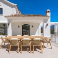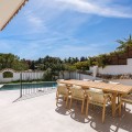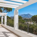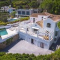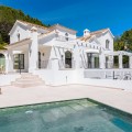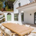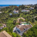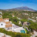 - This elegantly renovated luxury villa offers a refined lifestyle within an exclusive, secure gated complex. Enjoying a desirable south to south- east orientation, the property boasts breathtaking sea views and abundant natural light throughout the day. The villa features five spacious bedrooms and five well-appointed bathrooms, providing ample space and comfort for both family and guests. The fully fitted eat-in kitchen combines functionality with style, ideal for casual dining, while a separate formal dining room offers an inviting setting for entertaining. The main living room provides a comfortable and stylish space to relax, complemented by a versatile entertainment room that can be adapted to suit a range of leisure activities. The home is equipped with underfloor heating throughout, as well as hot and cold air conditioning, ensuring year-round comfort. Outside, the private garden and swimming pool create a tranquil retreat, perfect for both quiet moments and social gatherings. Additional features include a generous driveway with access to a two-car garage, offering convenience and security. Situated in a gated urbanisation, the property guarantees peace of mind and a high level of privacy. The villa is sold fully furnished, allowing for a seamless transition and immediate enjoyment. Viewings are highly recommended to truly appreciate the quality, comfort, and stunning setting of this exceptional home. El Madroñal is only 2 minutes drive to Monte Halcones Commercial centre with its cafes, supermarket and shops, and a further 5 minutes to San Pedro Town and the beach.