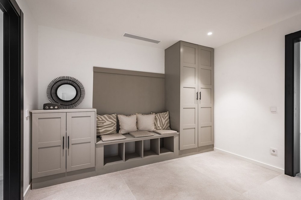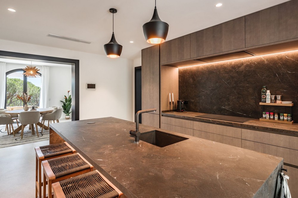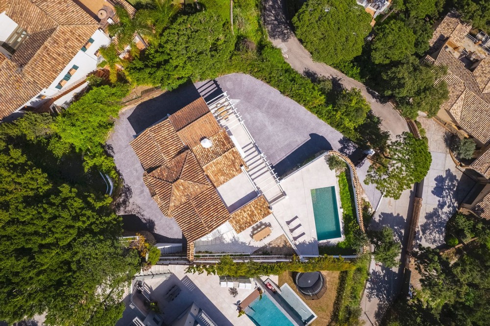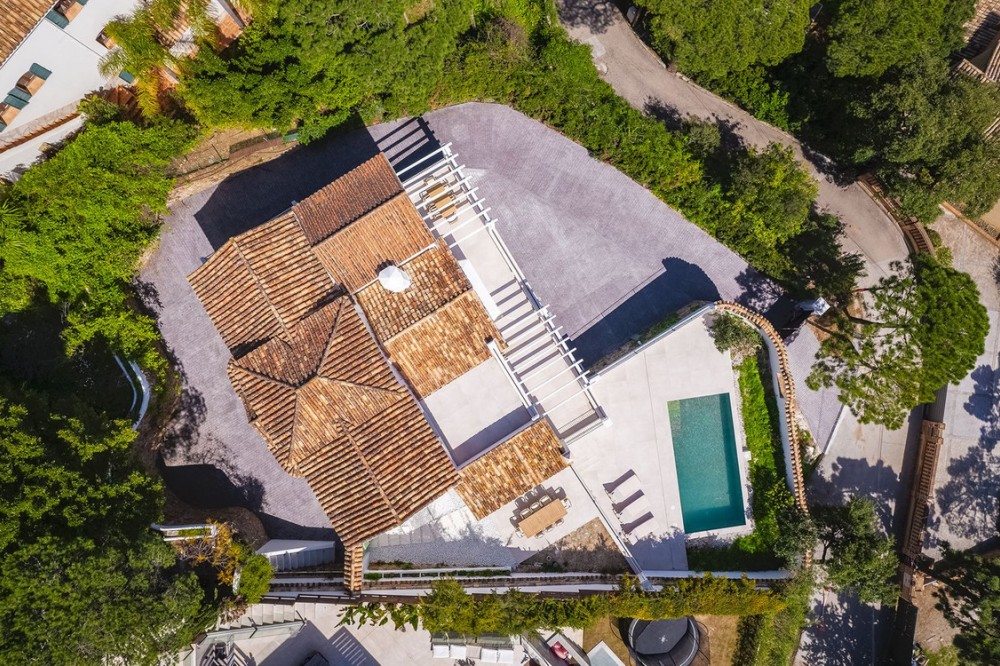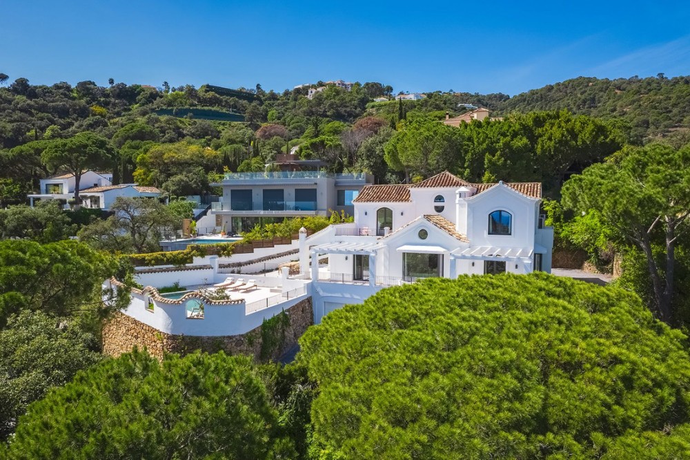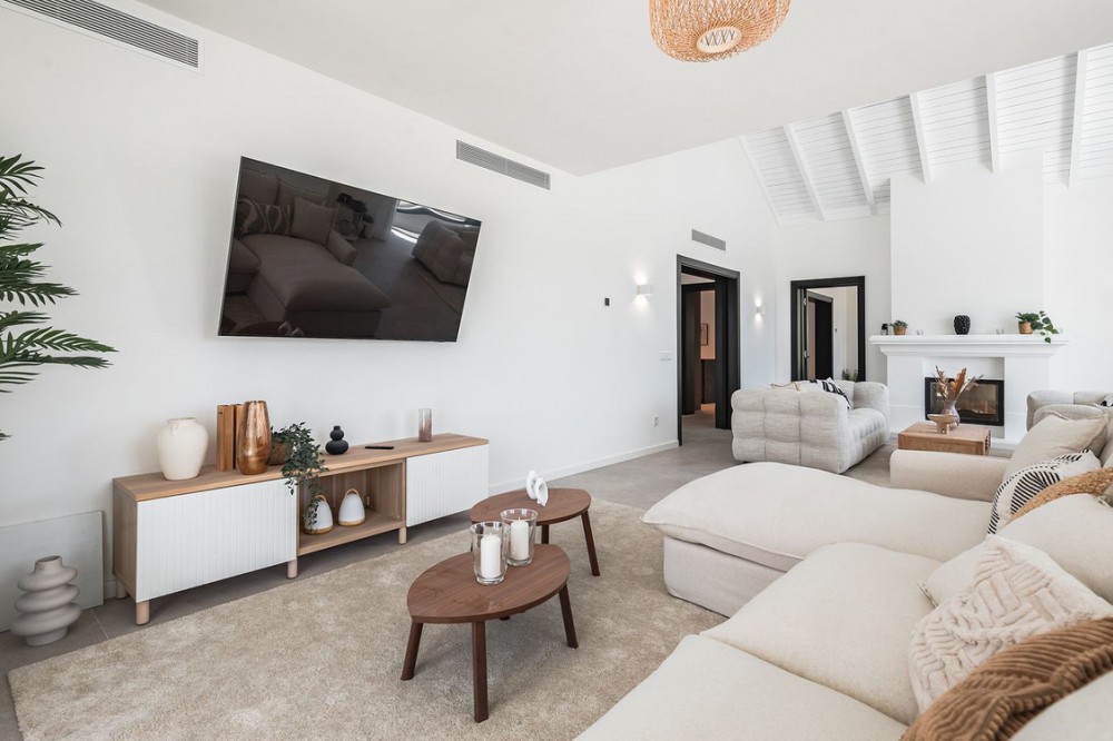 - This elegantly renovated luxury villa offers a refined lifestyle within an exclusive, secure gated complex. Enjoying a desirable south to south- east orientation, the property boasts breathtaking sea views and abundant natural light throughout the day. The villa features five spacious bedrooms and five well-appointed bathrooms, providing ample space and comfort for both family and guests. The fully fitted eat-in kitchen combines functionality with style, ideal for casual dining, while a separate formal dining room offers an inviting setting for entertaining. The main living room provides a comfortable and stylish space to relax, complemented by a versatile entertainment room that can be adapted to suit a range of leisure activities. The home is equipped with underfloor heating throughout, as well as hot and cold air conditioning, ensuring year-round comfort. Outside, the private garden and swimming pool create a tranquil retreat, perfect for both quiet moments and social gatherings. Additional features include a generous driveway with access to a two-car garage, offering convenience and security. Situated in a gated urbanisation, the property guarantees peace of mind and a high level of privacy. The villa is sold fully furnished, allowing for a seamless transition and immediate enjoyment. Viewings are highly recommended to truly appreciate the quality, comfort, and stunning setting of this exceptional home. El Madroñal is only 2 minutes drive to Monte Halcones Commercial centre with its cafes, supermarket and shops, and a further 5 minutes to San Pedro Town and the beach.