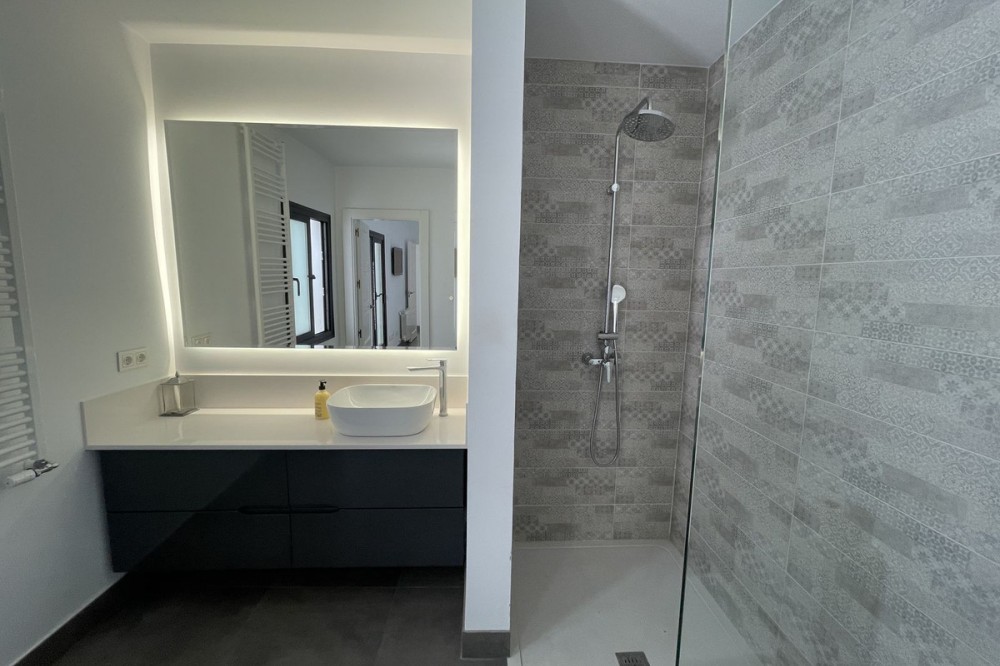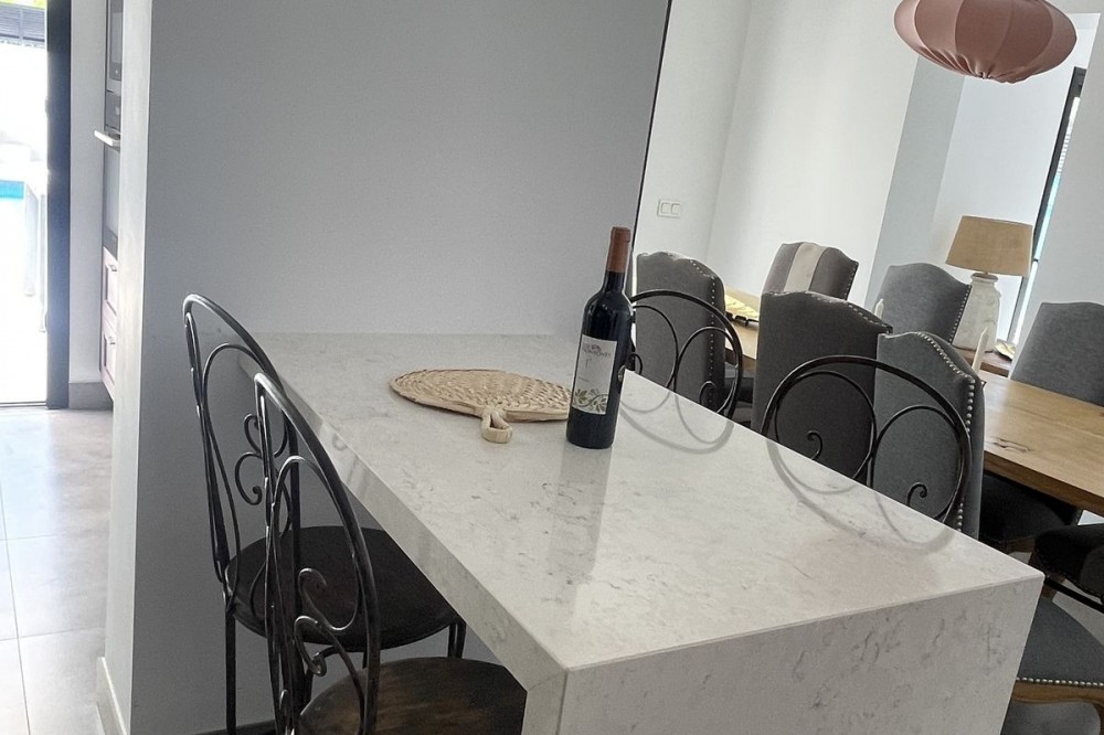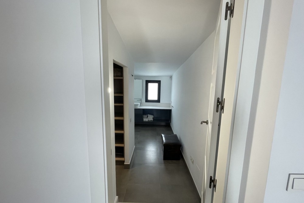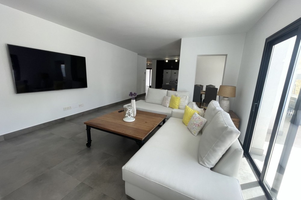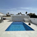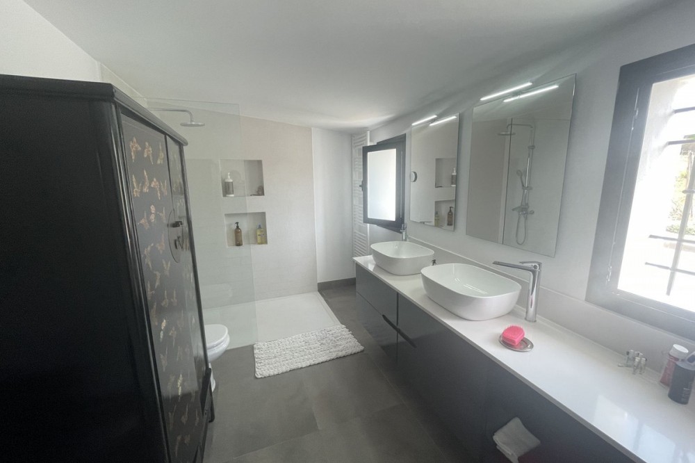 - Discover this spectacular modern design villa for sale! Located on a 420 m² plot and with 195 m² of usable area, this property offers an exclusive and sophisticated lifestyle. Upon entering, you'll be greeted by an elegant hall that leads to an open-plan kitchen, perfect for enjoying time with family or friends. The dining area and living room are designed to maximize natural light, thanks to its south-facing orientation. The villa has three bedrooms, each with an en-suite bathroom, arranged around a charming interior patio that provides a touch of serenity and privacy. It also has a laundry area and built-in wardrobes that add functionality to the space. The exterior is simply stunning: a large pool with a shower and sun loungers invites you to relax in the sun. You'll also find a separate covered parking area for two cars, ensuring comfort and security for your vehicle. Located near the prestigious San José School and just 700 meters from San Pedro Beach, this villa, built in 2015, is your perfect opportunity to live in a privileged setting with all the amenities you've always dreamed of. Come and see it and fall in love!